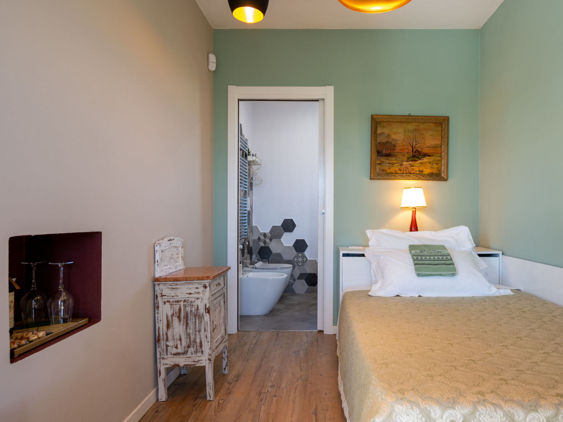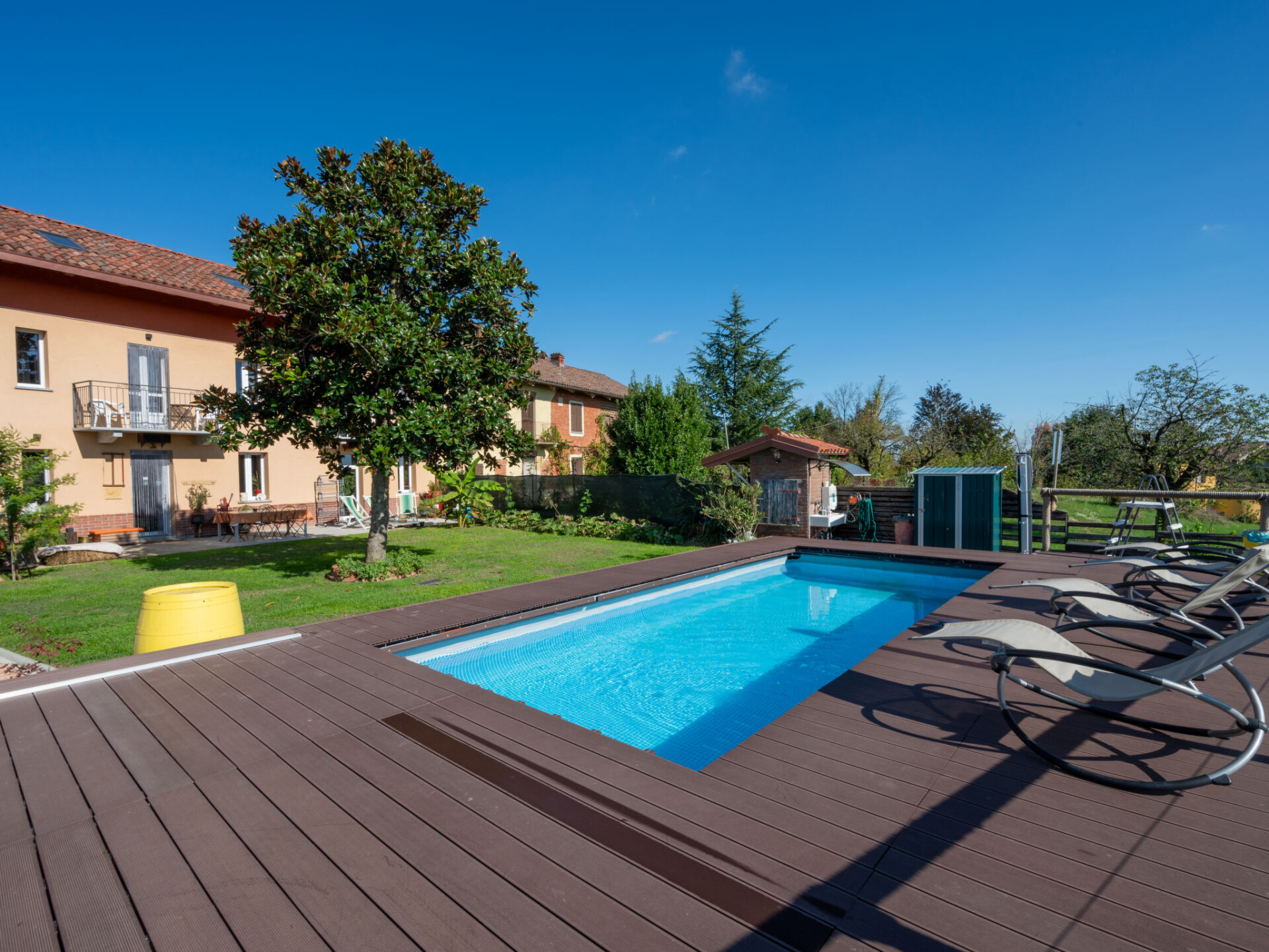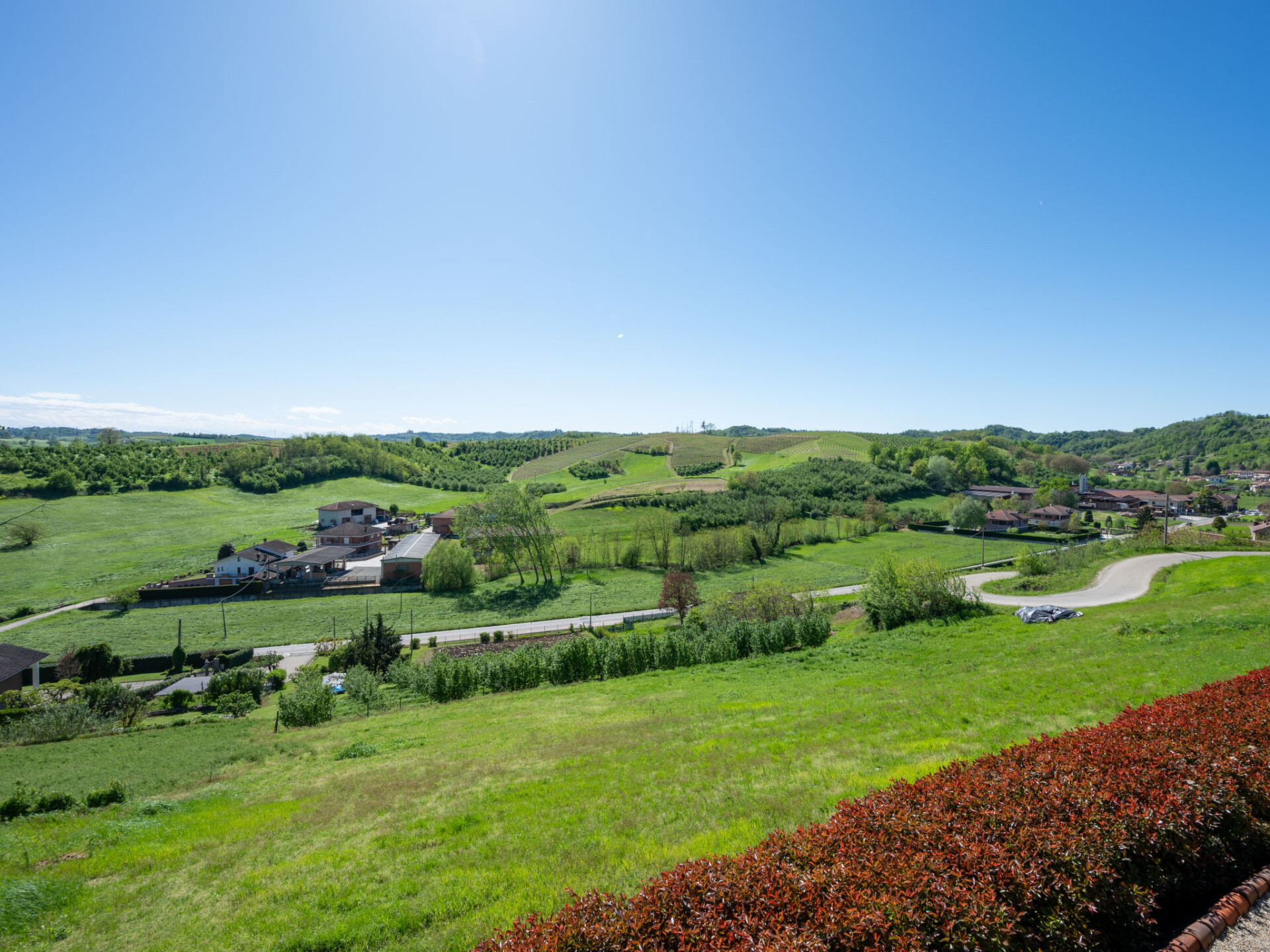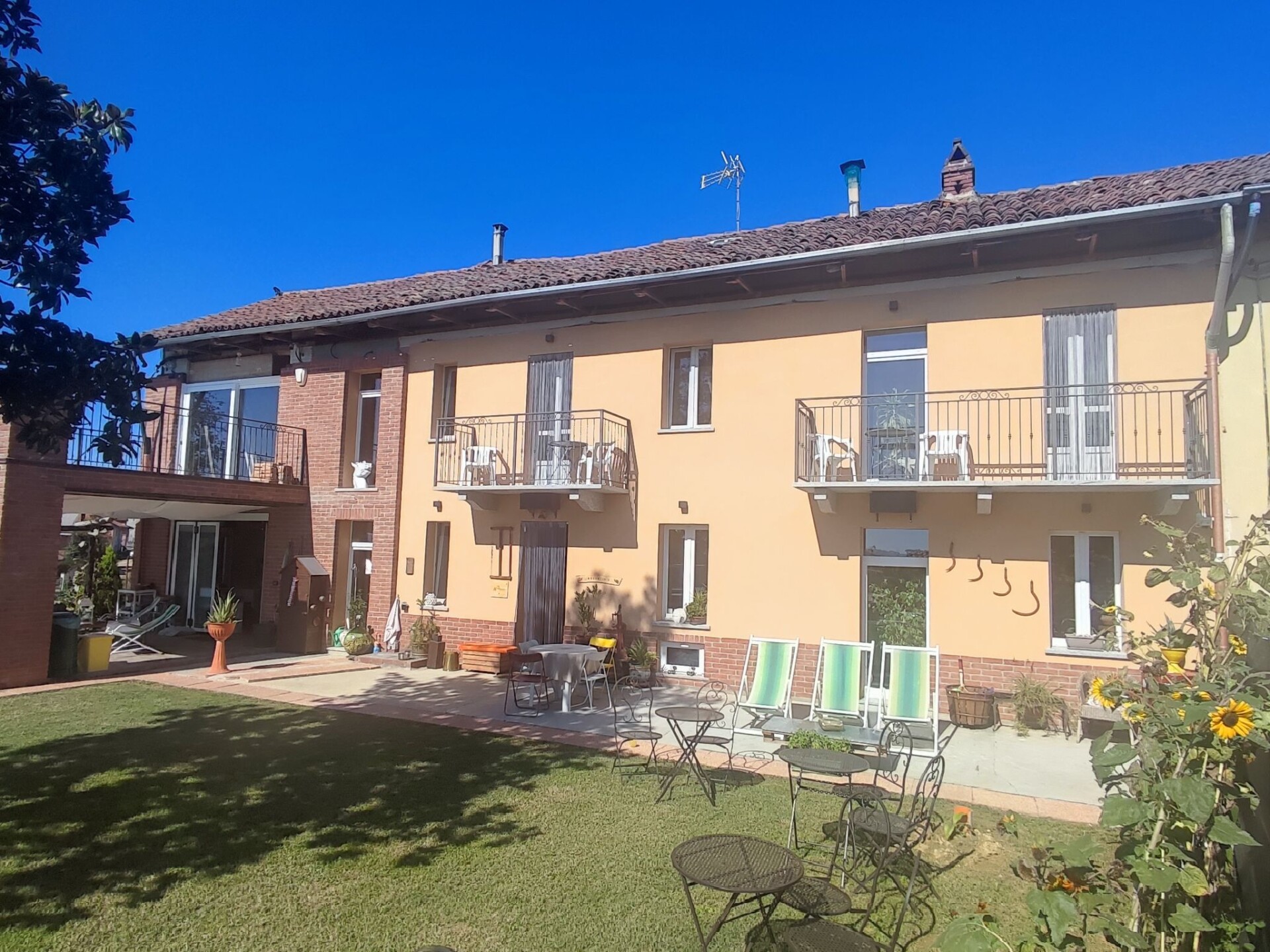 Moderne, mooi cottage "Helix1912", eenzijdig aangebouwd, omgeven door weiden, velden en wijngaarden. Buiten de plaats, 3 km van het centrum van San Damiano d'Asti, zonnige ligging op een heuvel. Voor medegebruik: terrein 1.500 m2 (omheind), verzorgde tuin met bloemen en bomen. Voor alleengebruik: openluchtzwembad (7 x 3 m, 130 cm diepte, seizoensgebonden beschikbaarheid: 01.Mei. - 01.Okt.). Buitendouche, terras, onderhoud zwembad door de eigenaar/tuinman. Toegangsweg tot aan het huis. Parkeerplaats (voor 3 auto's) bij het huis. Supermarkt 3 km, restaurant 3 km, bushalte 1.5 km, treinstation "Asti" 15 km. Attracties in de buurt: Asti 15 km, Turin 60 km, Alba 35 km. Auto noodzakelijk. Eigenaar woont in apart huisgedeelte. De eigenaar heeft een hond.