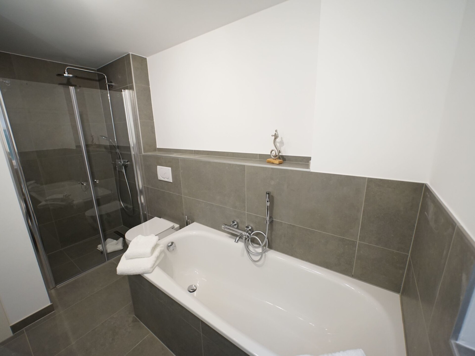 Discover the perfect place to stay for your next holiday in Wenningstedt, perfect for up to 5 people who want to experience the charm of the North Frisian Islands up close. Here, just a stone's throw from the Wenningstedt beach, you will not only be close to the sea, but also find a cosy holiday flat equipped with everything a holidaymaker's heart desires. The sunny south-facing terrace invites you to spend relaxing hours outdoors.Inside the flat, two bathrooms with shower and WC as well as an additional bathtub ensure comfort and convenience. A pod coffee machine, kettle, dishwasher and ceramic hob form the basis for home-cooked meals. The equipment is complemented by a microwave with grill function. Communal facilities such as a washing machine and tumble dryer are available in the building and offer additional comfort for your stay.The outdoor area impresses with a south-facing terrace that invites you to linger. Garden furniture is available for your relaxing moments in the open air. Bicycle storage facilities allow you to explore the surrounding area on two wheels, and the car park provides easy parking.The location of the holiday flat is ideal for anyone who wants to enjoy island life to the full. It is only 300 metres to the lively centre of Wenningstedt, and there is a grocery store just 40 metres away for quick shopping. The proximity to the beach means you can take a dip in the sea or enjoy relaxing walks by the water at any time.This holiday flat in Wenningstedt is the perfect choice for beach lovers and those who want to spend an uncomplicated, relaxing holiday on the North Frisian Islands. Here you can unwind, enjoy the comforts of a well-equipped home and completely unwind in the idyllic surroundings.