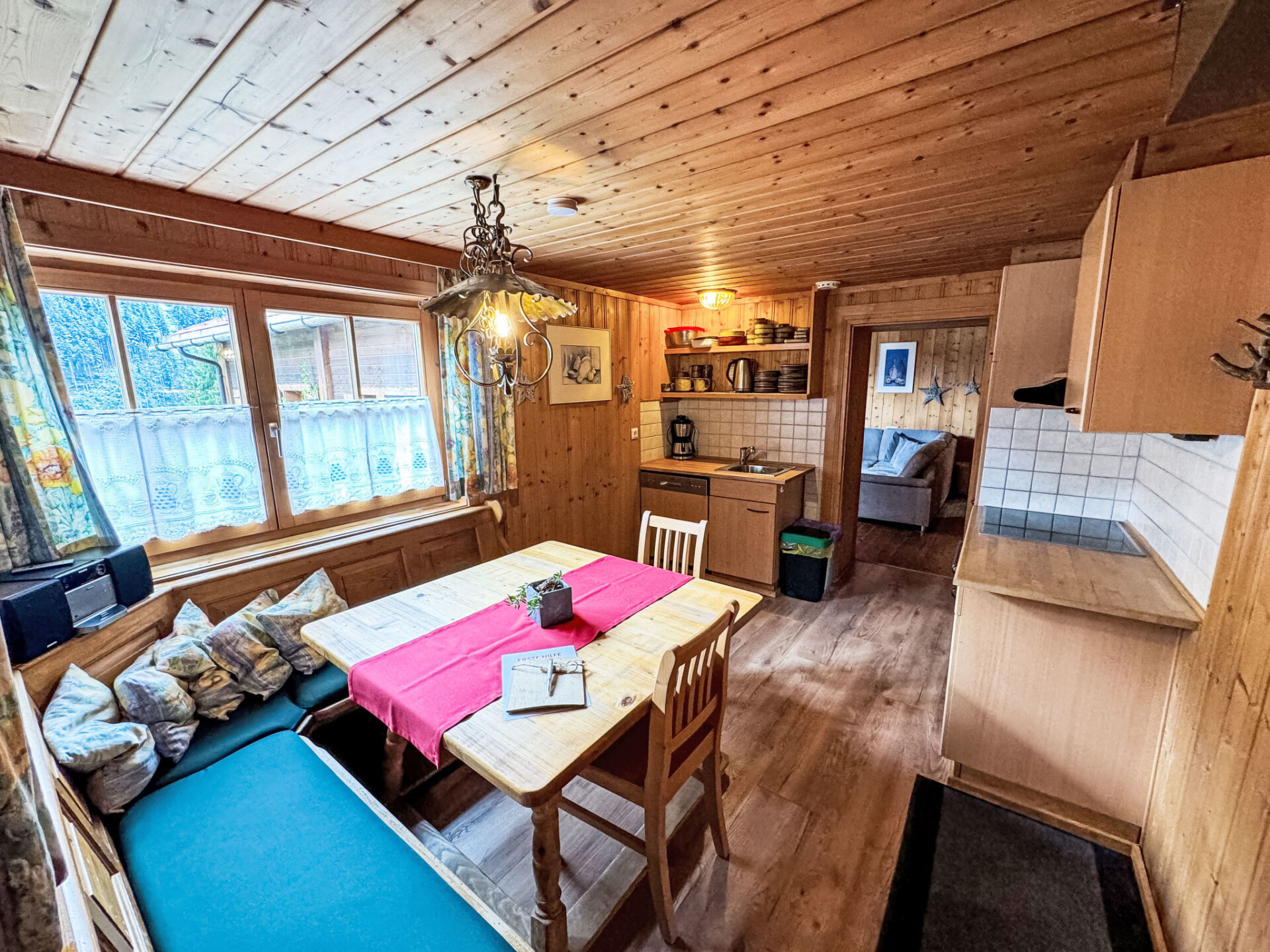 Appartement 3-kamers 85 m2 op de 1e verdieping. Comfortabel en gezellig ingericht: 2 2-pers. kamers met dakraam, elke kamer heeft wastafel. Woonkamer met Sat-TV en radio. 1 open kamer met Kleedkamer met 1 2-pers bed, aparte WC en douche. Keuken (oven, afwasmachine, 4 keramische glas kookplaten, magnetron) met eettafel. Douche/WC. Ter beschikking: Internet (WiFi, gratis). Maximaal 1 huisdier/hond toegestaan. Rookmelders.