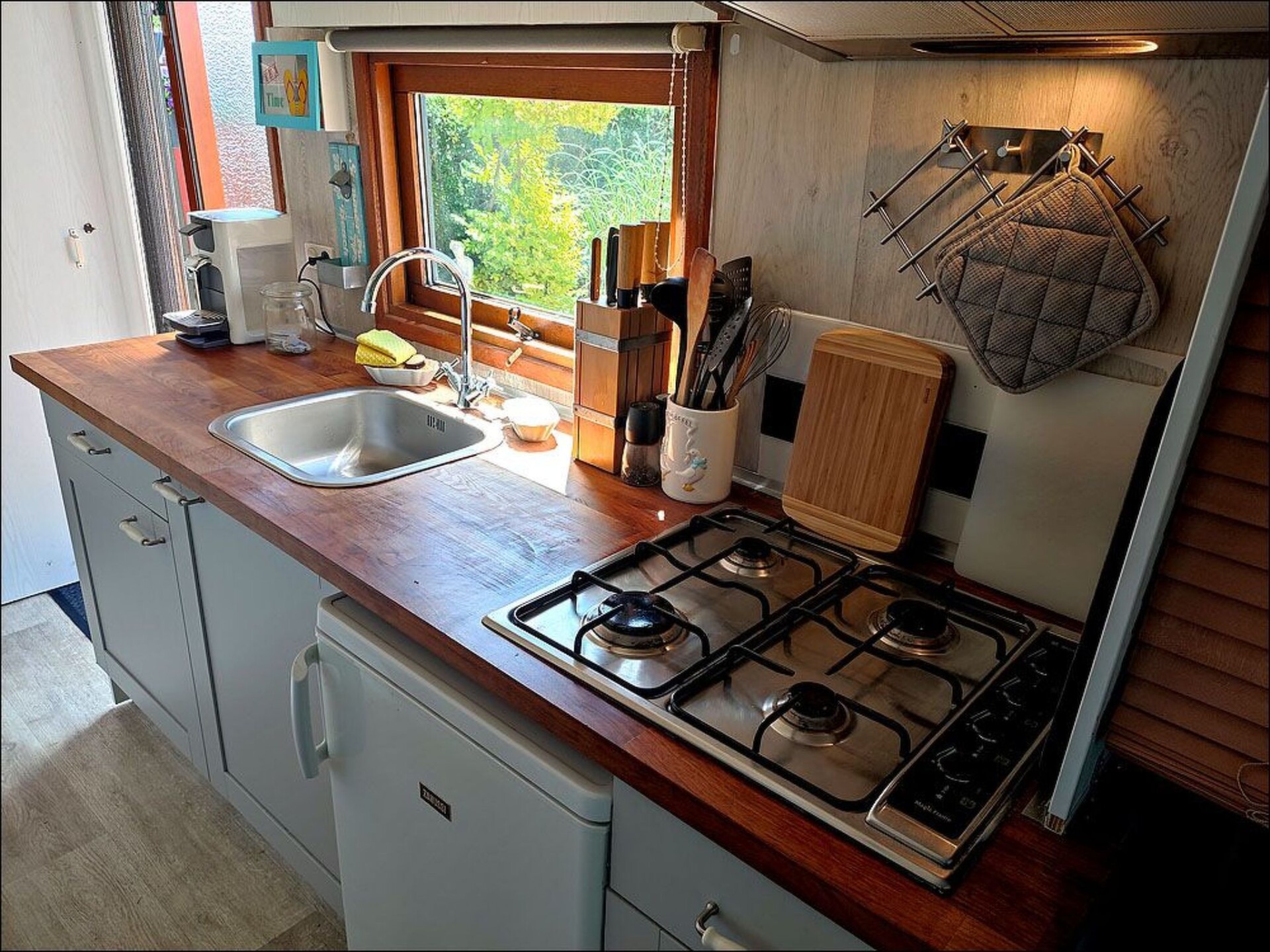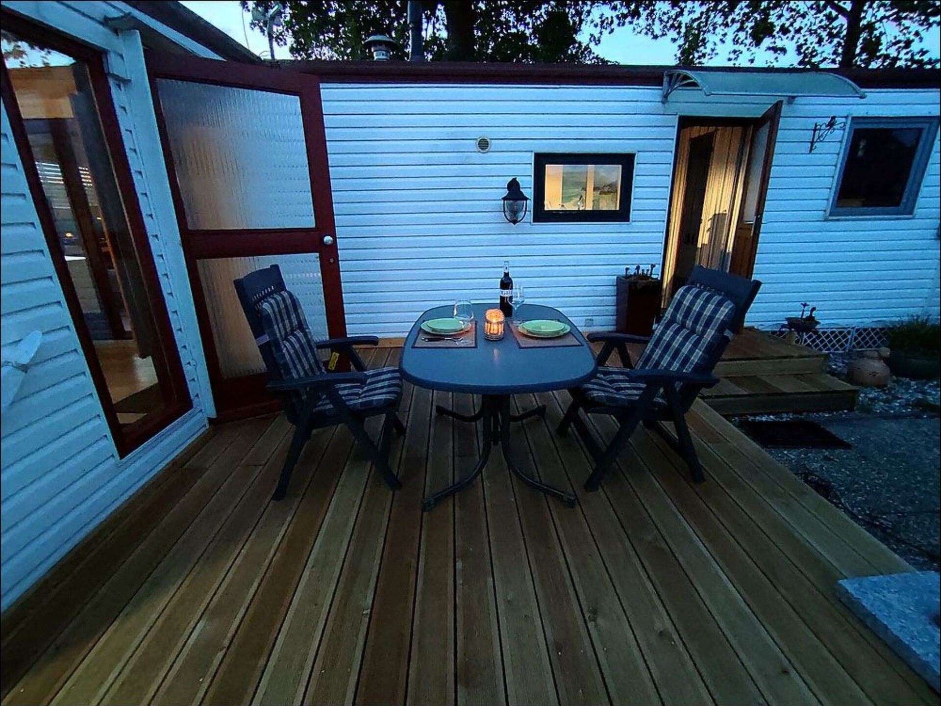 The small, only this year (2022) renovated mobile home het kleine Hemeltje on a small holiday island surrounded by water (lake for swimming, boating, relaxing on the lawn) where the family and the dog feel comfortable. The Ijsselmeer with its pebble and fine sandy beaches is approx. 500m away. Swimming, surfing, kite surfing, fishing, cycling, shopping, good restaurants make your holiday a pleasure. Attractions. Beach bar on a fine sandy beach about 5 km away. Large antique and flea market within walking distance on Sundays in summer. Sights, museums, for young and old in the immediate vicinity. Beautiful old Dutch towns with charming architecture just a few minutes away by car, e.g. Medemblik - 5 km - Hoorn 20 km - Enkuizen - 25 km - or even Amsterdam 60 km. For children there is a large private playground with kiosk within walking distance of our small children's playground on the complex, free admission for Vislust guests. Terrace and many highlights such as trampolines, large slides, wooden railway, swings and much more, which can be used free of charge by our younger guests. Three kilometres away is an indoor swimming pool with water slide - Indore playground in Medemblik - for children up to 16 years approx. 5 km away. The nearest harbour is in Medemblik - with its historic railway station and dyke with jetty for boat trips. In Enkuizen there is another large Indore swimming pool directly adjacent to a fine sandy beach by the sea. Spokjesland, also in Enkuizen, for children up to the age of 12, is a popular attraction for young families or grandparents with grandchildren. Golf course in the immediate vicinity Our manager will be happy to help you plan day trips, e.g. to the island of Texel or the North Sea.The small mobile home het kleine Hemeltje, which was only renovated this year (2022), offers everything you need for a relaxing holiday.The living room The centrepiece of the living room is the cosy leather sofa with a large TV (including Amazon Prime), suitable for quiet TV evenings. A new stereo system with Bluetooth and USB is available. The house has its own W-LAN. A cosy table is available for communal meals. The bedroom Special attention is paid to the newness of our mattresses. These are of medium firmness. USB ports for charging mobile phones and a socket are integrated in the bedside tables. The double bed has a total area of 1.80m x 2.00m, with two single mattresses 0.90m x 2.00m.In the living room, one person or a child can sleep comfortably on the 1.00m x 2.00m sofa after removing the cushions. The sofa can be pulled out, but is then only suitable for children. There is a pull-out recamiere as an additional sleeping area in the extension. The kitchen The open country house kitchen is fully equipped with a fridge, freezer, 4-ring gas hob, hot air fryer, Senseo coffee machine, toaster, kettle, popcorn machine, hand mixer, blender, knives in mint condition, high-quality cutlery and beautiful crockery.Our idea: basic items such as salt, sugar, flour and rice are available in old glass preserving jars and can be refilled when they run out. That way, less is thrown away. The bathroom The stylish, renovated bathroom impresses with a spacious wellness shower and washbasin. The small extension A modern desk is set up in the annex, which you can use with your laptop. Monitor with HDMI (and other connection options), sound system. Do you want to finish your book, pretend to be in a team meeting in your home office or just check your e-mails? Get started. (Cables for HDMI, VGA, DVI, LAN are available)There is also a small wardrobe and a cupboard with tools in case something gets stuck. The existing recamiere can be pulled out into a full-size bed. Garden / Terrace A sunny and beautifully landscaped terrace, stone barbecue, various seating options, small sunbathing lawn, deckchairs and a parasol. Lazing in the new beach chair? The lake, the Groote Vliet, with a bathing jetty for cooling off is just a few steps away. Access for guests Laundry roomThere is a communal laundry room with washing machines and dryers in the front building at the entrance barrier (washing tokens can be purchased from the site management). BoatingYou can hire a boat for short trips from the management.For example, you can sail right into the centre of Medemblik or in the other direction to the Boxwei nature reserve. All waterways are signposted. The boats are licence-free in the size and speed offered. PlaygroundThere is a small, fenced-in playground near the front car park. BathingCommunal bathing area with a small sunbathing lawn less than 50 metres away.The Ijsselmeer with various bathing beaches, a beach club, as well as shopping and leisure facilities (boats and bicycle hire) are also within walking distance. Whether for kite surfing, swimming, fishing, sailing, cycling, hiking or just to lie in the sun - golf & mini golf, everything is possible here. The island of Texel can be reached by car and ferry in just over an hour, as can the marvellous North Sea beaches on the other side of the coast. Nearest airports- Amsterdam-Schiphol - 68km- Rotterdam - 121km Nearest railway stations- Hoogkarspel - 9km- Bovenkarspel Grootebroek - 13km- Bovenkarspel Flora - 12km- Hoorn Kersenboogerd - 16km- Enkhuizen - 16km- Hoorn - 19km- Obdam - 24km