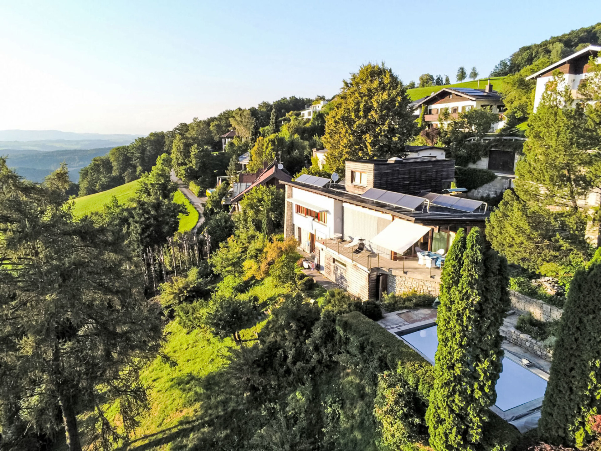 Koppl 5 km van Salzburg: Moderne, comfortabele eengezinswoning "Heuberg", van 2 verdiepingen. Buiten de plaats, rustige, verhoogde ligging tegen een helling. Voor alleengebruik: terrein, tuin, openluchtzwembad (7 x 3 m, 170 cm diepte, seizoensgebonden beschikbaarheid: 15.Mei. - 15.Sep.). Buitendouche, barbecue. In het huis: centrale verwarming. Steile toegangsweg. Parkeerplaats (voor 3 auto's) bij het huis, eigen garage, openbare parkeerplaatsen in de straat. Levensmiddelenwinkel 2 km, supermarkt 2 km, restaurant 1 km, bakkerij 2 km, bushalte 1.5 km. Golfterrein (9 holes) 12 km, skilift 20 km, skipisten 20 km. Attracties in de buurt: Stadt Salzburg 13 km. Wandelgebied Ebenau Mühlen Rundwanderweg 4 km.