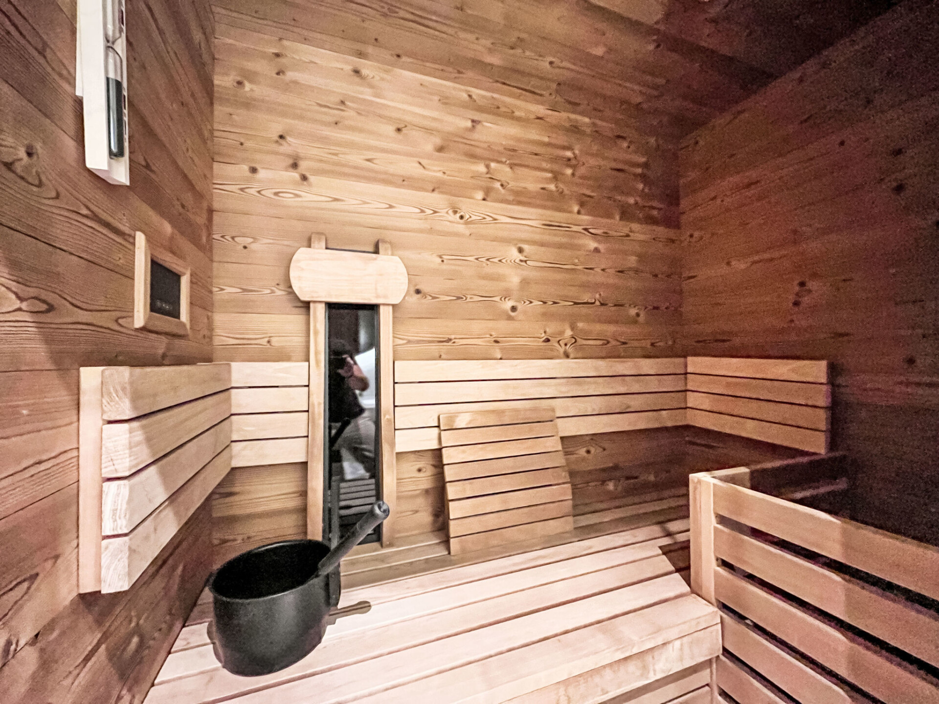 "Appartement für 8 Personen mit Sauna", appartement 4-kamers 90 m2 op 3 verdiepingen. Licht, modern ingericht: woon-/slaapkamer met 1 2-pers divanbed, eettafel, Sat-TV en internationale TV-zenders (Flatscreen TV). Uitgang naar het terras. Kookhoek (oven, afwasmachine, 4 keramische glas kookplaten, elektrische koffiemachine). Aparte WC, Sauna. Verwarming. Bovenverdieping: 1 2-pers. kamer. Douche/WC. 2e Verdieping: 2 2-pers. kamers. Douche/WC. Terras 10 m2. Terrasmeubelen. Mooi uitzicht op de bergen. Ter beschikking: sauna, haardroger. Internet (WiFi, gratis). Niet rokers woning. Maximaal 1 huisdier/hond toegestaan. De beschrijving betreft een voorbeeld van dit type woning in dit complex.