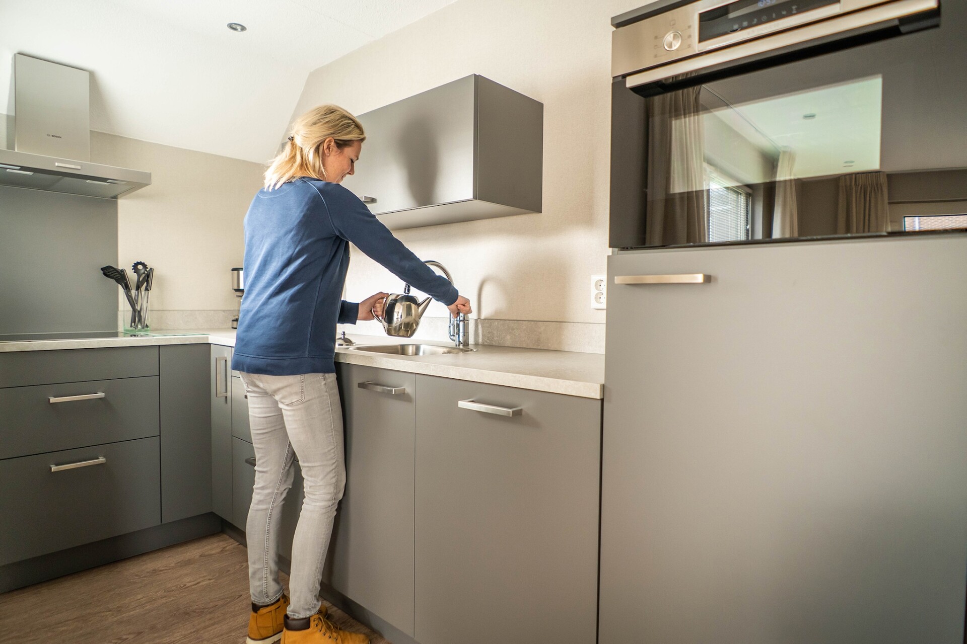 Een compleet ingerichte keuken met vaatwasser en combimagnetron. Aparte bijkeuken op begane grond met een wasmachine. U beschikt over een eigen afsluitbare berging(fietsenstalling). Gratis parkeren op eigen terrein.