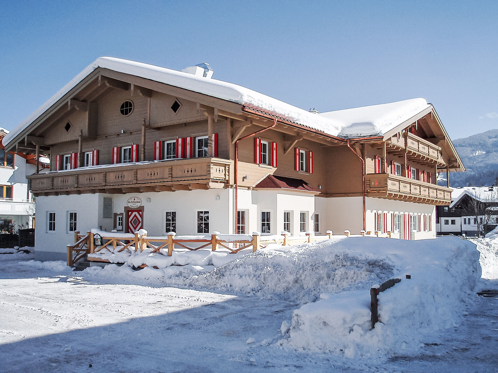 Altenmarkt: Op een toplocatie, in het hart van het sportgebied Amade met meer dan 850 km skipistes, bevindt zich dit fraai comfortabel flatgebouw "Hofresidenz". In de plaats, 1 km van het centrum van Altenmarkt, rustige, zonnige ligging, 3 km van het meer, 3 km van het skigebied. Voor medegebruik: terrein, weide, ligweide. Kinderspeelplaats. In het huis: receptie, restaurant, ontbijtruimte, sauna, fitnessruimte, bergruimte voor fietsen, zonneterras, berging voor ski's, centrale verwarming. Broodjesservice, ontbijt en half pension op aanvraag (extra). Parkeerplaats bij het huis. Levensmiddelenwinkel 100 m, restaurant 10 m, bushalte 100 m, treinstation "Altenmarkt" 2 km, thermaalbad "Therme Amadé" 150 m, meer (zwemmen) "Eben" 3 km. Golfterrein (18 holes) 5 km, tennis, manege 500 m, sportcentrum 1 km, kabelbaan 2 km, skilift 2 km, skibushalte 20 m, skischool 2 km, langlaufloipe 50 m, ijsbaan 500 m. Bekende skigebieden kunnen gemakkelijk worden bereikt: Flachau-Wagrain-St.Johann 5 km, Altenmarkt-Radstadt 3 km, Zauchensee-Flachauwinkel-Kleinarl 10 km. Gratis skibus. Gratis skibus naar het skigebied Flachau-Wagrain-St.Johann en Zauchensee-Flachauwinkel-Kleinarl. De afgebeelde foto is slechts een voorbeeld. Vergelijkbare accommodaties kunnen worden geboekt. In het huis bevindt zich een gezellig restaurant met open keuken en een heerlijk zonneterras met uitzicht op het mooie berglandschap. 1e Klas fitnessruimte met meer dan 40 "Technogym" toestellen en mooi saunacomplex met Finse sauna, stoombad en eigen rustruimte, nodigen uit tot ontspanning. De fitnessruimte is van 7-19 uur geopend voor kinderen vanaf 14 jaar.