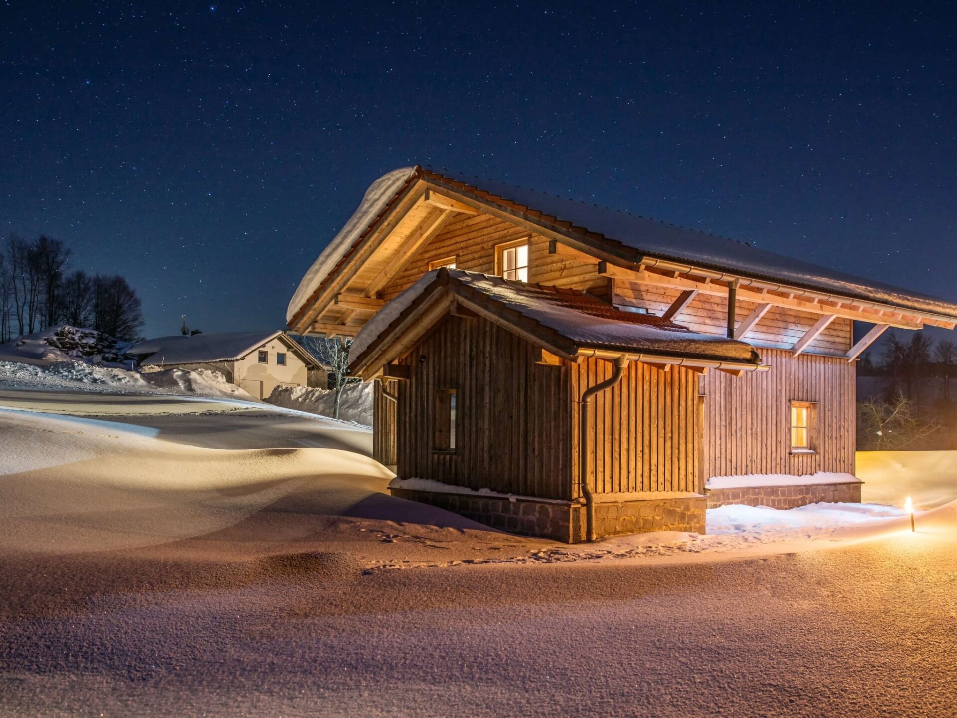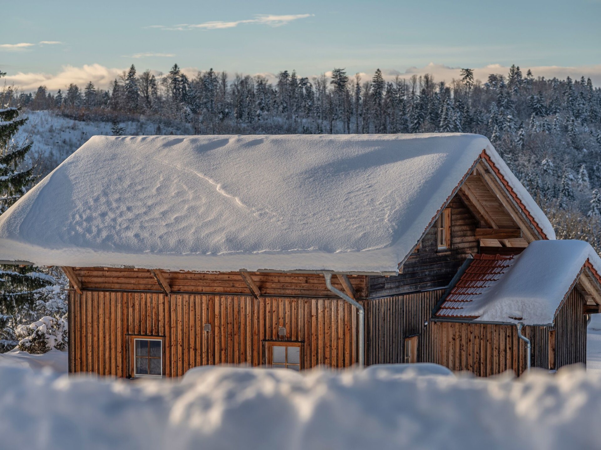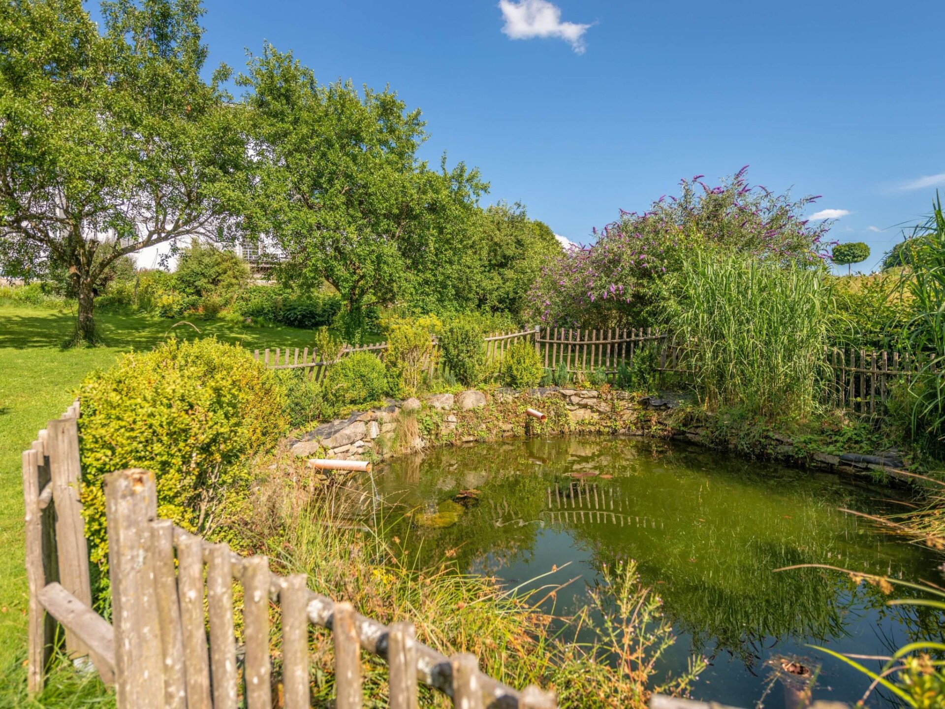 Welcome to Chalet Hoizhaus, your dream holiday destination in the eastern Bavarian Forest. Situated in a picturesque, secluded location on the Bardlberg in Rastbüchl, this country estate offers an oasis of tranquillity and closeness to nature. Right in the border triangle region between the Austrian Mühlviertel and the Czech Bohemian Forest, you can experience an unrivalled landscape here. With the mystical Dreisesselberg as the local mountain and the stunning low mountain range landscape as a backdrop, the chalet is the perfect starting point for nature lovers and those seeking relaxation.Inside the chalet, the emphasis is on comfort and luxury. It offers 90 m² of space for 2-4 people with two bedrooms that not only offer premium beds from Mühldorfer, but also highlights such as a south-facing balcony and flat-screen TVs. The spacious bathroom comes with an open shower, underfloor heating, a free-standing whirlpool bath and a private sauna that invite you to relax. The fully equipped kitchen and dining area are harmoniously integrated into the open-plan living area, making the chalet the perfect oasis of well-being.The outdoor area of the chalet leaves nothing to be desired. There is a large sunbathing lawn with access to the garden and pond, a terrace with seating, a charcoal barbecue and a fire bowl. Sun loungers and a large parasol invite you to enjoy the surrounding nature and relax. The idyllic outdoor seating area by the pond and the enchanting forest playground complete the offer and make your stay outdoors a special experience.The area around the chalet is characterised by the breathtaking nature of the Bavarian Forest. The country estate is the ideal starting point for exploring the region, including the Dreisesselberg and the Vltava reservoir. The well-known cities of Passau, Linz and Krummau are also within easy reach and offer cultural experiences. In winter, the landscape is transformed into a tobogganing and snowshoeing paradise. With included services such as final cleaning, personal introduction, use of the sauna and much more, your stay promises to be relaxed and carefree.The Chalet Hoizhaus stands for a holiday that combines closeness to nature, luxury and comfort. Whether you are looking for relaxation, want to explore nature or simply want to unwind in your own sauna: You've come to the right place. Book your stay at this serviced holiday home and experience unforgettable days in one of Germany's most beautiful regions.