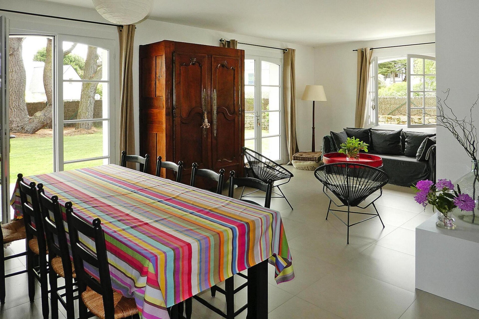Op steenworp afstand van het lange witte zandstrand van Ty Bihan! Geniet van de rustige ligging in de mooiste woonwijk van de populaire badplaats. Het ruime vakantiehuis biedt een smaakvolle inrichting, uitstekend comfort en een prettige sfeer. Op het terras omgeven door hagen kunt u op Franse wijze ontbijten, terwijl oudere kinderen zich vermaken op het strand. Bijzonder praktisch zijn de drie parkeerplaatsen voor uw auto's op het afgesloten terrein: een gemak dat vooral in het hoogseizoen wordt gewaardeerd. Ook buiten het seizoen heeft Carnac veel te bieden, van wellness en casino tot cultuur met de wereldberoemde menhirs en hunebedden, die jaarlijks vele bezoekers trekken. 's Avonds kunt u ontspannen na interessante excursies bij een gezellige open haard in de comfortabele woonkamer. Carnac is een van de meest populaire badplaatsen in Bretagne en staat wereldwijd bekend om zijn staande stenen, indrukwekkende getuigenissen uit de Neolithische periode. De zandstranden van Fönf lokken met een breed scala aan watersporten en recreatieve activiteiten. Het stadje is het hele jaar door levendig en heeft veel te bieden. Vanuit Carnac of La Trinité-sur-Mer kunt u boottochten maken in de Golf van Morbihan en naar de tegenoverliggende eilanden. Er zijn veel interessante excursiebestemmingen in de buurt. Het schiereiland Quiberon met zijn kleurrijke havens, witte stranden en de indrukwekkende Côte Sauvage (wilde kust) ligt op slechts een paar minuten rijden. U bent van harte welkom om uw auto aan het begin van het schiereiland te laten staan en de stoptrein naar de top te nemen. Fijnproevers krijgen overal waar voor hun geld. Carnac heeft een belangrijke oesterkwekerij, maar alle andere Bretonse specialiteiten zijn ook verkrijgbaar op de markten en in vele goede restaurants.