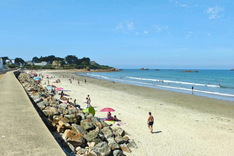 Smaakvol en modern gerenoveerd vakantiehuis tussen land en zee. Het bijzondere hoogtepunt van de woning is het kleine dakterras, dat u een vrij uitzicht geeft over het land tot aan de zee. De lichte, met licht overgoten kamers, waarvan de inrichting is geïnspireerd op de natuur, stralen een aangename sfeer uit. Vanuit de woonkamer met gezellige hoekhaard heeft u via brede glazen deuren toegang tot het zichtbeschutte terras, waar u heerlijk buiten kunt eten of gewoon lekker kunt relaxen in de zon.Direct achter het vakantiehuis bereikt u de lange via een klein pad van de douanebeambte na slechts een kilometer Zandstrand van primula. Boven het strand is een strandpromenade met diverse restaurants en crêperies. De typisch Bretonse badplaats Plougasnou ligt aan de rand van de baai van Morlaix en biedt fijne zandstranden en kleine rotsachtige baaien. De populaire markt vindt elke dinsdagochtend plaats op het kerkplein, een ideale locatie, aan de oostelijke rand van Finistère en op de grens van de Côtes d'Armor! Vanaf hier kunt u ideaal beide departementen verkennen en niet alleen de unieke natuur ervaren, maar ook veel geschiedenis, interessante kleine steden en prachtige ruige rotskusten. In het westen de baai van Morlaix met o.a. het pittoreske haven- en kuuroord Roscoff, in het oosten de prachtige roze granietkust met de