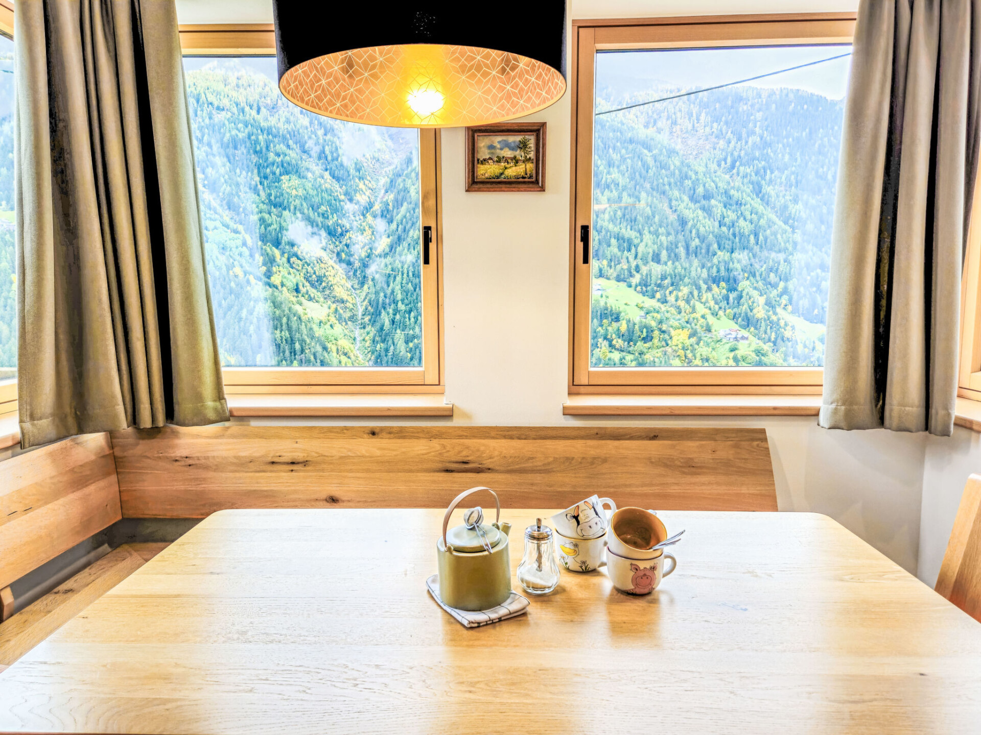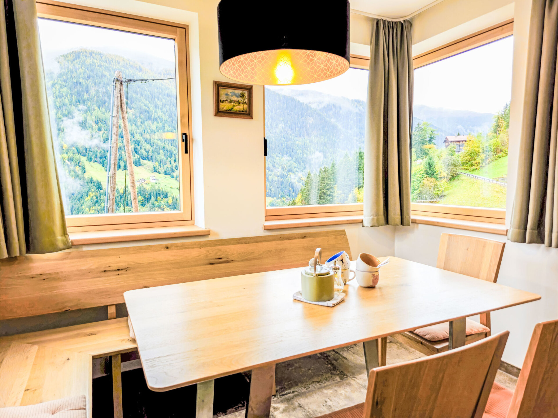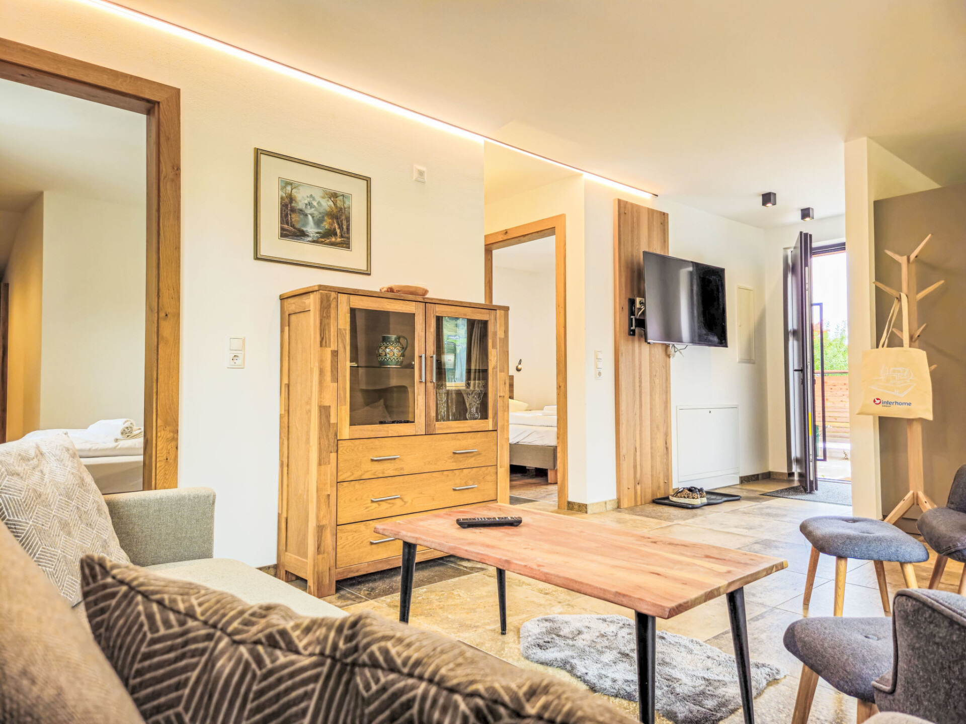"Home Holzwurm", appartement 3-kamers 70 m2 op de 1e verdieping. Het objekt is geschikt voor 6 volwassenen. Ruim en licht, zeer modern en gezellig ingericht: 1 2-pers. kamer met bad/WC en Kabel-TV (Flatscreen TV). 1 2-pers. kamer met 1 2-pers bed, douche/WC en Sat-TV (Flatscreen TV). Woonkeuken (oven, afwasmachine, 4 keramische glas kookplaten, broodrooster, waterkoker, magnetron, diepvriezer, elektrische koffiemachine, pads voor de koffiemachine (Dolce Gusto)) met 1 2-pers divanbed en Kabel-TV (Flatscreen TV). Uitgang naar het balkon. Mooi panoramazicht op de bergen. Ter beschikking: wasmachine. Internet (WiFi, gratis). Parkeerplaats (2 Auto's). Niet rokers woning. Maximaal 1 huisdier/hond toegestaan.