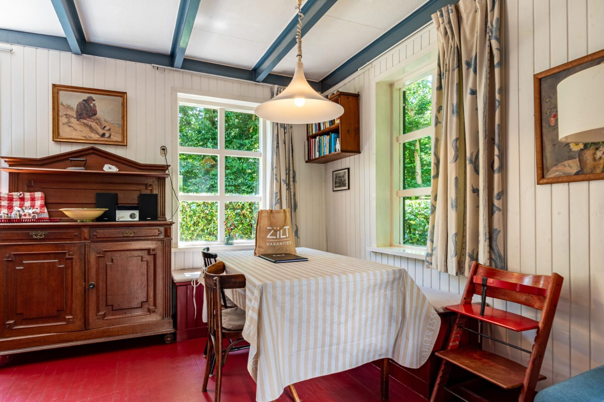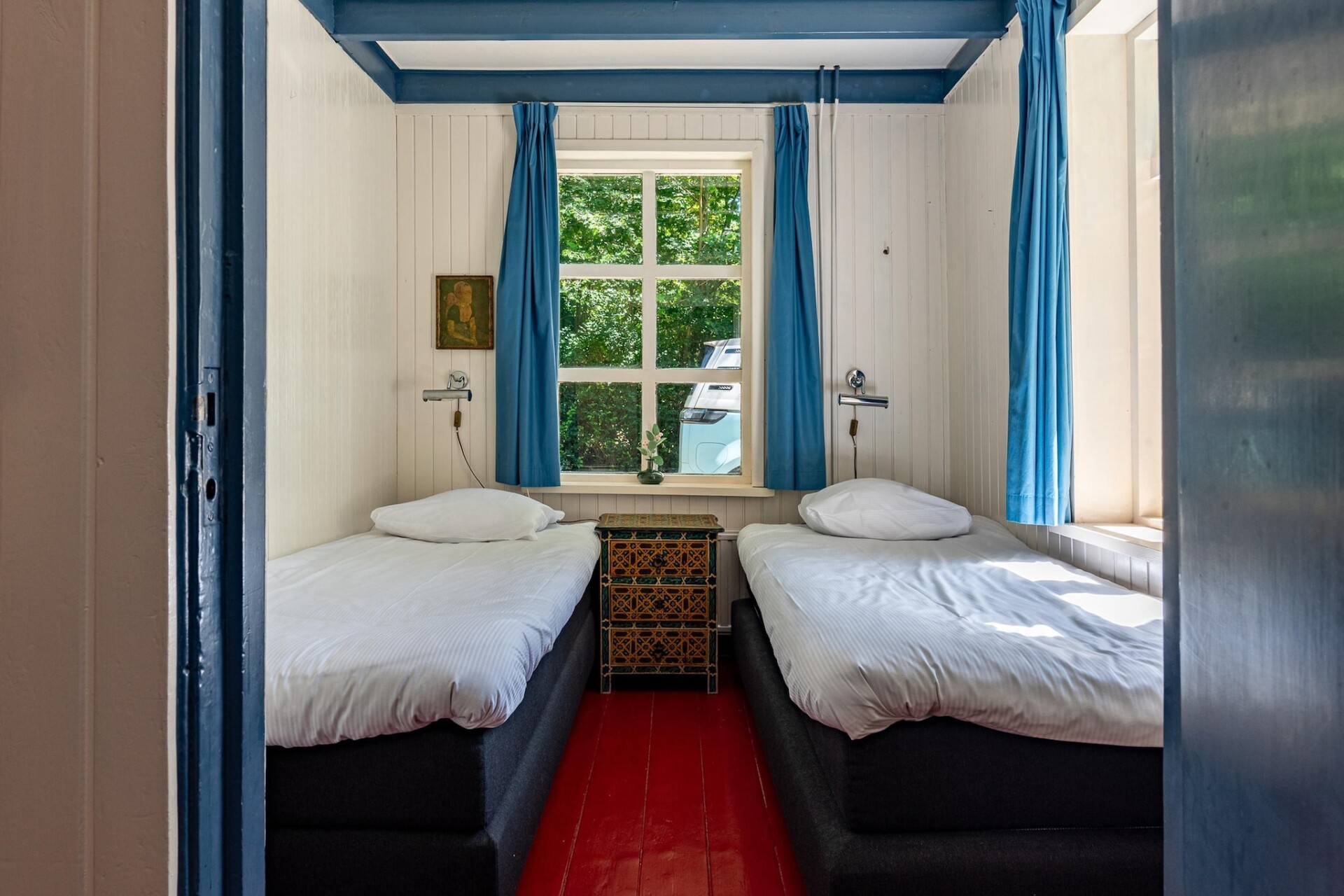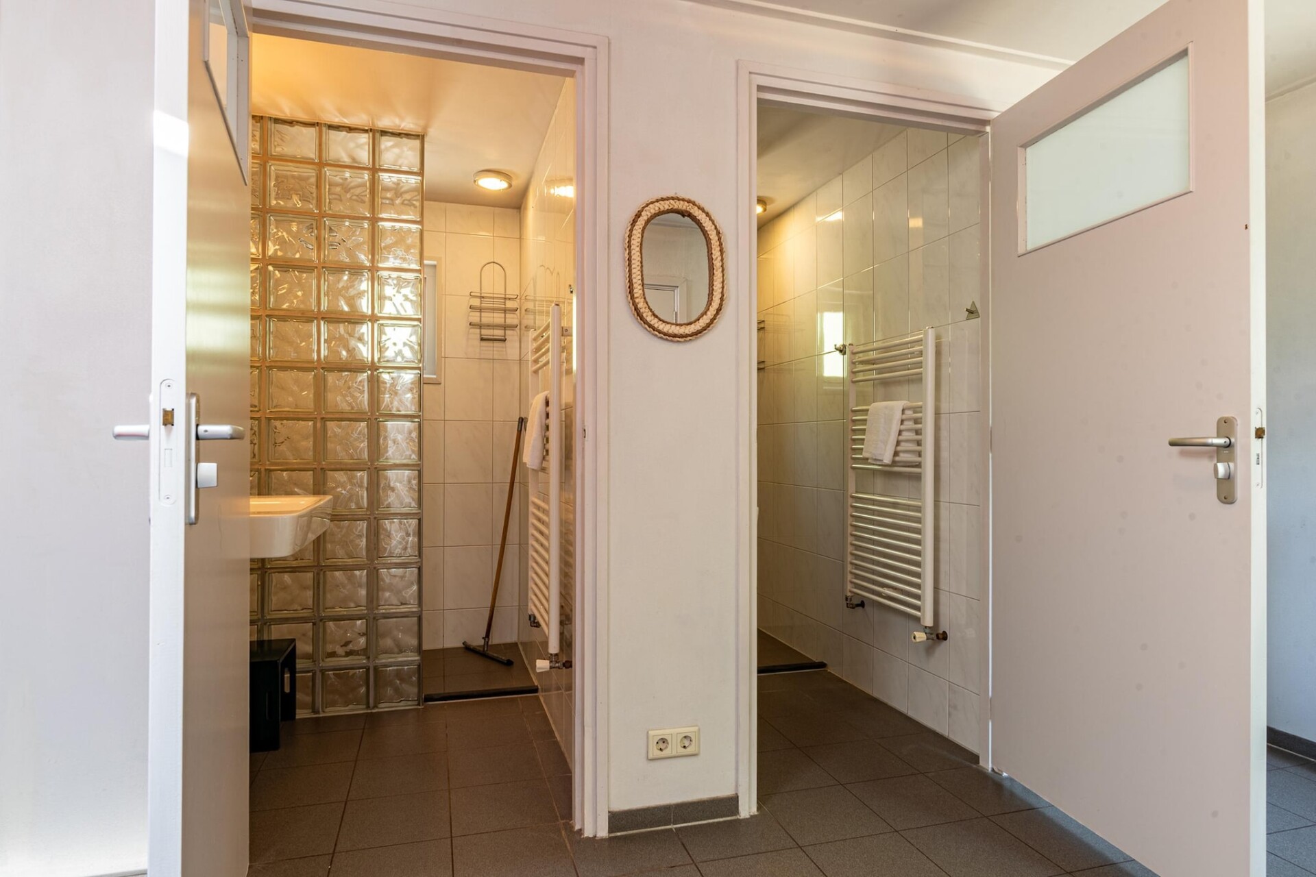 Het huis beschikt over een gezellige woonkamer met open haard en toegang tot een overdekt terras, een gesloten keuken en twee badkamers met douche en wastafel op de begane grond. Een sauna en een slaapkamer met twee eenpersoonsbedden op de begane grond zorgen voor extra comfort. Boven vindt u nog vier slaapkamers en een apart toilet, waaronder twee kamers met ingebouwde eenpersoonsbedden, één met twee eenpersoonsbedden en één met een tweepersoonsbed. De woning combineert rustieke charme met praktisch comfort en biedt alles wat u nodig heeft voor een ontspannen vakantie.