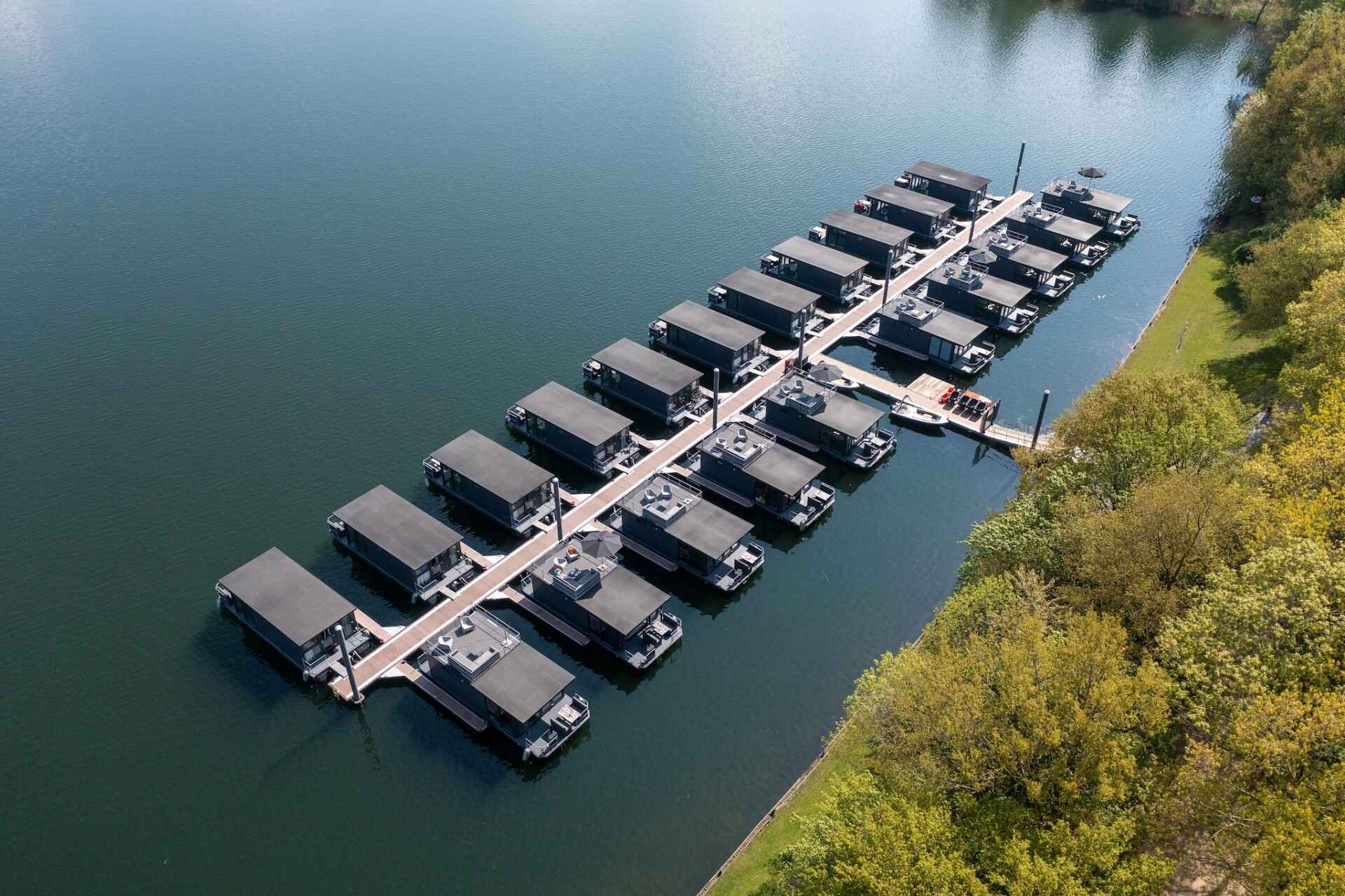 De woonboten op de Mookerplas liggen niet alleen prachtig, maar zijn ook zeer comfortabel ingericht; ze zijn geschikt voor elk seizoen. De entree van de accommodatie is vanaf de steiger. U zult direct de grote ramen en het uitzicht dat daarbij hoort opmerken. Er is een fijne leefruimte met open keuken, twee slaapkamers (waarvan één met stapelbed) en een moderne badkamer. Op mooie dagen is het natuurlijk heerlijk toeven op het gemeubileerde dakterras met vrij uitzicht over de Mookerplas.