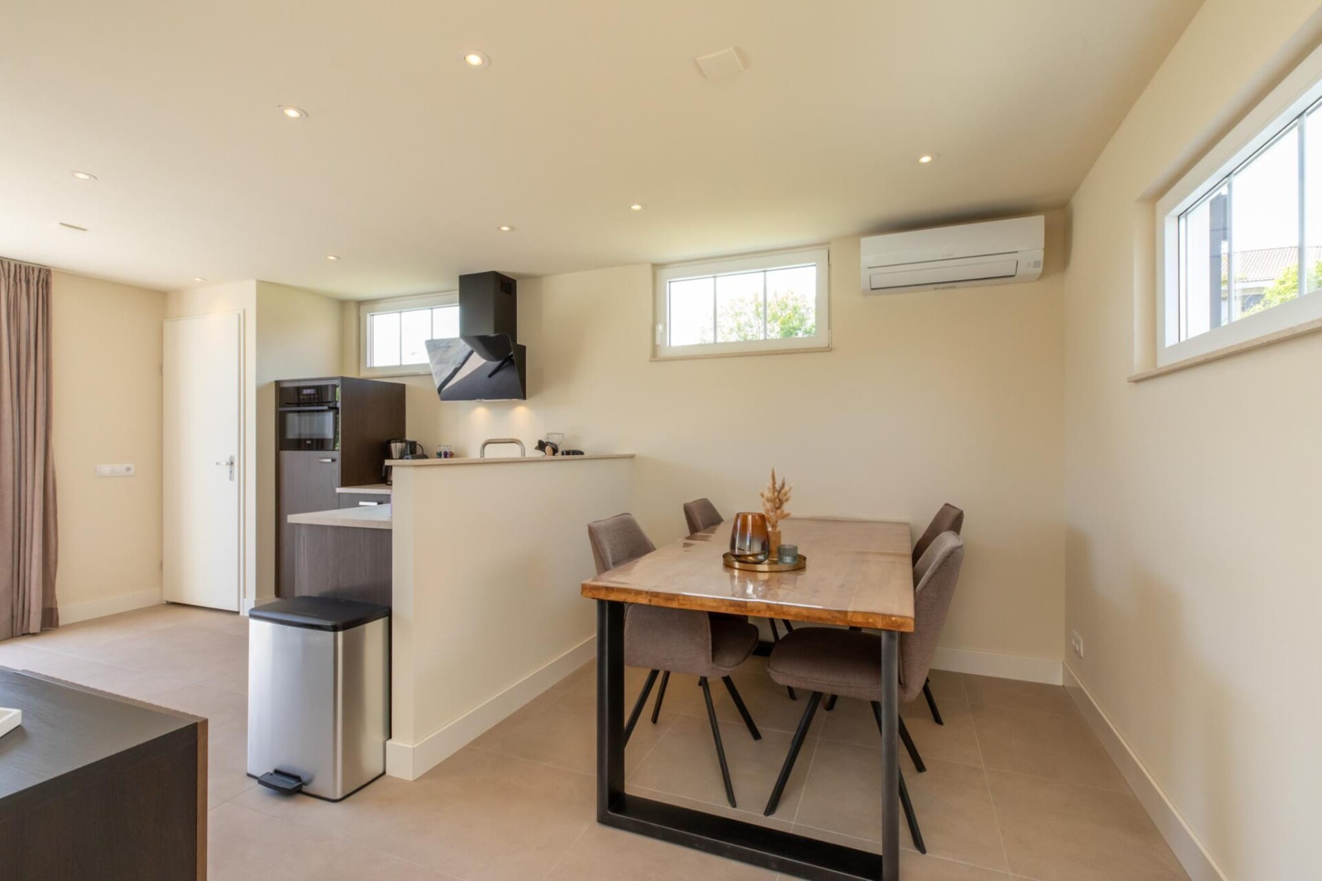 Wanneer u De Strandloper binnenstapt, voelt u direct de rustgevende sfeer van deze goed ontworpen ruimte. De begane grond beschikt over een ruime hal die leidt naar een handig toilet, een volledig uitgeruste keuken en een lichte woonkamer met een doordachte inrichting. Ontspan op de comfortabele driezitsbank, geniet van een spelletje met het gezin aan de salontafel of strijk neer aan de eettafel voor maaltijden bereid in de moderne keuken, die is uitgerust met alles wat u nodig heeft voor culinaire hoogstandjes.