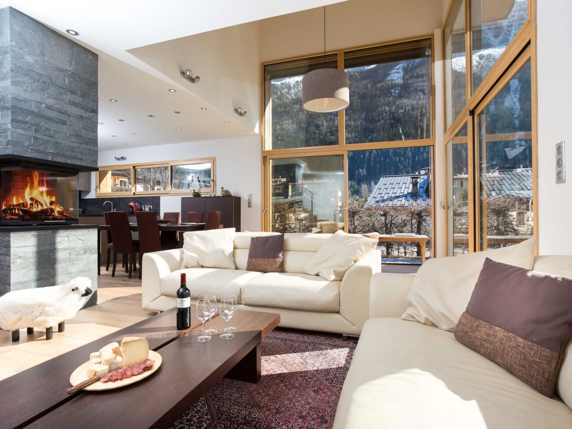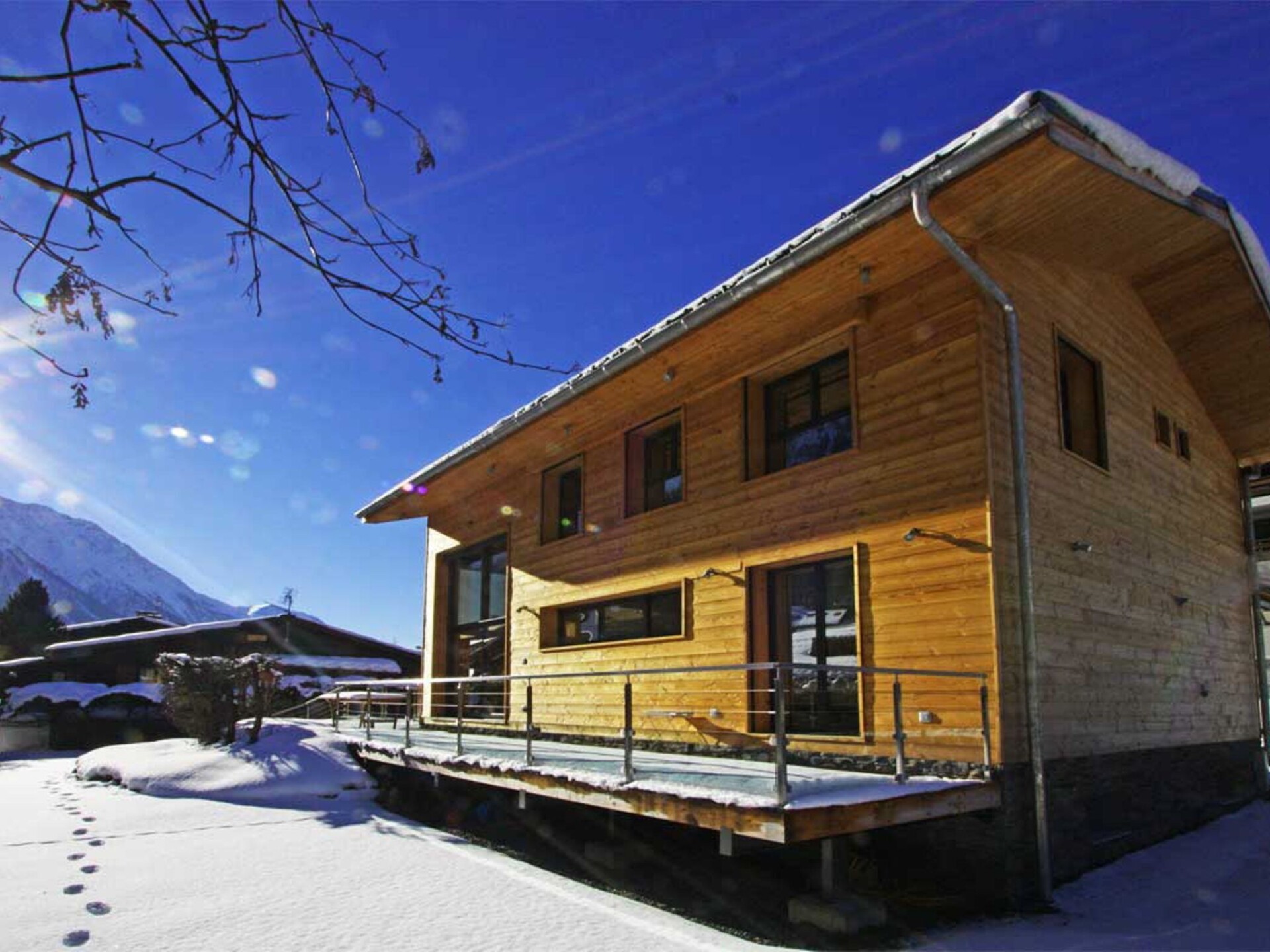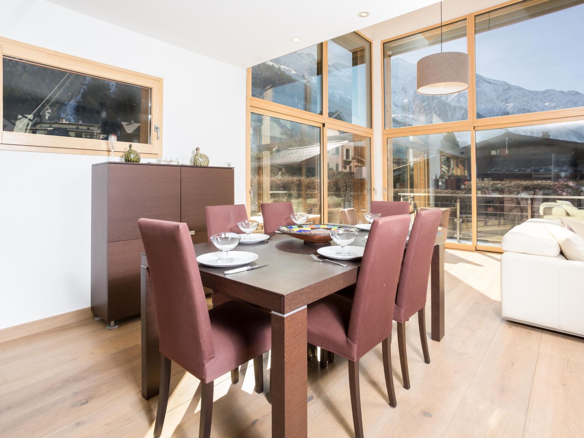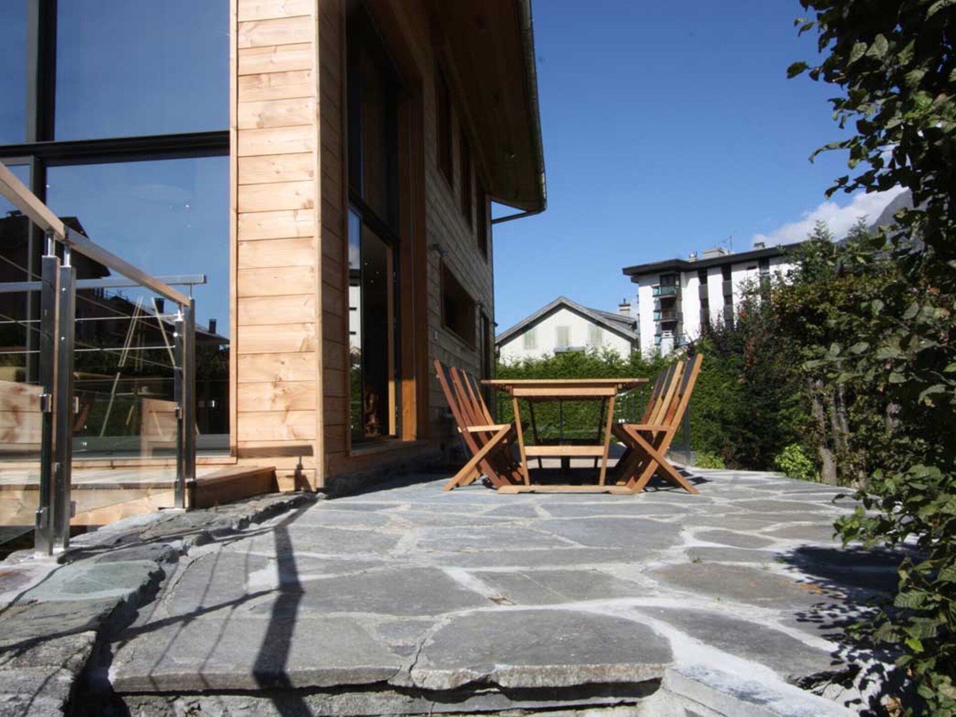 Chalet Raphael is situated right in the centre of Chamonix, just alongside the Aiguille Du Midi train station and is the perfect location for a Chamonix chalet. The town centre starts only 150m from the chalet for shops, bars and restaurants, with the closest eateries just at the end of the street, and a large supermarket is accessible even on foot in less than 10 minutes. The closest main bus stop is 400m away for access throughout the valley for skiing and summer activities.Chalet Raphael is a stunning, newly built, luxury Chamonix chalet, located right in the centre of Chamonix town centre, which benefits from a sunny terrace and garden facing Mont Blanc. The large picture windows from the living area and spacious terrace and garden offer unrivalled views of Mont Blanc, Aiguille du Midi and Glacier des Bossons. The Chamonix chalet has 4 bedrooms and 3 bathrooms, plus open-plan living and dining area centred around a log fire, as well as a peaceful separate reading snug on the first floor. The kitchen is well-equipped to make your stay comfortable, with oven / microwave, raclette and Nespresso coffee machine, and the dining table seats 8. There is a telescope provided at Chalet Raphael for your enjoyment in the living room, as well as French satellite TV channels, Apple TV, Playstation 4 and DVD player. There are DVDs and CDs to choose from, and an upright piano.The lower ground level also offers gym equipment for your use and there is ski storage in the garage, while the driveway offers external parking. Key Features Sleeps 8 Approx. 200 sqm of living space 4 bedrooms, 3 bathrooms 2 x King bedrooms & 2 x Twin or King Bedrooms Sunny terrace and private garden, ideal for families Uninterrupted panoramic views of Mont Blanc Lounge with log fire Flatscreen TV, French satellite channels, Apple TV, DVD player & Playstation 4 Wifi internet access Dining room area with seating for 8 Well-equipped kitchen with dishwasher, raclette & Nespresso coffee machine (pre-order your capsules) Washing machine and dryer Gym room Piano Ski & boot room / storage for bikes Parking on driveway for up to 3 cars