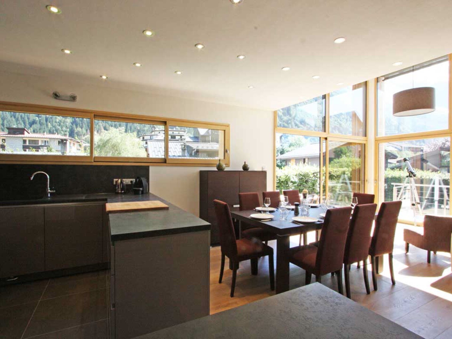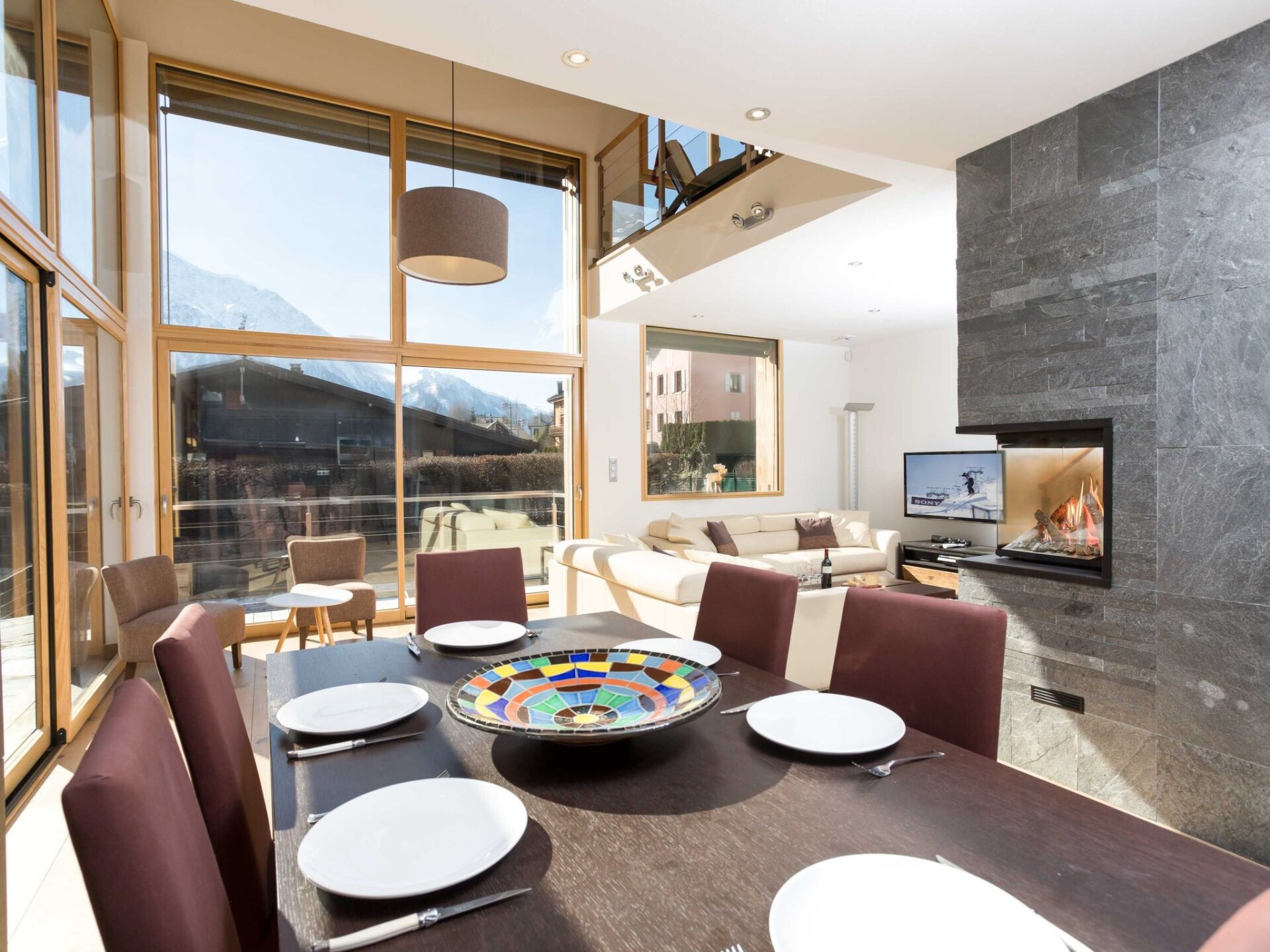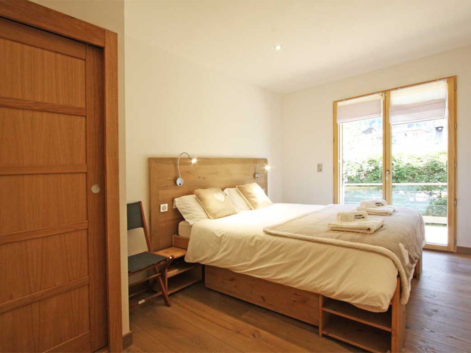 Chalet Raphael is situated right in the centre of Chamonix, just alongside the Aiguille Du Midi train station and is the perfect location for a Chamonix chalet. The town centre starts only 150m from the chalet for shops, bars and restaurants, with the closest eateries just at the end of the street, and a large supermarket is accessible even on foot in less than 10 minutes. The closest main bus stop is 400m away for access throughout the valley for skiing and summer activities.Chalet Raphael is a stunning, newly built, luxury Chamonix chalet, located right in the centre of Chamonix town centre, which benefits from a sunny terrace and garden facing Mont Blanc. The large picture windows from the living area and spacious terrace and garden offer unrivalled views of Mont Blanc, Aiguille du Midi and Glacier des Bossons. The Chamonix chalet has 4 bedrooms and 3 bathrooms, plus open-plan living and dining area centred around a log fire, as well as a peaceful separate reading snug on the first floor. The kitchen is well-equipped to make your stay comfortable, with oven / microwave, raclette and Nespresso coffee machine, and the dining table seats 8. There is a telescope provided at Chalet Raphael for your enjoyment in the living room, as well as French satellite TV channels, Apple TV, Playstation 4 and DVD player. There are DVDs and CDs to choose from, and an upright piano.The lower ground level also offers gym equipment for your use and there is ski storage in the garage, while the driveway offers external parking. Key Features Sleeps 8 Approx. 200 sqm of living space 4 bedrooms, 3 bathrooms 2 x King bedrooms & 2 x Twin or King Bedrooms Sunny terrace and private garden, ideal for families Uninterrupted panoramic views of Mont Blanc Lounge with log fire Flatscreen TV, French satellite channels, Apple TV, DVD player & Playstation 4 Wifi internet access Dining room area with seating for 8 Well-equipped kitchen with dishwasher, raclette & Nespresso coffee machine (pre-order your capsules) Washing machine and dryer Gym room Piano Ski & boot room / storage for bikes Parking on driveway for up to 3 cars