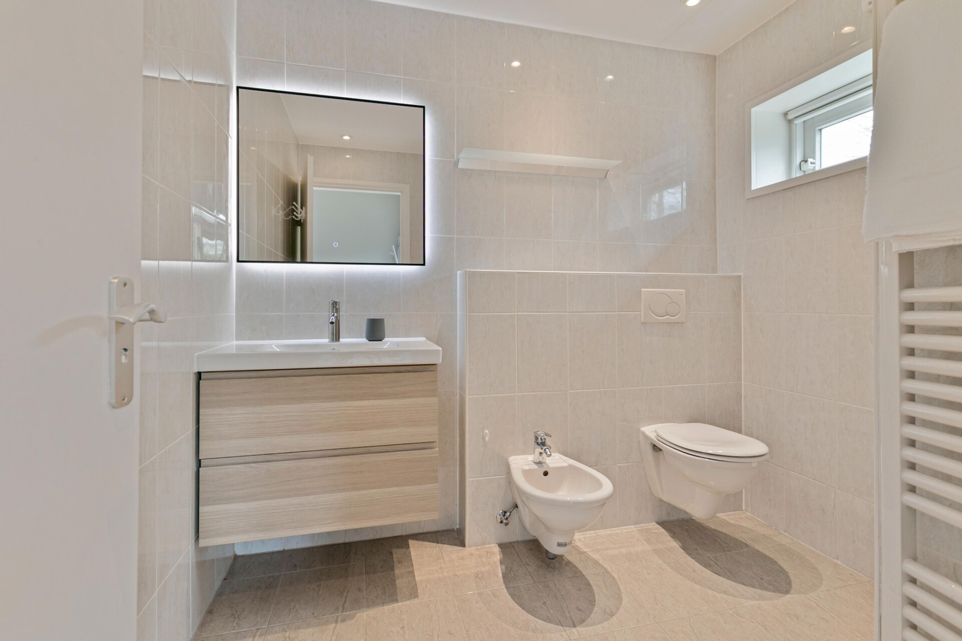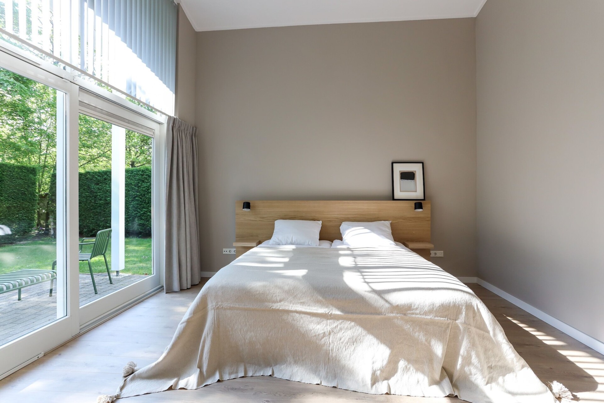 In totaal zijn er 4 slaapkamers, waarvan twee op de begane grond en twee op de verdieping. De twee badkamers bevinden zich op de begane grond en er is een apart toilet. De eerste badkamer heeft een ligbad, douche en wastafel. De tweede badkamer bevindt zich direct bij de ouderslaapkamer op de begane grond en beschikt over een douche, wastafel toilet en bidet.