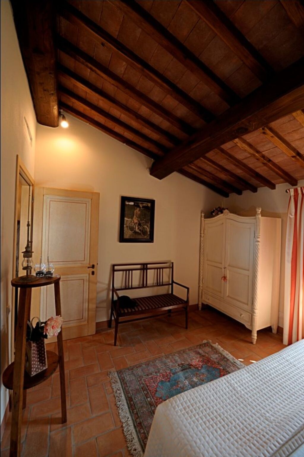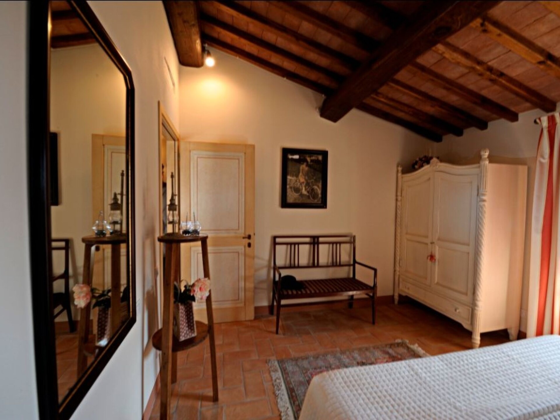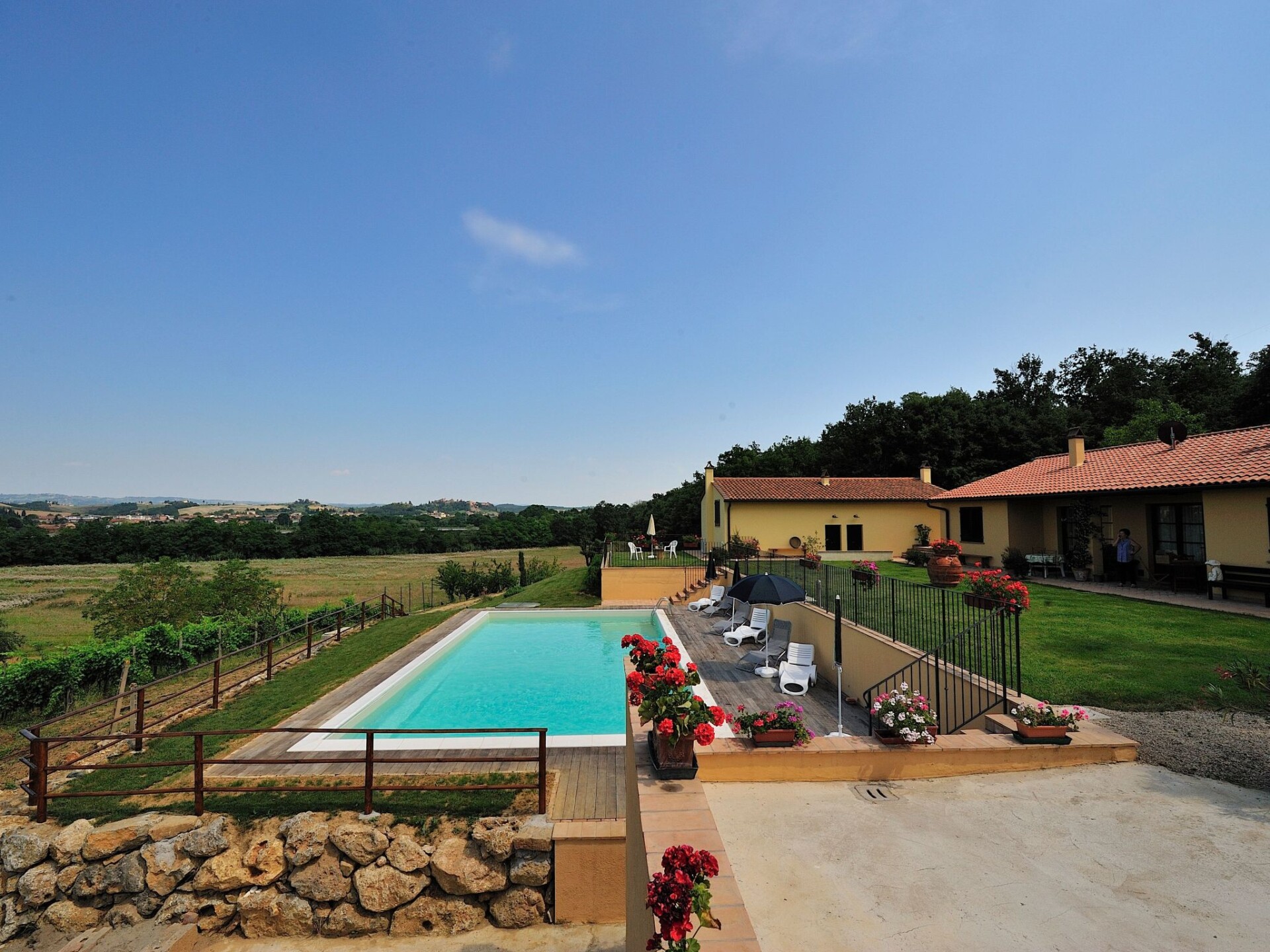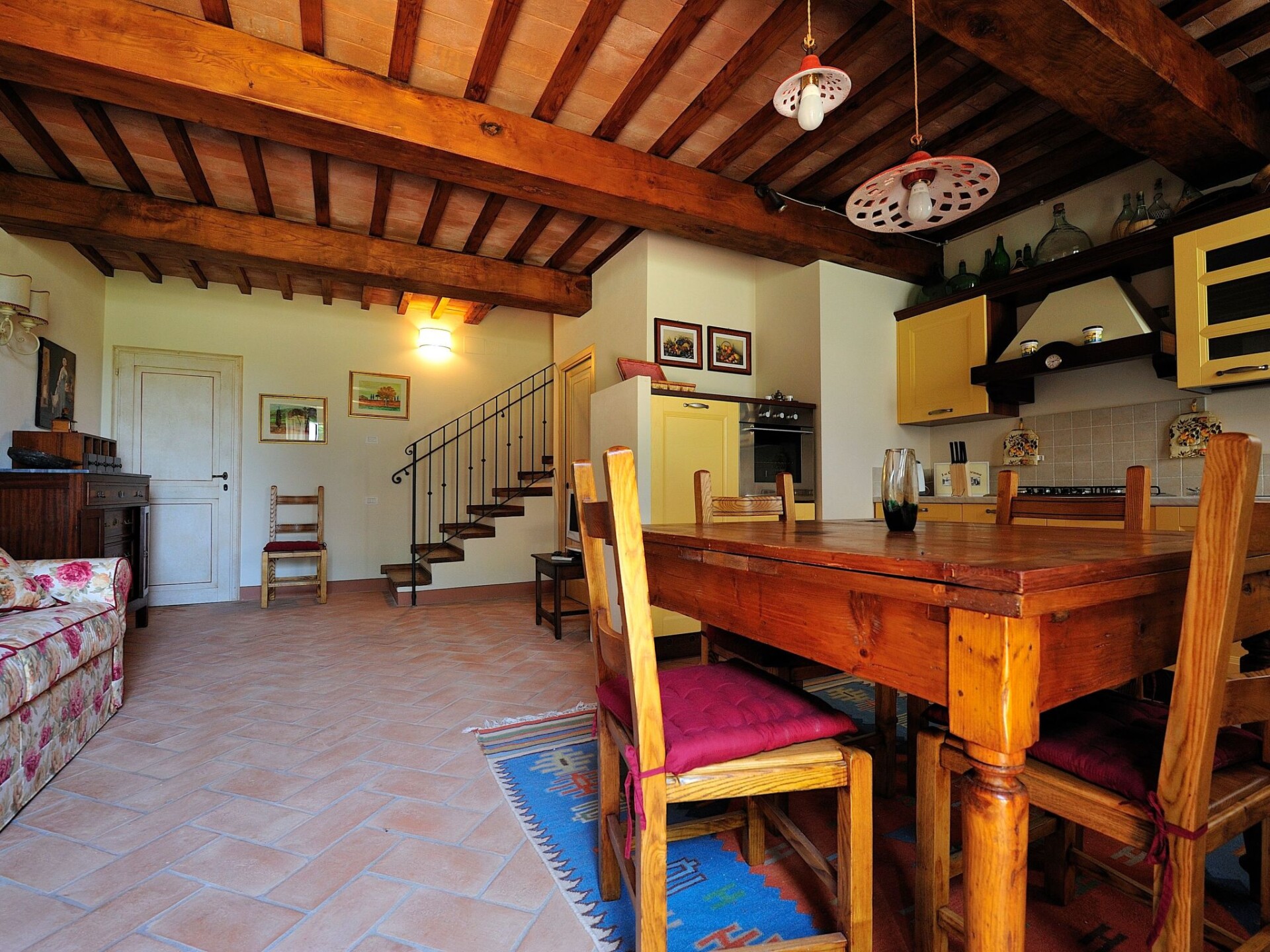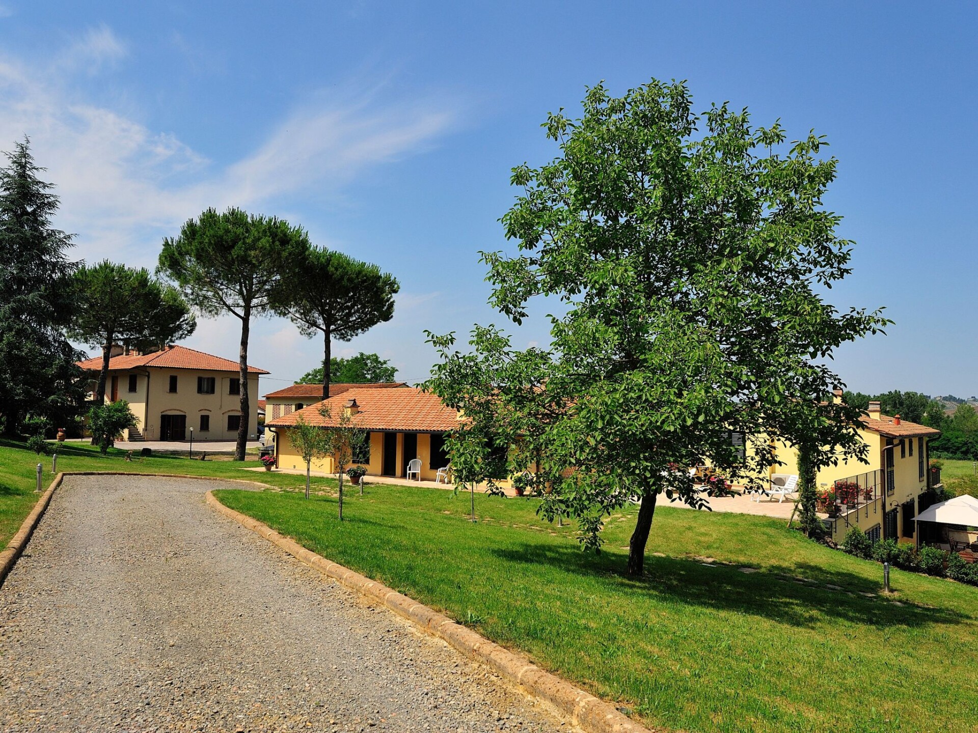 The flat is located in the Tuscan countryside with a splendid view of the vineyards and the medieval village of Certaldo Alto. The flat is in a structure with only 3 flats. The structure is surrounded by more than 20 hectares of high-trunk woodland where you can walk or go mountain-biking in a total fusion with nature, following paths among holm oaks, oaks and turkey oaks.There is a large garden with a gazebo, table and chairs for eating outdoors and deckchairs for relaxing moments. The property has a shared 12 x 6 swimming pool with deckchairs, sunbeds and sunshades. Barbecue facilities are available in common with the other 2 flats on the propertyFlat of 80 square metres, on two floors. On the ground floor there is a large kitchen equipped with all accessories, oven, refrigerator, freezer, dishwasher and the living room, with a two-seater sofa bed and LCD TV with satellite decoder and 1 bathroom with WC, bidet and shower. On the upper floor there are two bedrooms: a double bedroom and a small bedroom with French bed, plus a second bathroom with WC, bidet and shower. Independent heating and air conditioning in the living room and in both bedrooms.Thanks to the favourable location from here you can reach in a short time famous cities of art such as: San Gimignano, Certaldo, Florence, Volterra, Siena and Pisa. The town centre Certaldo is about 2.5 km away where you can find shops, restaurants, supermarket, train station. IT048020B47X523JNJ