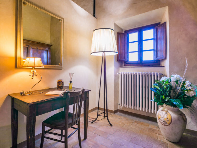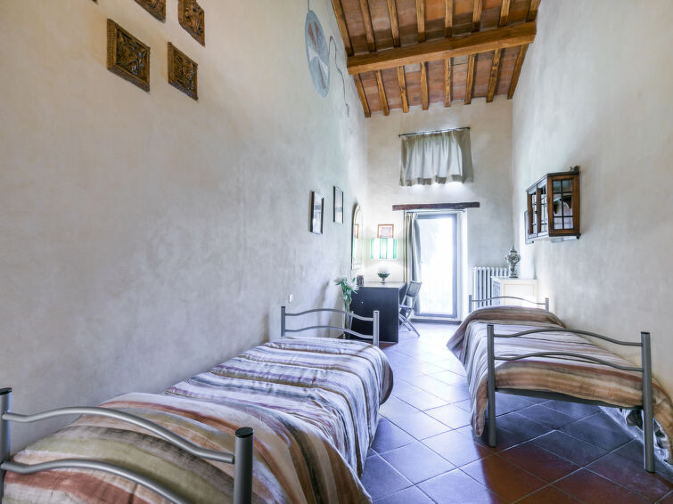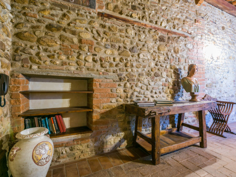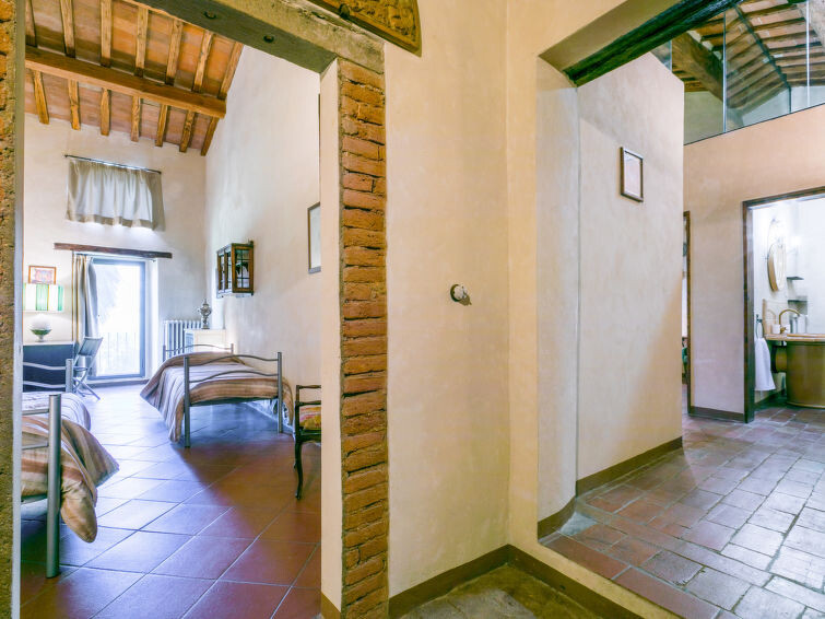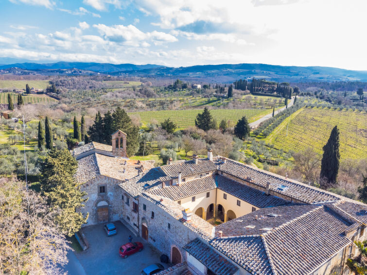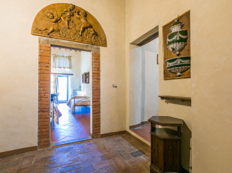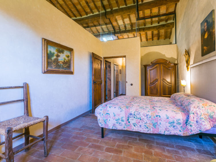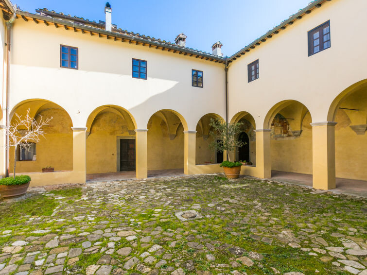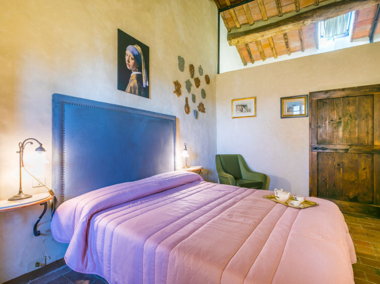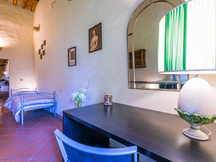 Montefiridolfi: Zeer oude, historische cottage "Il Convento", uit de 14e eeuw, omgeven door wijngaarden. 10 appartementen in de woning. 3 km van het centrum van Montefiridolfi, zonnige, verhoogde ligging op een heuvel, 90 km van zee, te midden van groen. Parkeerplaats bij het huis. Winkel 3 km, levensmiddelenwinkel 3 km, supermarkt 8 km, restaurant 3 km, bakkerij 3 km, bushalte "Montefiridolfi" 3 km, zandstrand "Cecina Mare" 90 km, openluchtzwembad 8 km, overdekt zwembad 8 km. Golfterrein (18 holes) 20 km, tennis 8 km, wandelroutes 100 m vanaf het huis. Attracties in de buurt: Firenze, San Gimignano, Siena. Baby uitrusting (incl.).