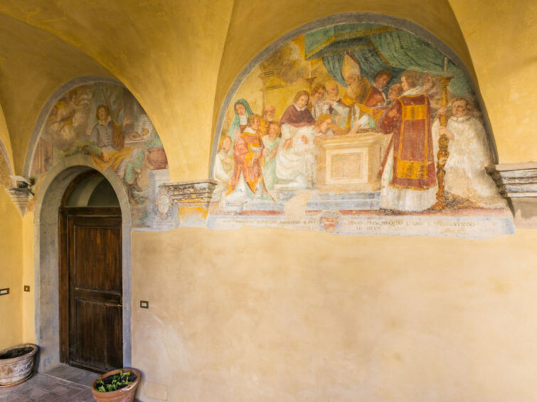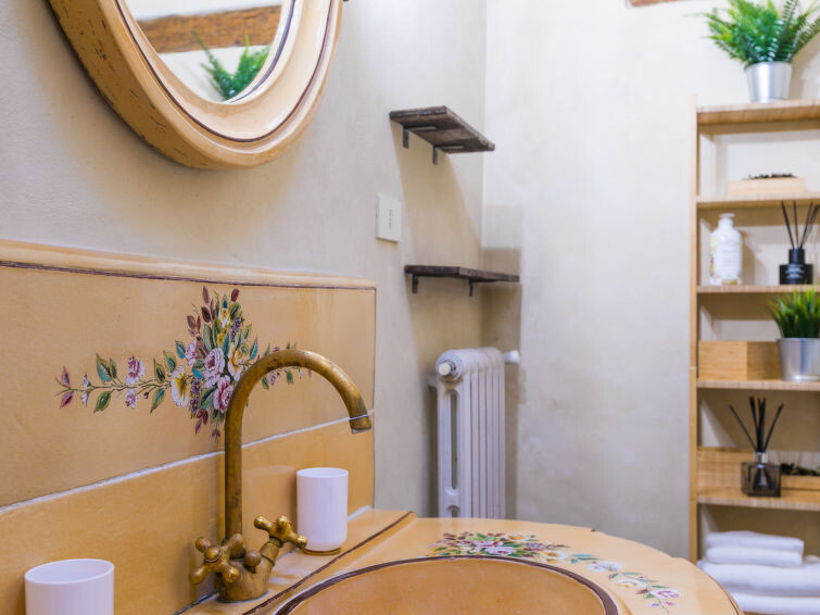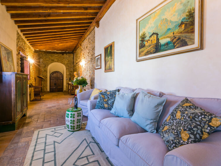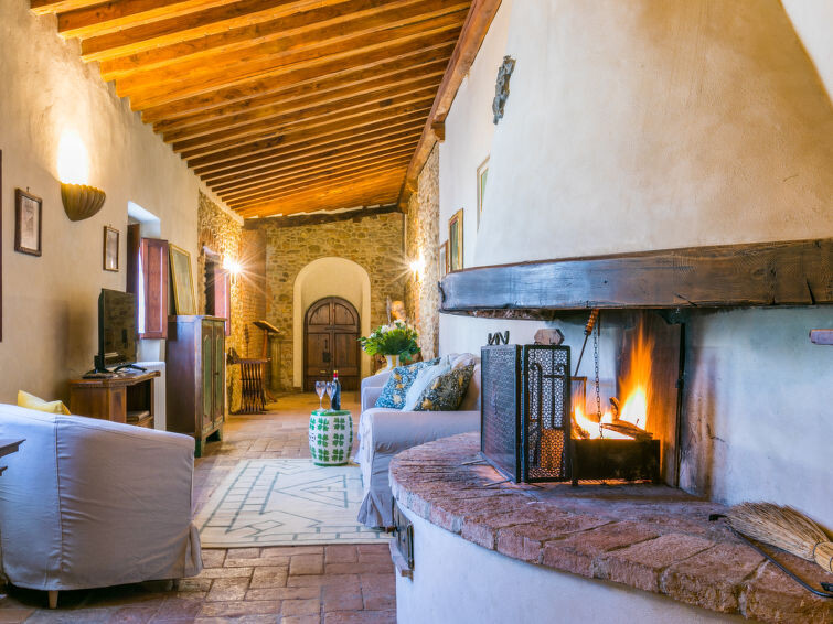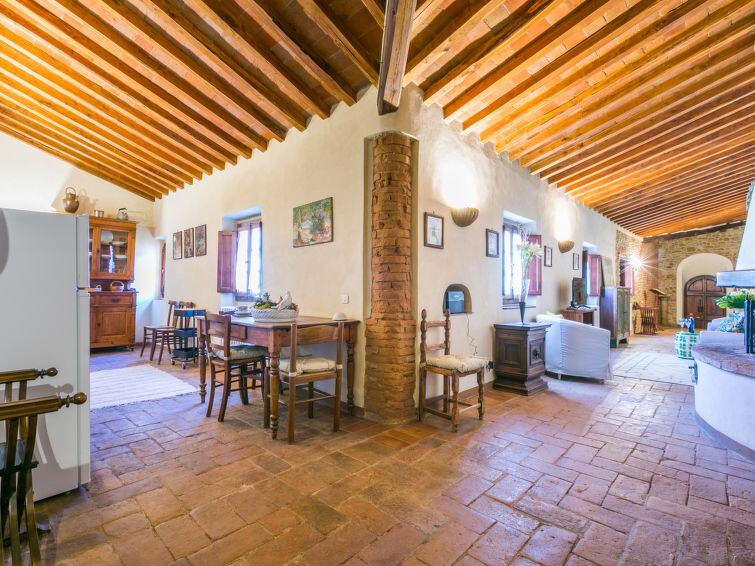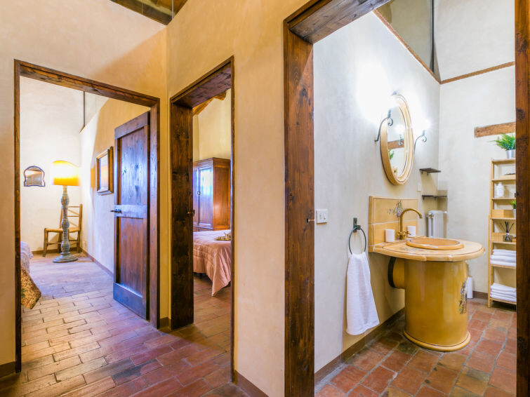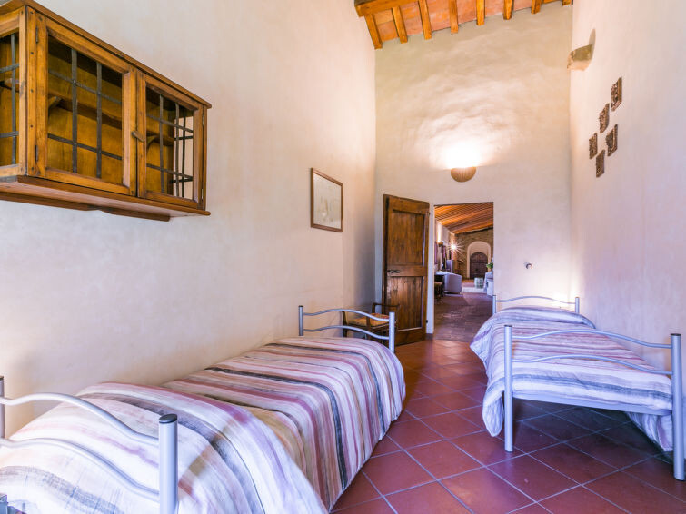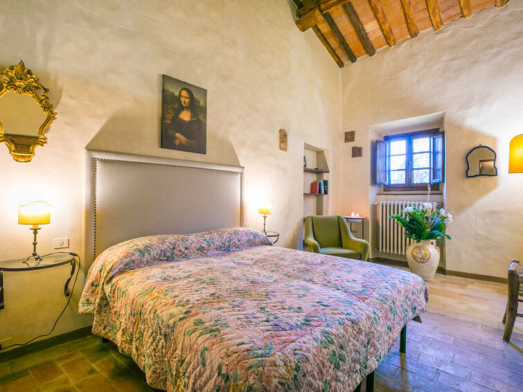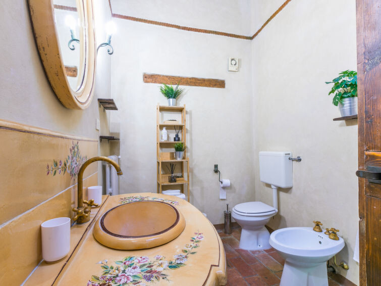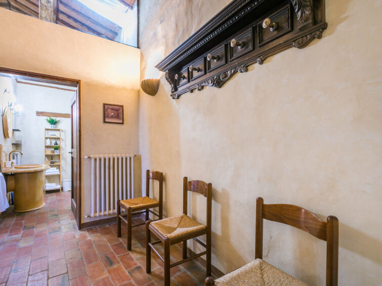 Montefiridolfi: Zeer oude, historische cottage "Il Convento", uit de 14e eeuw, omgeven door wijngaarden. 10 appartementen in de woning. 3 km van het centrum van Montefiridolfi, zonnige, verhoogde ligging op een heuvel, 90 km van zee, te midden van groen. Parkeerplaats bij het huis. Winkel 3 km, levensmiddelenwinkel 3 km, supermarkt 8 km, restaurant 3 km, bakkerij 3 km, bushalte "Montefiridolfi" 3 km, zandstrand "Cecina Mare" 90 km, openluchtzwembad 8 km, overdekt zwembad 8 km. Golfterrein (18 holes) 20 km, tennis 8 km, wandelroutes 100 m vanaf het huis. Attracties in de buurt: Firenze, San Gimignano, Siena. Baby uitrusting (incl.).