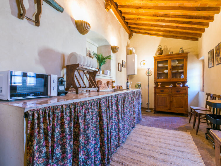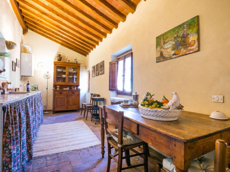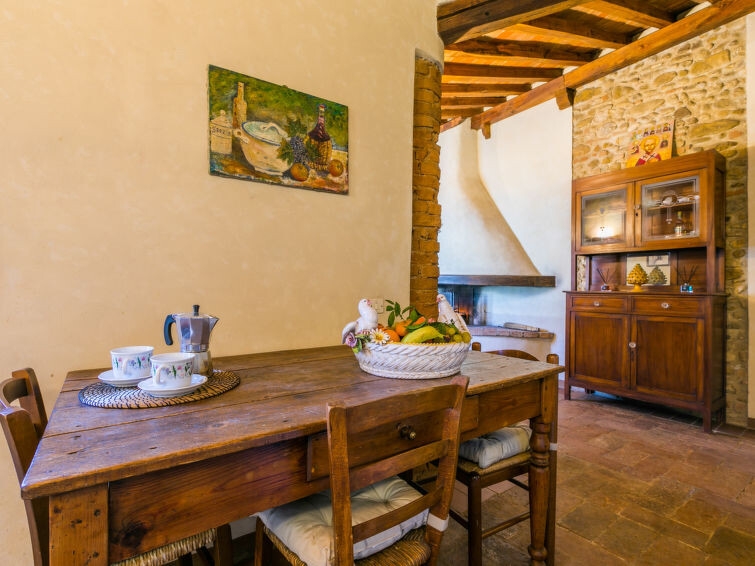 "Il Convento", appartement 4-kamers 100 m2 op de 1e verdieping. Ruim, volledig gerenoveerd, rustiek en gezellig ingericht: woon-/eetkamer met open haard en eettafel. 2 2-pers. kamers. 1 kamer met 2 bedden (90 cm). Open keuken (oven, afwasmachine, Gasfornuis, 4 kookpitten (vlammen), broodrooster, waterkoker, magnetron, elektrische koffiemachine). Douche/bidet/WC. Gas-verwarming (extra). Natuurstenen vloeren. Bergruimte. Mooi uitzicht op het landschap. Ter beschikking: wasmachine, strijkijzer, kinderstoel, kinderbed tot 2 jaar, haardroger, haardhout (extra). Internet (WiFi, gratis). Parkeerplaats (1 Auto) bij het huis. Niet rokers woning. Maximaal 1 huisdier/hond toegestaan. IT048038C2G4OEQT6S