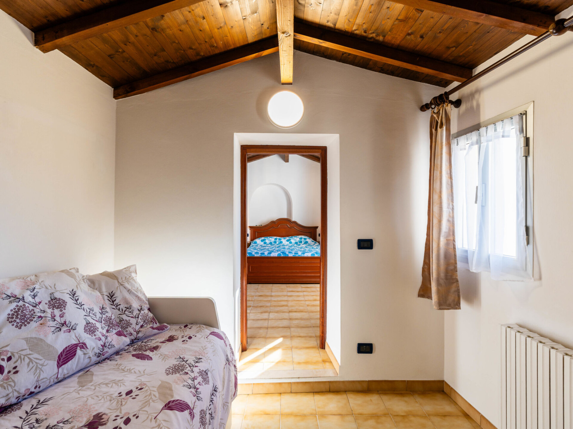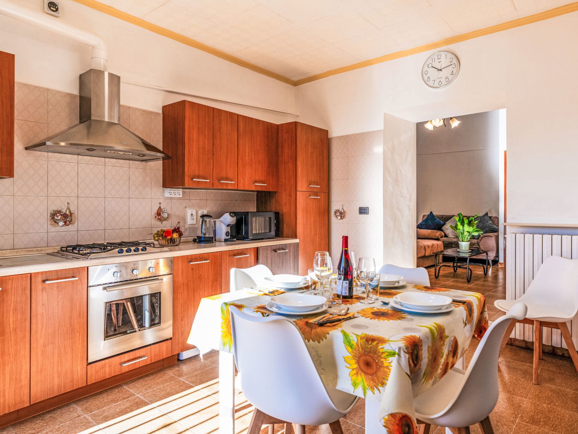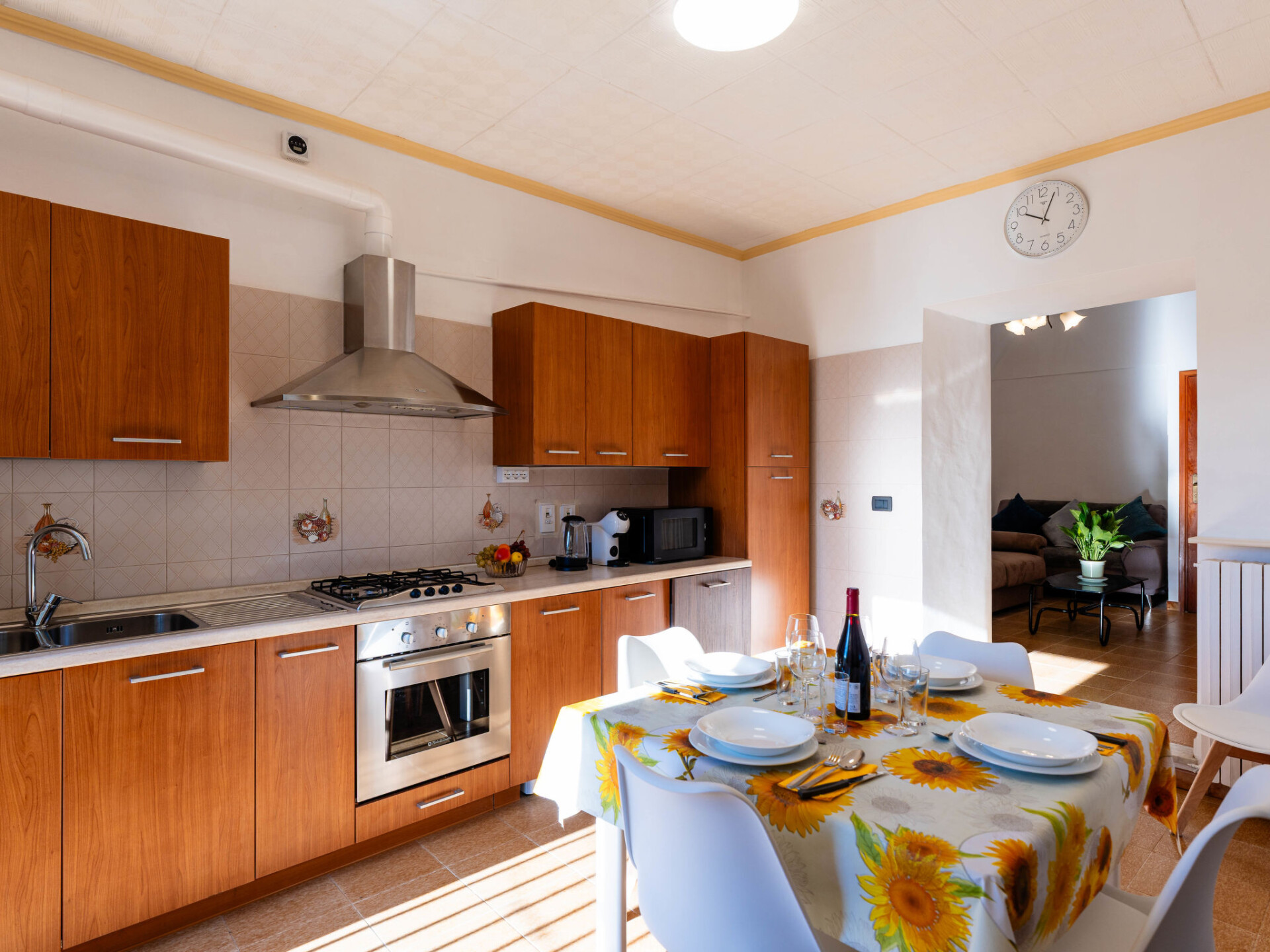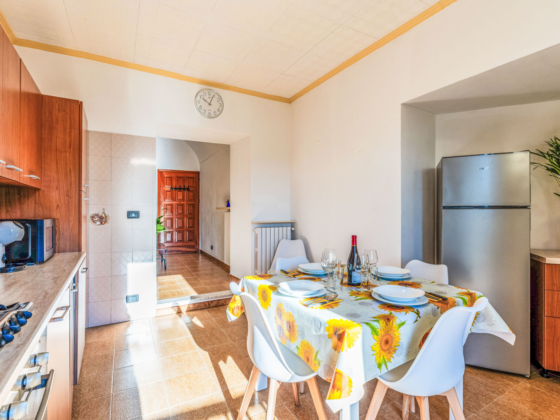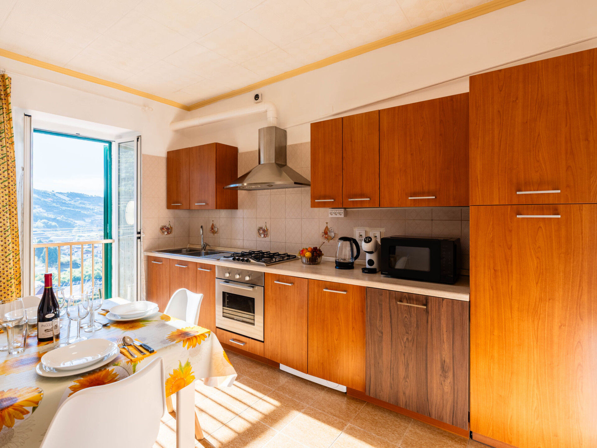 "Il Girasole", huis in een rij 3-kamers 70 m2. Eenvoudig en doelmatig ingericht: woon-/eetkamer met 1 divanbed (160 cm, lengte 200 cm). Kookhoek (oven, afwasmachine, 4 kookpitten (vlammen), broodrooster, waterkoker, magnetron, elektrische koffiemachine). Bovenverdieping: (wenteltrap) doorgangskamer met 1 uitschuifbaar bed (2 x 80 cm, lengte 200 cm). 1 2-pers. kamer (160 cm, lengte 200 cm). Bad/bidet/WC. Gas-verwarming. Verwarming alleen beschikbaar van 01.11. tot 15.04. Mooi uitzicht op de plaats. Ter beschikking: wasmachine, kinderbed tot 2 jaar, haardroger. Internet (WiFi, gratis). Parkeerplaats bij het huis. Rookvrij huis. Rookmelders, brandblusser. IT008063C24VX4C44A