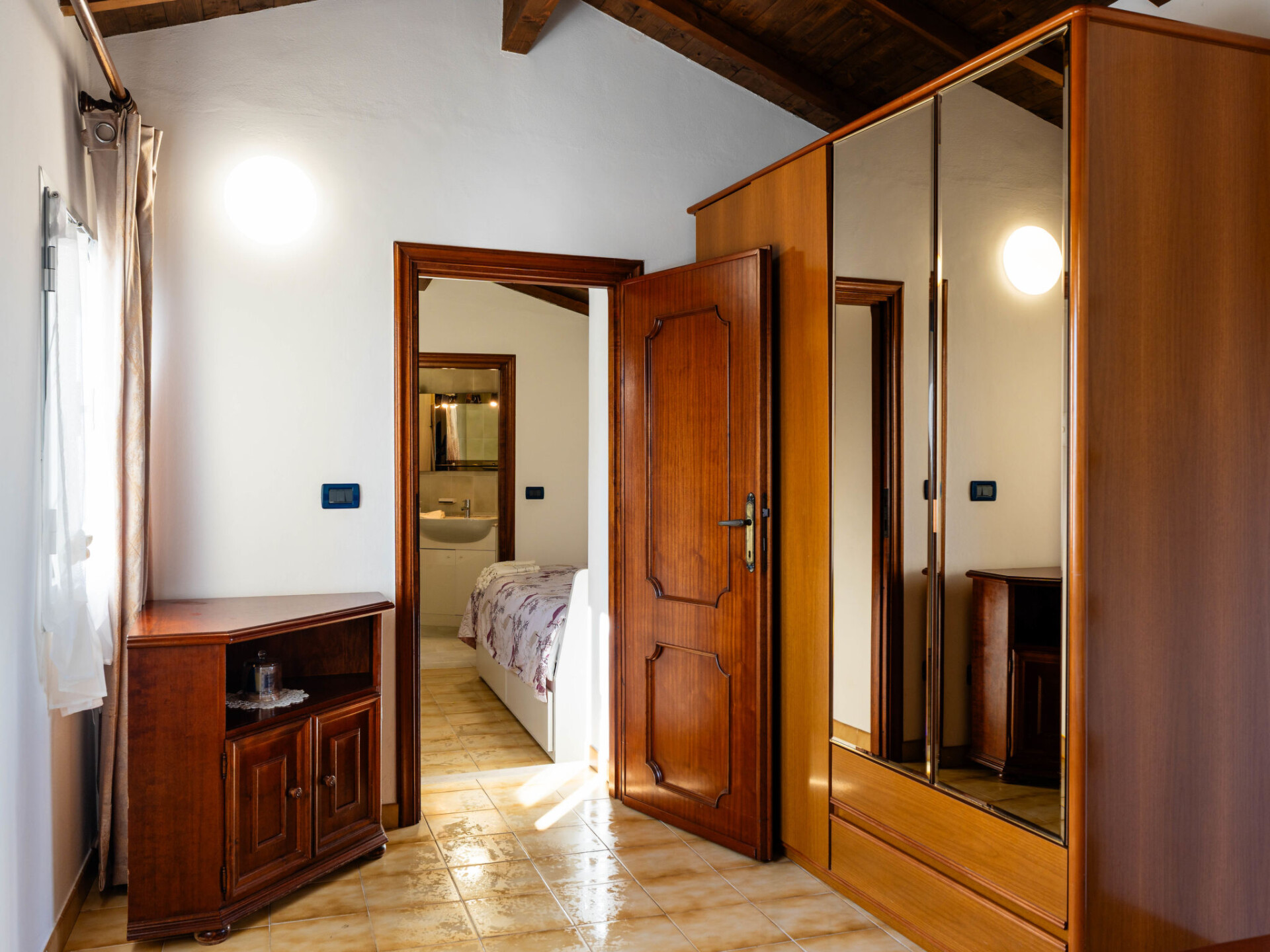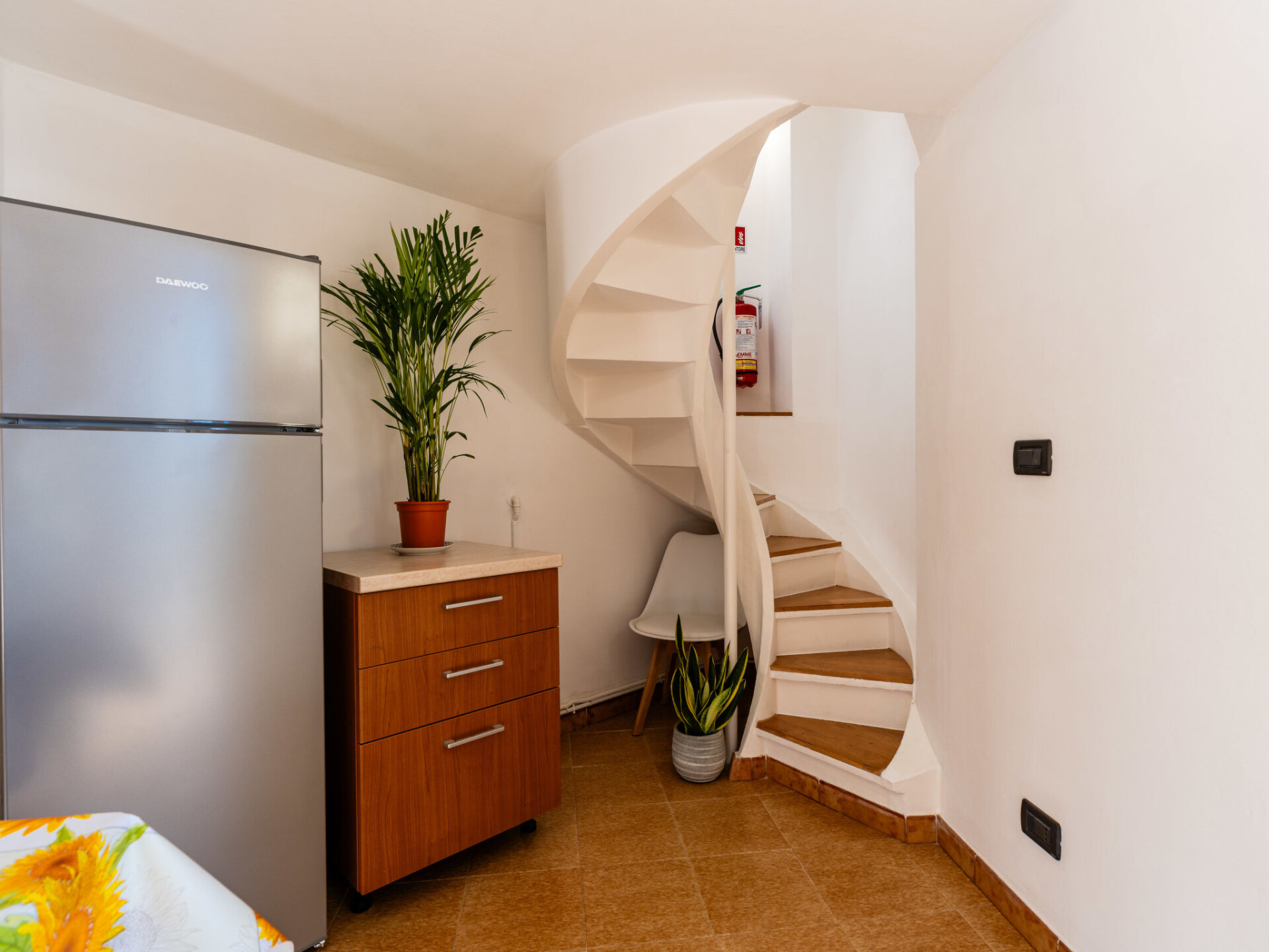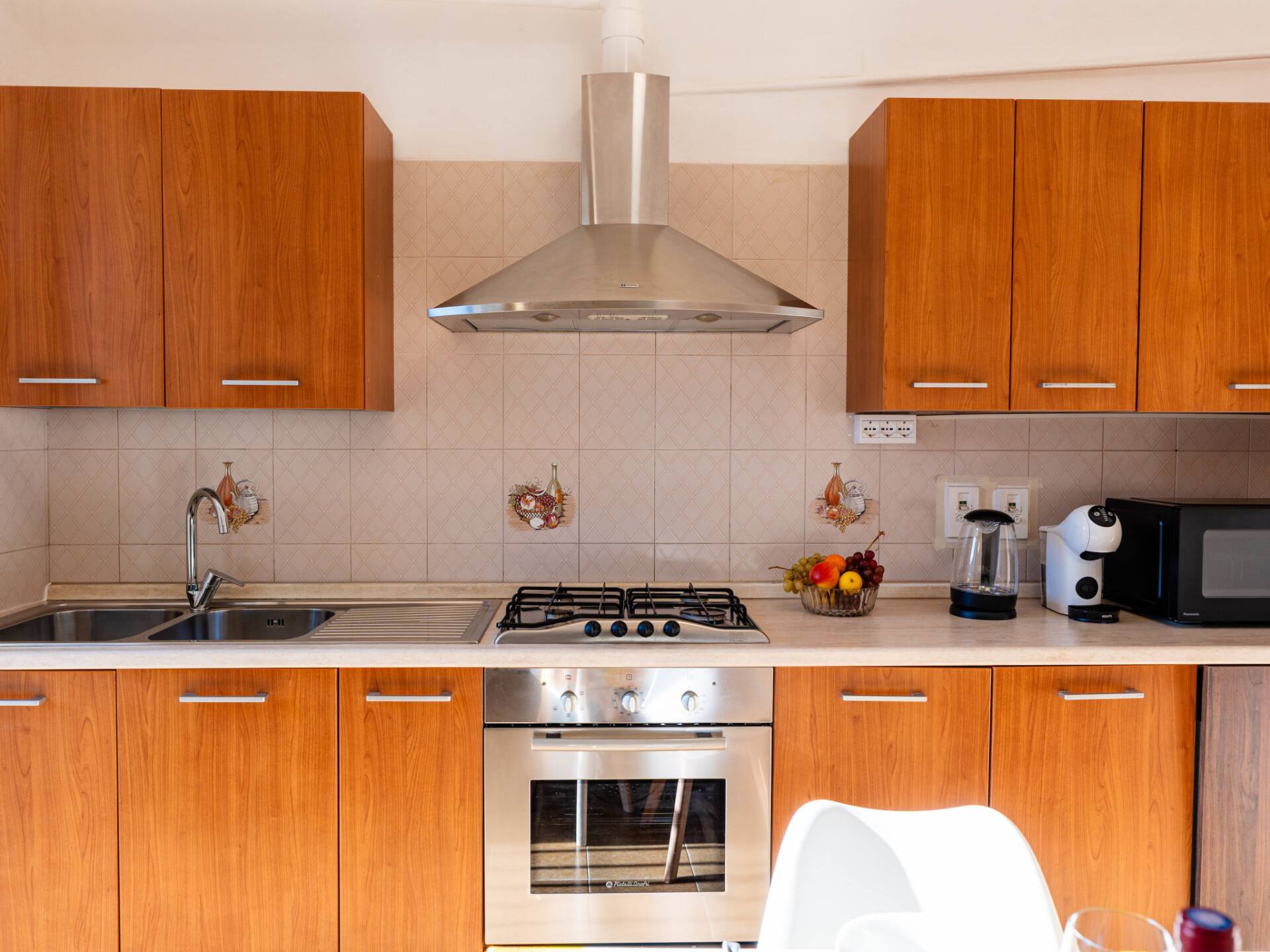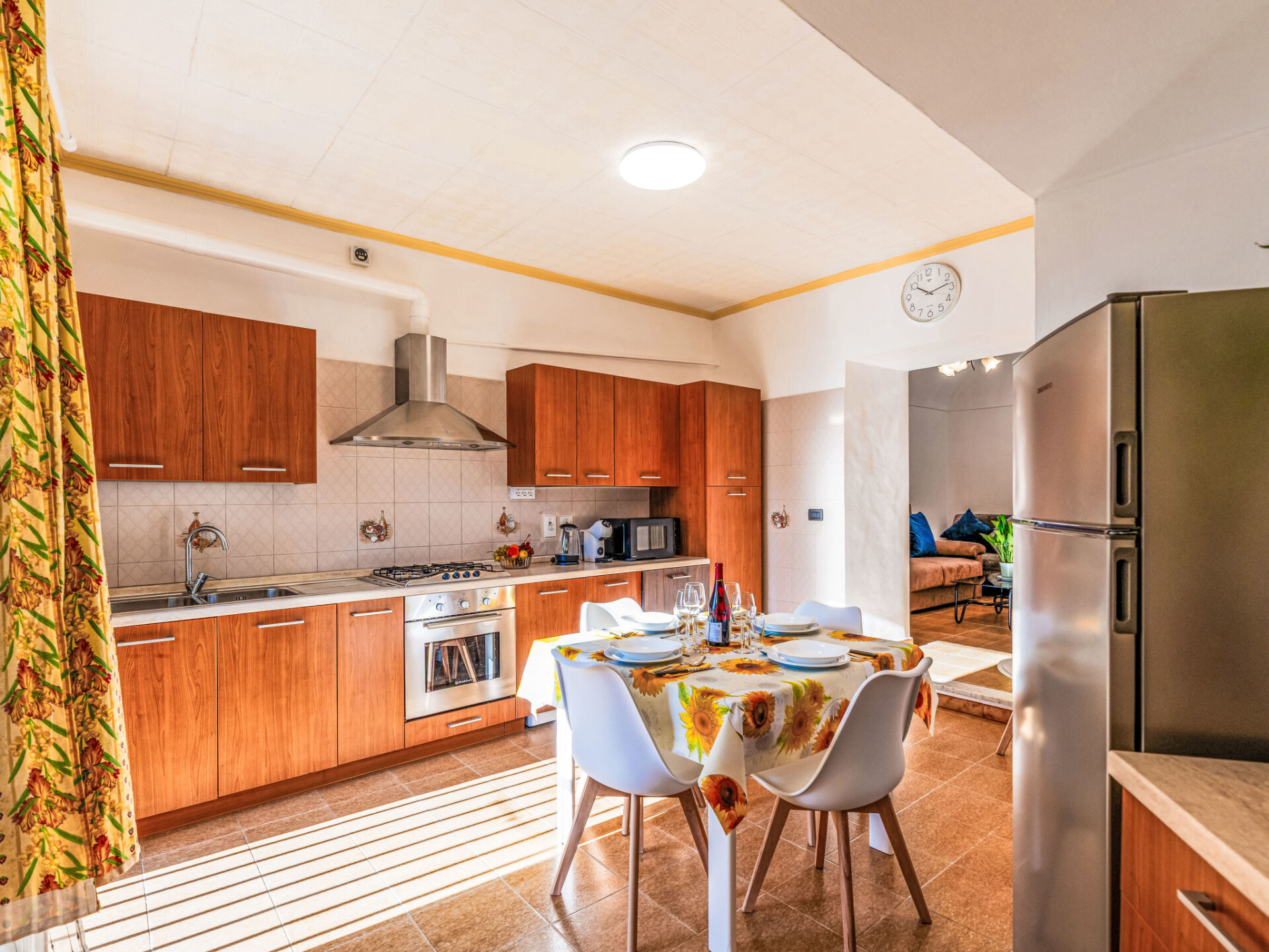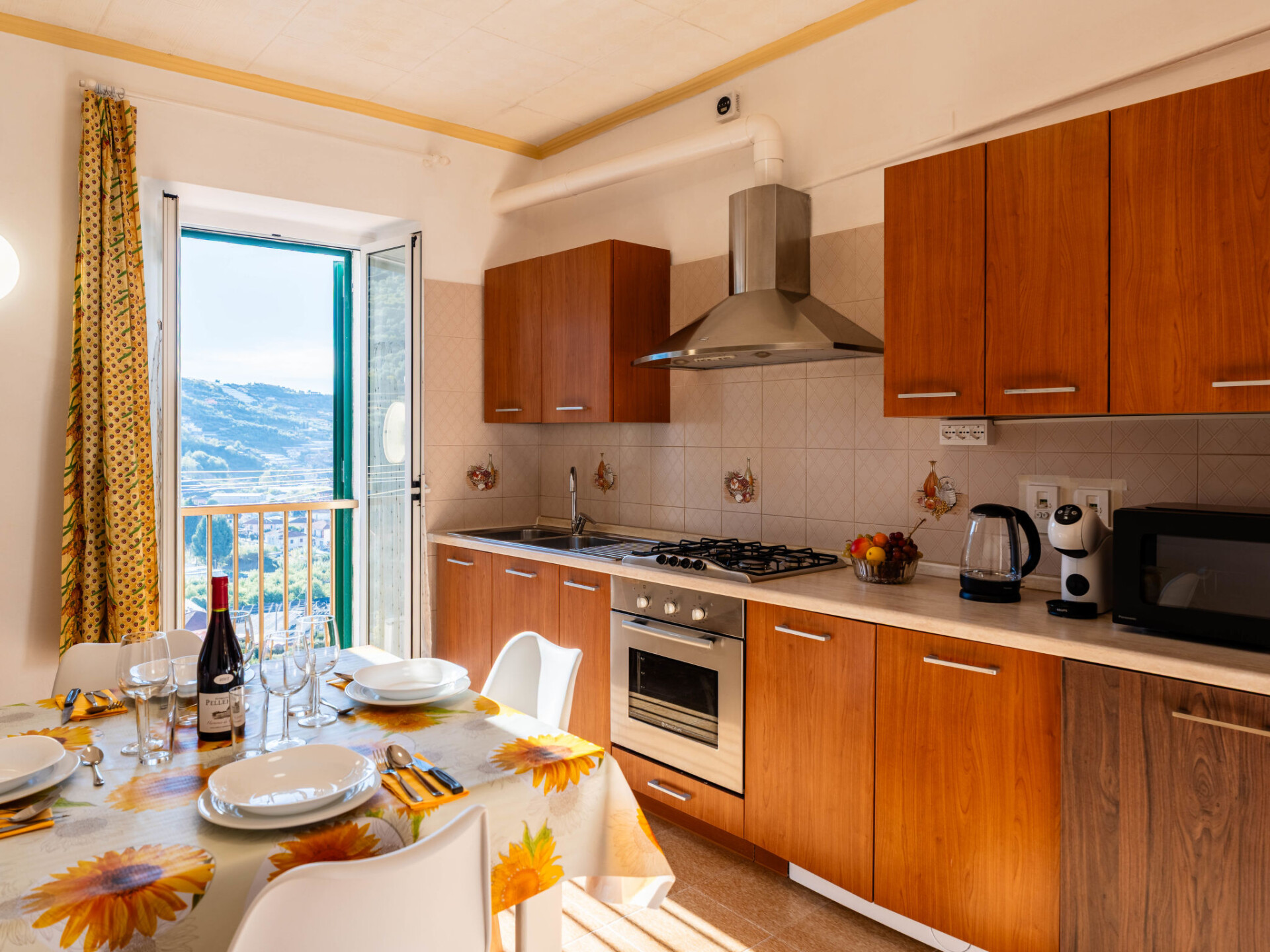 "Il Girasole", huis in een rij 3-kamers 70 m2. Eenvoudig en doelmatig ingericht: woon-/eetkamer met 1 divanbed (160 cm, lengte 200 cm). Kookhoek (oven, afwasmachine, 4 kookpitten (vlammen), broodrooster, waterkoker, magnetron, elektrische koffiemachine). Bovenverdieping: (wenteltrap) doorgangskamer met 1 uitschuifbaar bed (2 x 80 cm, lengte 200 cm). 1 2-pers. kamer (160 cm, lengte 200 cm). Bad/bidet/WC. Gas-verwarming. Verwarming alleen beschikbaar van 01.11. tot 15.04. Mooi uitzicht op de plaats. Ter beschikking: wasmachine, kinderbed tot 2 jaar, haardroger. Internet (WiFi, gratis). Parkeerplaats bij het huis. Rookvrij huis. Rookmelders, brandblusser. IT008063C24VX4C44A