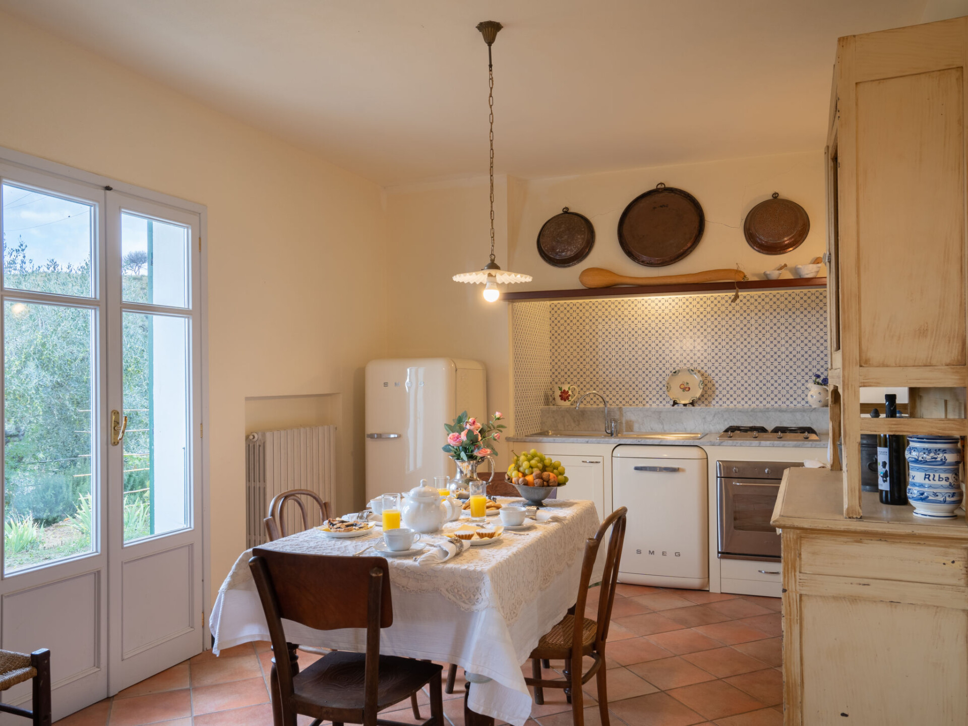 Kleine, gezellige cottage "Il Terebinto", omgeven door bomen en velden. In de wijk Panegai, 4.3 km van het centrum van Imperia Oneglia, 7.5 km van het centrum van Porto Maurizio, 31 km van het centrum van Sanremo, geïsoleerde, verhoogde ligging tegen een helling, 4.5 km van zee, te midden van groen. Voor alleengebruik: wild terrein 3 ha, tuin op verschillende niveaus met planten en bomen. 900 m lange rommelige, steile toegangsweg. Parkeerplaats (voor 2 auto's) op het terrein. Supermarkt 3.2 km, bushalte 3.2 km, treinstation "Imperia" 3.3 km, zandstrand "Borgo Marina" 6.5 km, rotsstrand 4.5 km. Jachthaven 5.5 km.