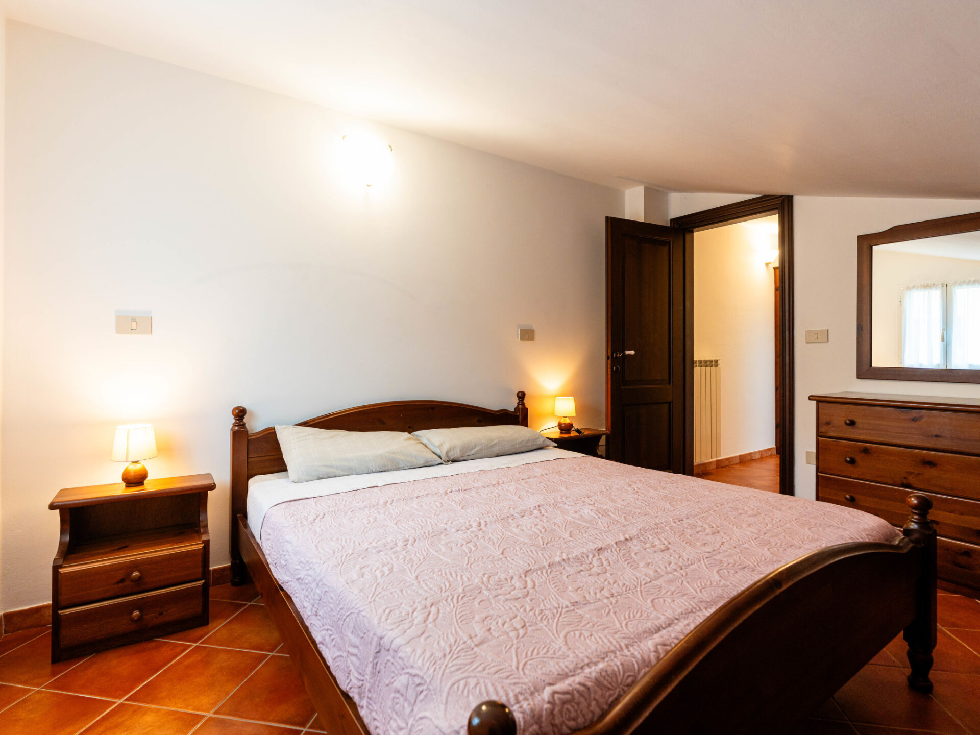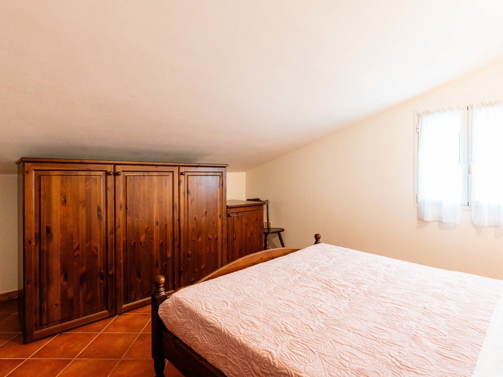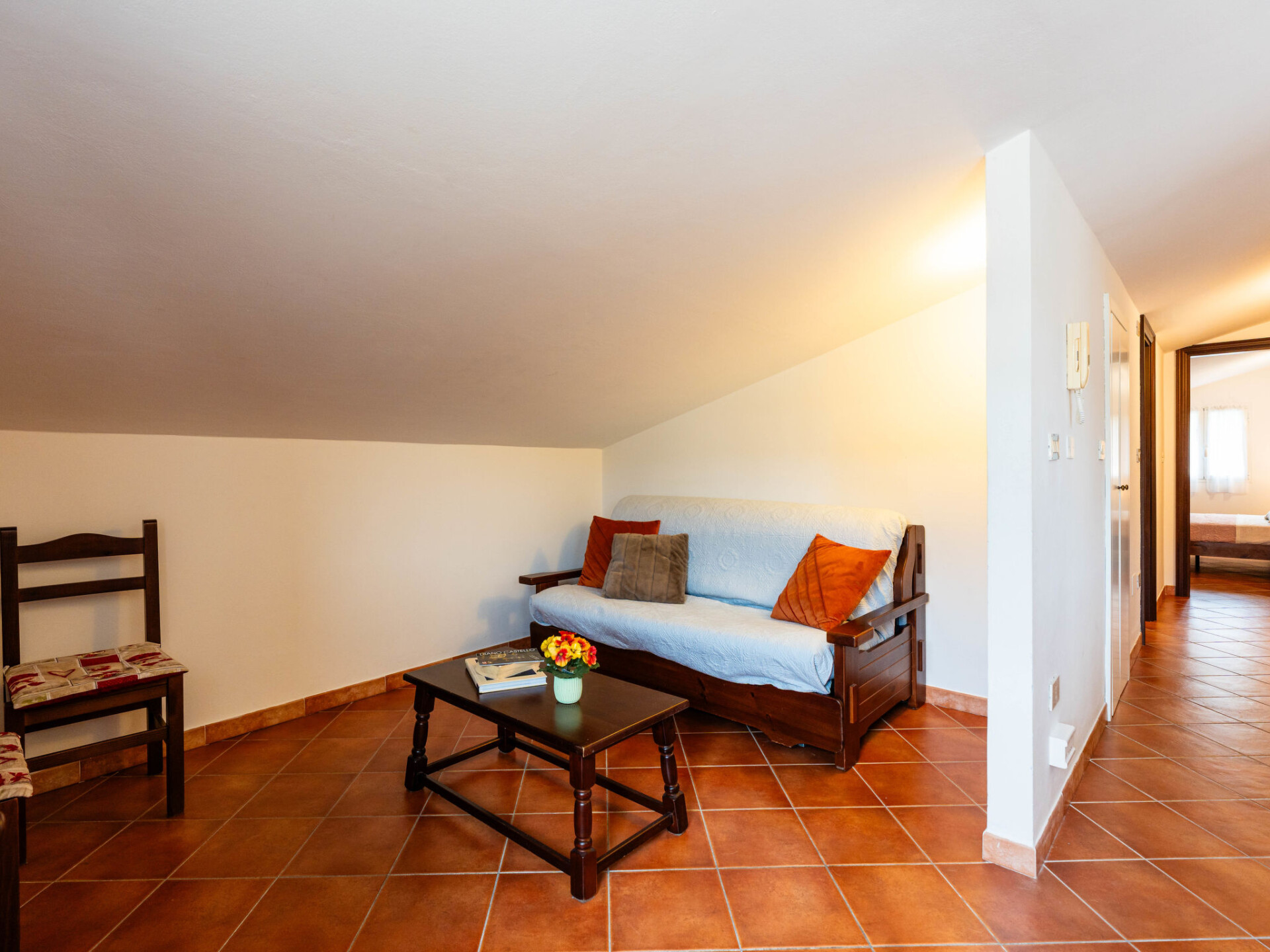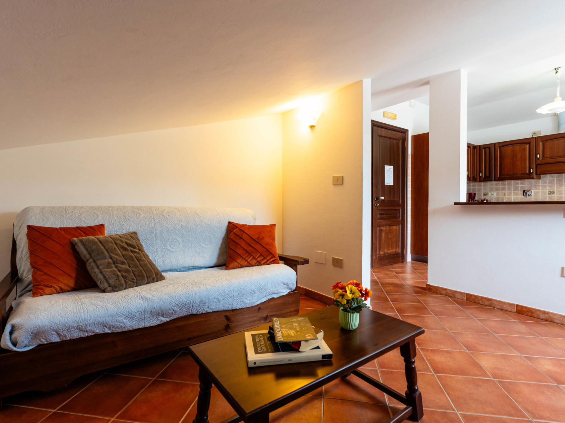 "Il Terrazzo E", appartement 2-kamers 50 m2 op de 2e verdieping. Rustiek ingericht: woon-/slaapkamer met afgeschuinde daken met 1 2-pers divanbed en Sat-TV. 1 kamer met 1 2-pers bed (160 cm). Open keuken (oven, 4 kookpitten (vlammen), broodrooster, waterkoker, diepvriezer, elektrische koffiemachine) met eettafel. Uitgang naar het terras. Bad/WC. Gas-verwarming. Terras 20 m2. Terrasmeubelen. Ter beschikking: wasmachine, kinderstoel, kinderbed. Internet (WiFi, gratis). Maximaal 1 huisdier/hond toegestaan. IT008026B53FWFJN55