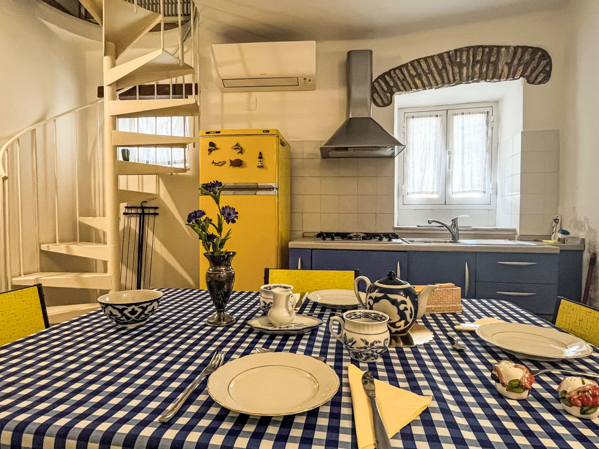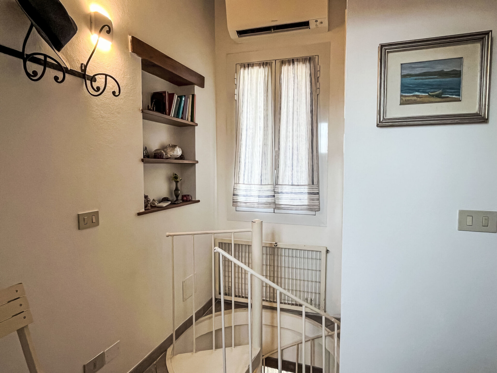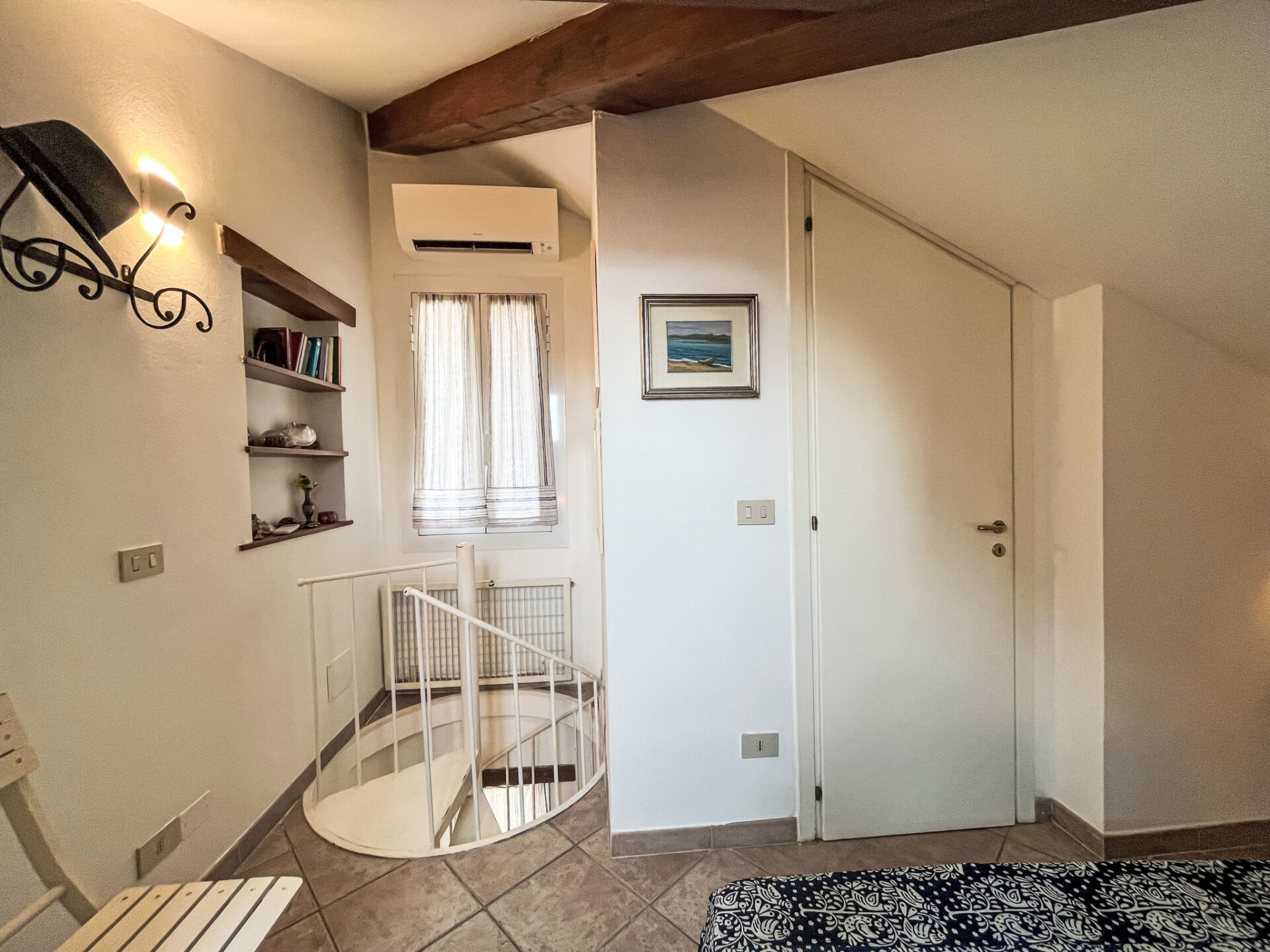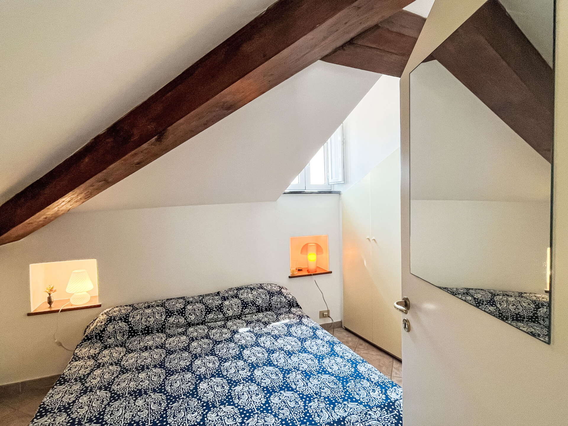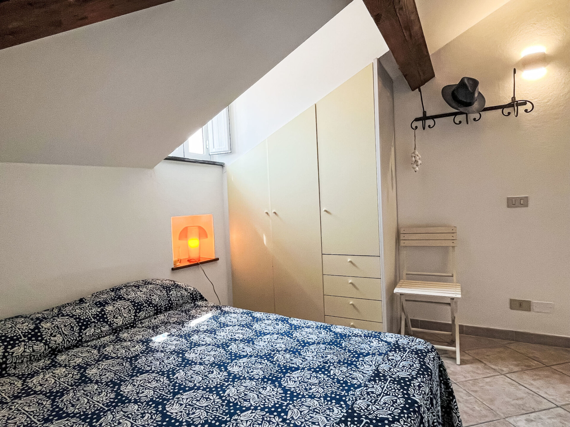 "Il Tetragonuro", appartement 2-kamers 30 m2 op 2 verdiepingen op de 1e verdieping. Licht, gedeeltelijk afgeschuinde daken, volledig gerenoveerd, mooi en gezellig ingericht: woonkeuken (4 kookpitten (vlammen), broodrooster, waterkoker, diepvriezer, elektrische koffiemachine) met eettafel. Bovenverdieping: (wenteltrap), 1 kamer met afgeschuinde daken met dakraam met 1 2-pers bed (1 x 160 cm, lengte 200 cm). Zitbad/bidet/WC. Air-conditioning, heteluchtverwarming. Verwarming alleen beschikbaar van 01.11. tot 01.04. Zijdelings uitzicht op de plaats. Ter beschikking: wasmachine. 1 klein huisdier/hond toegestaan. Geen lift. IT008031C2JLAYXJNF