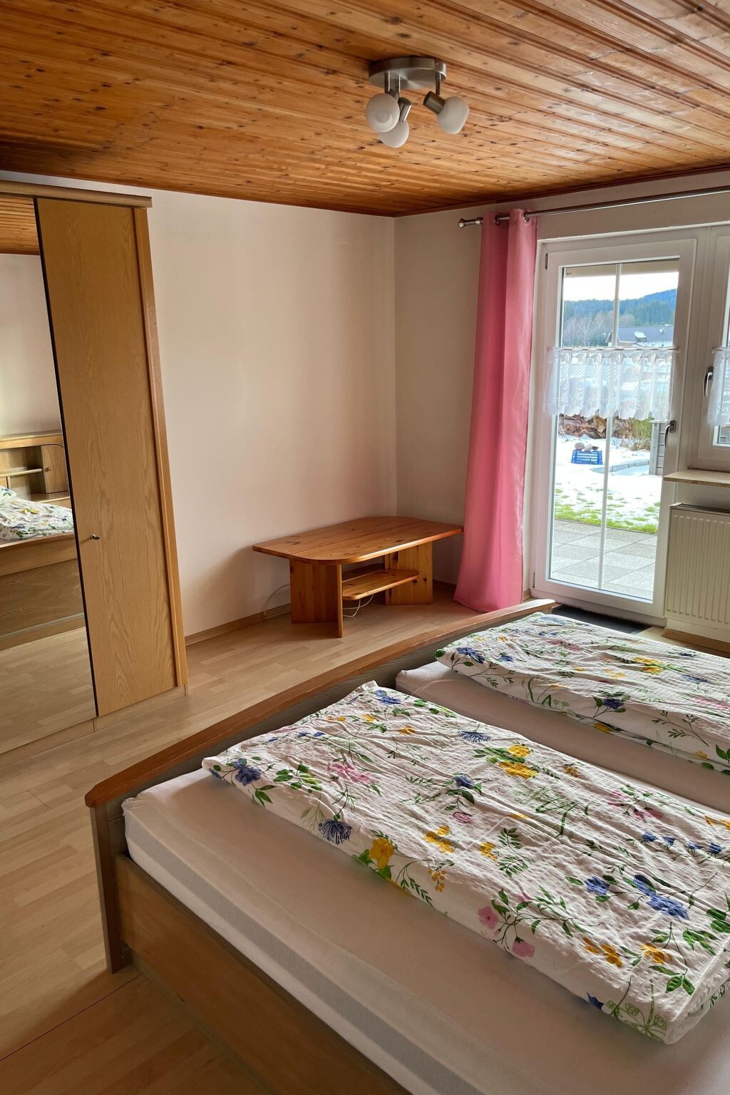 Our holiday flat is situated in a central and quiet location close to the village with a wonderful view of the Haidl viewing tower and the natural swimming lake. A natural swimming lake, hiking and cycling trails as well as cross-country ski trails can be reached in approx. 5 minutes. Holiday flat 80 m² for 4-5 people Fully equipped kitchen with dining area Living room Bedroom Room with 2 single beds (extra bed for child or baby) Shower and WC Washing machine Hallway Sat TV and radio Terrace Lawn and playground and barbecue facilities Separate entrance and garage on request Children up to 5 years free WiFiShort description 1Number of kitchens : 1Other rooms : HallwayLiving room 1Other living room equipment : Sat TVBedroom 1Other bedroom equipment : (extra bed for child or baby)SurroundingsSports facilities in the neighbourhood : football pitch, mountain biking, cycling toursSurroundings 1Excursion possibilities : -Farm museum Finsterau -Dreisessel -various glassworks -Domstadt PassauLocation description : Haidmühle is a recognised health resort in the border triangle of the Czech Republic, Austria and GermanyKneipp facilities in the neighbourhood.Garden and outdoor facilitiesGarden equipment : Barbecue