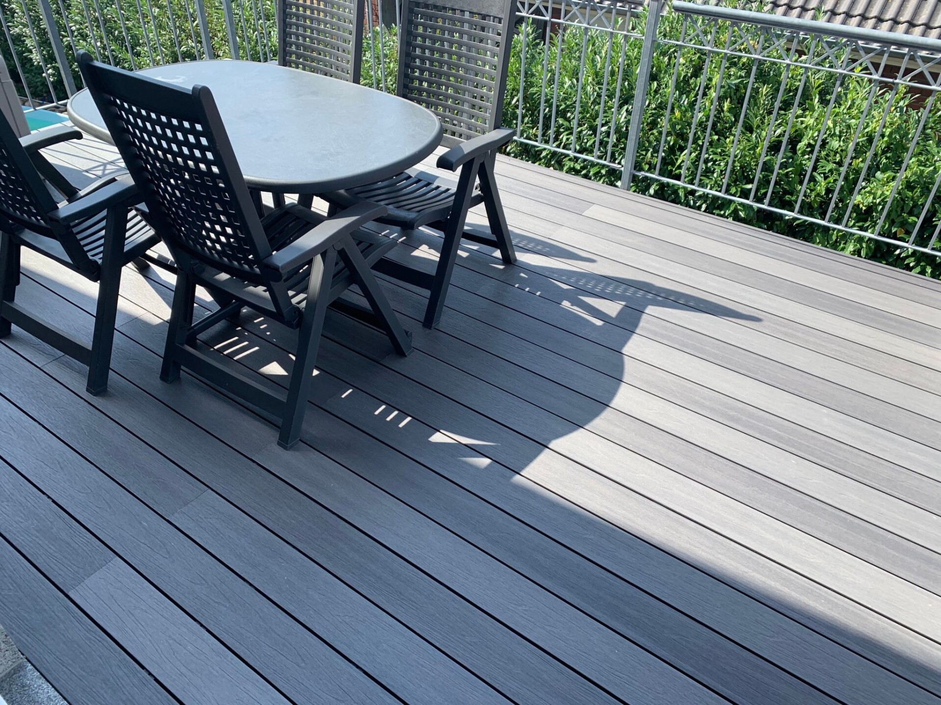 Op het balkon staat tuinmeubilair met kussens en een parasol ter beschikking.
