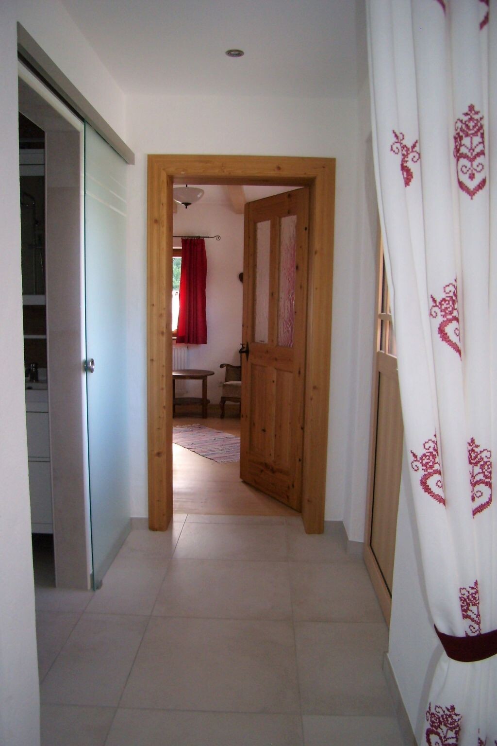Secluded location, landlord lives in the main building.The small village of St. Koloman is 2 km away and lies approx. 800 m above sea level.Large outdoor area, secluded location, mountain view! Large terrace with garden and 2 parking spaces for your exclusive use. The terrace is equipped with garden furniture, sun loungers, parasol and seating for two to three people as required.Private access to the holiday flat (32sqm) on the first floor.The bedroom with double bed (1.60m x 2m) is heated with an infrared radiator.The bathroom with shower and WC, the hallway and the eat-in kitchen are equipped with underfloor heating.equipped with underfloor heating.There is also a wood-burning stove in the eat-in kitchen. A fridge with freezer compartment, a 2-burner hob and a dishwasher are available. The fold-out couch can be used comfortably for a third person. A TV, radio and free WLAN are available.Rural scattered settlement in a picturesque landscape with many beautiful excursion destinations, hiking trails, farmed alpine pastures, friendly people, an ideal place for your relaxation.Favourite excursion destinations: Salzburg, Berchtesgaden with NT Park Königsee, Fuschlsee, Eisriesenwelt and Werfen Castle, Hallein, Hallstadt, the Untersberg railway in Grödig, Lammer and Almbachklamm gorges, Römerbrücke bridge with Taugl torrent, nearby bathing lakes, Seewaldsee nature reserve...Good shopping facilities for groceries in Bad Vigaun, 6 km away. There is also a beautiful thermal bath there. The nearest bathing lake in Kuchl is approx. 8 km away.In Hallein, 10 km away, there are many shopping facilities and restaurants. The nearest restaurant with an impressive panoramic view of the mountains and good cuisine is 2 km away.Energy costs are charged at the current price according to consumption for the duration of your stay.For dog owners: only small dogs are allowed. Hunting or hunting dogs and fighting dogs are not allowed.For the duration of your stay, you can use your guest card (Tennengau Card) to travel daily on buses and local trains to Salzburg andvarious destinations in the surrounding area FREE OF CHARGE.In this over 300 year old, completely renovated farmhouse in a rural setting with lots of nature, you can still enjoy a piece of original Austria.Rented since 2020, everything new, large sun terrace and outdoor area, 2 parking spaces, small garden with lawn are at your sole disposal.Enjoy the beautiful landscape with a view of the mountains, flower meadows and fragrant fresh hay.On request we are happy to open the house chapel for you for a quiet retreat.This holiday flat has been biologically tested and rated as good to very good. It is also suitable for e-sensitives, as WLAN can be switched off!