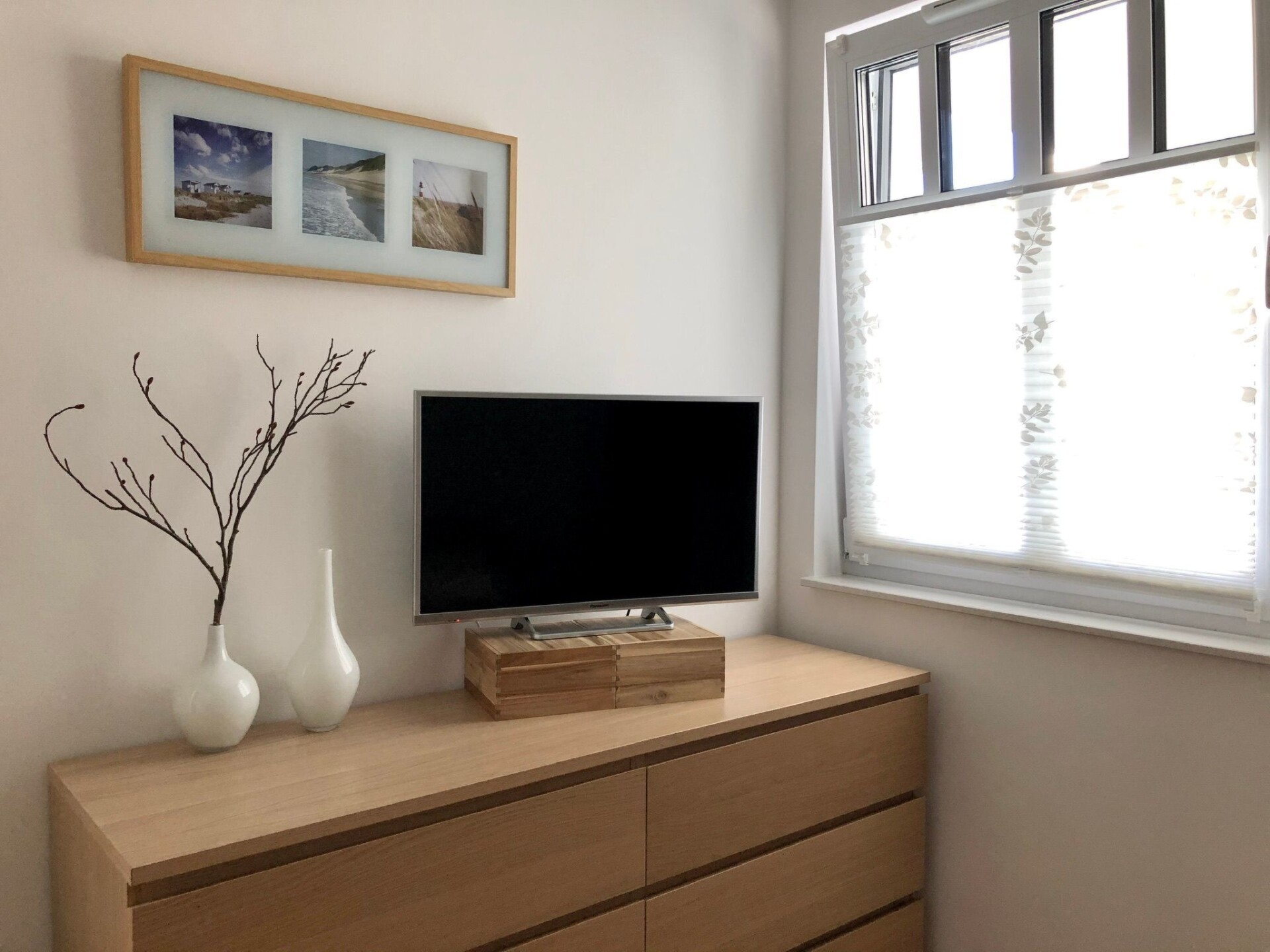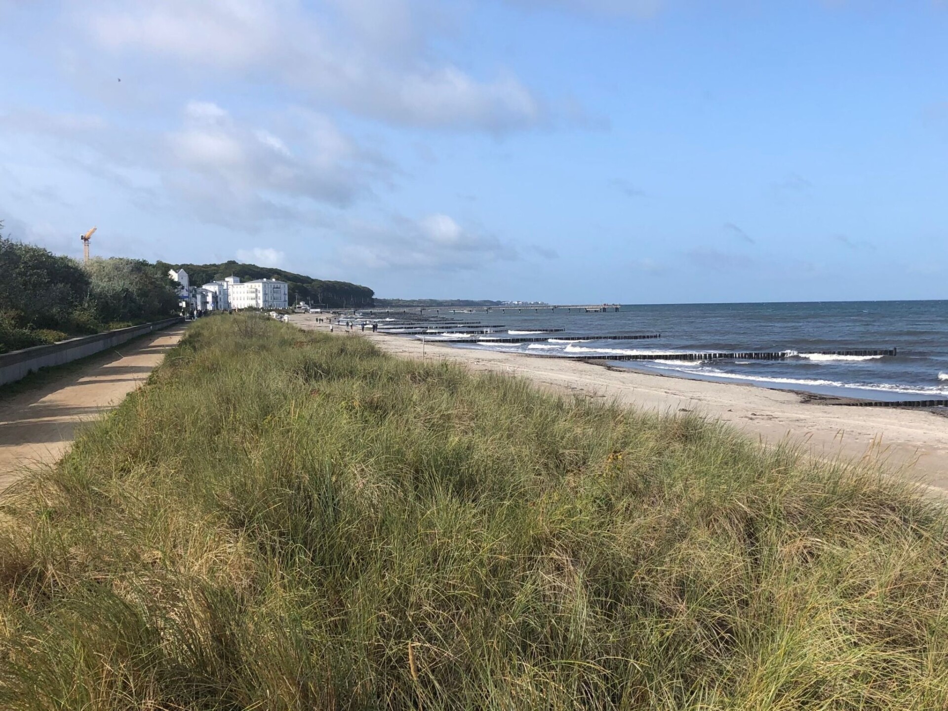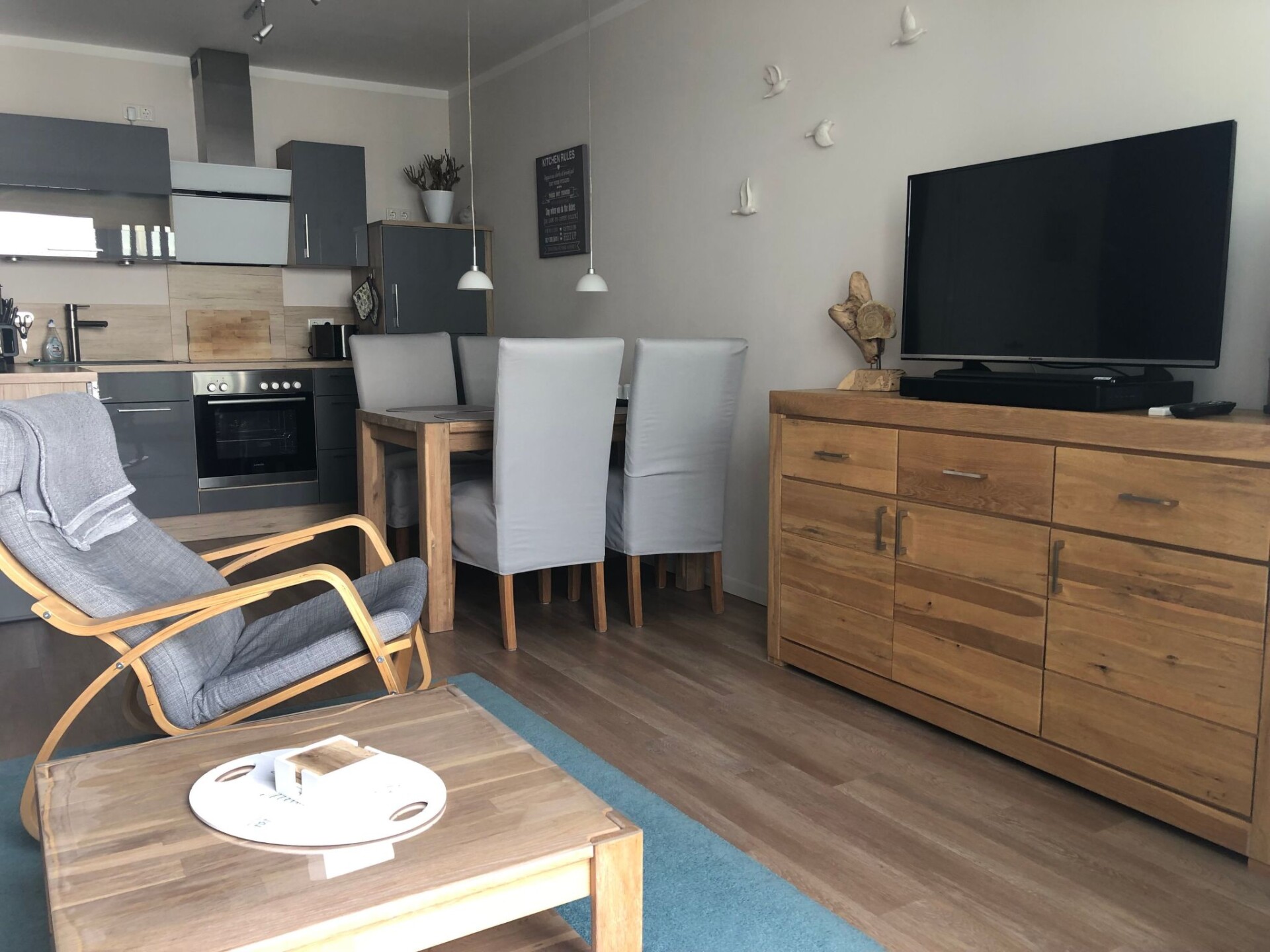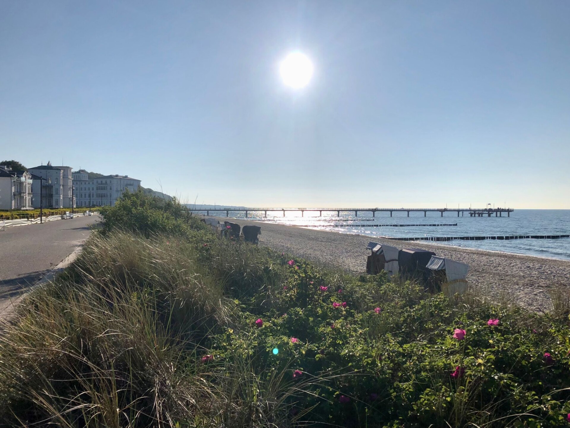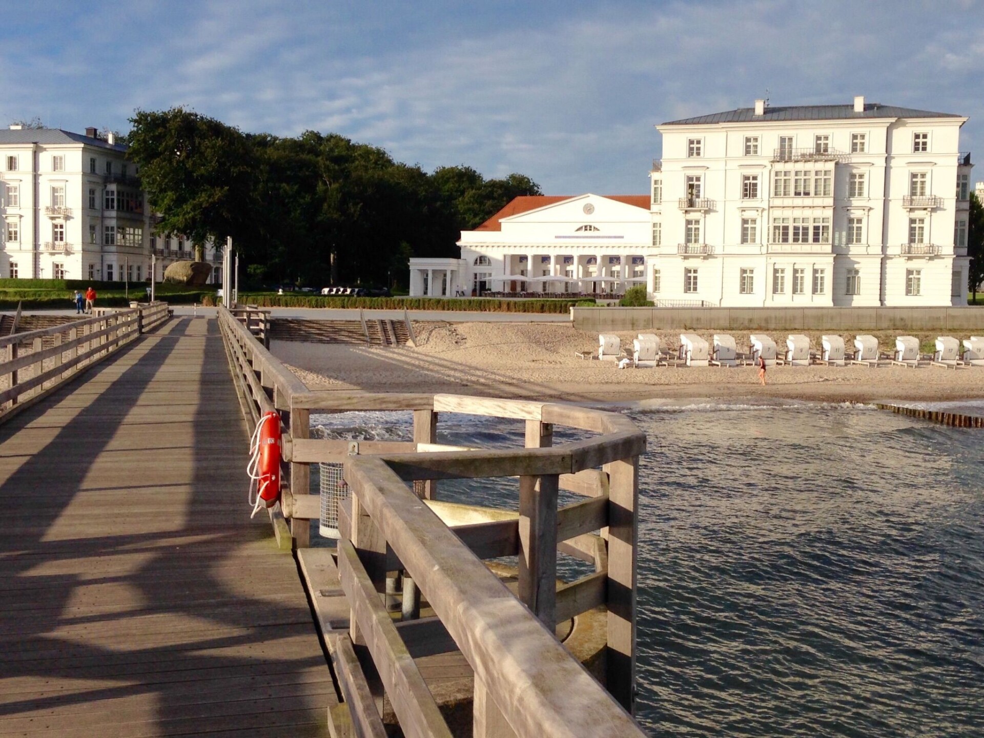 The holiday flat is located on the first floor (with lift) of a complex newly built in 2016 directly on the gently sloping sandy beach, just 50 m behind the beach promenade and only a few minutes' walk from the pier.Outside, guests have access to a balcony with garden furniture, where they can enjoy the sun in the afternoon until sunset in the sea air. Guests can park their car in the underground car park free of charge.The approx. 48 m² luxury holiday flat is designed for three people and consists of a living room with open-plan kitchen, bedroom and bathroom with shower, washbasin and WC. It was newly built in 2016 and is tastefully furnished to a high standard in warm and discreet colours. Two people can sleep on the 180 x 200 cm double bed in the bedroom with a large wardrobe, and another person can sleep on a 160 x 200 cm sofa bed in the living room. The open-plan kitchen is fully equipped. In the living room, guests will find a television with satellite TV and home cinema system for evening entertainment. There is underfloor heating in all rooms and wireless WLAN is also available.The flat is ideal for a beach holiday in the dignified Baltic seaside resort of Heiligendamm. It is just a few minutes' walk from the pier and the beach is also only 50 metres away. In the nearby village (approx. 750 m) you can hire bicycles and beach chairs, and there are also shopping facilities.There is a bistro in the house itself, where you can also book breakfast.
