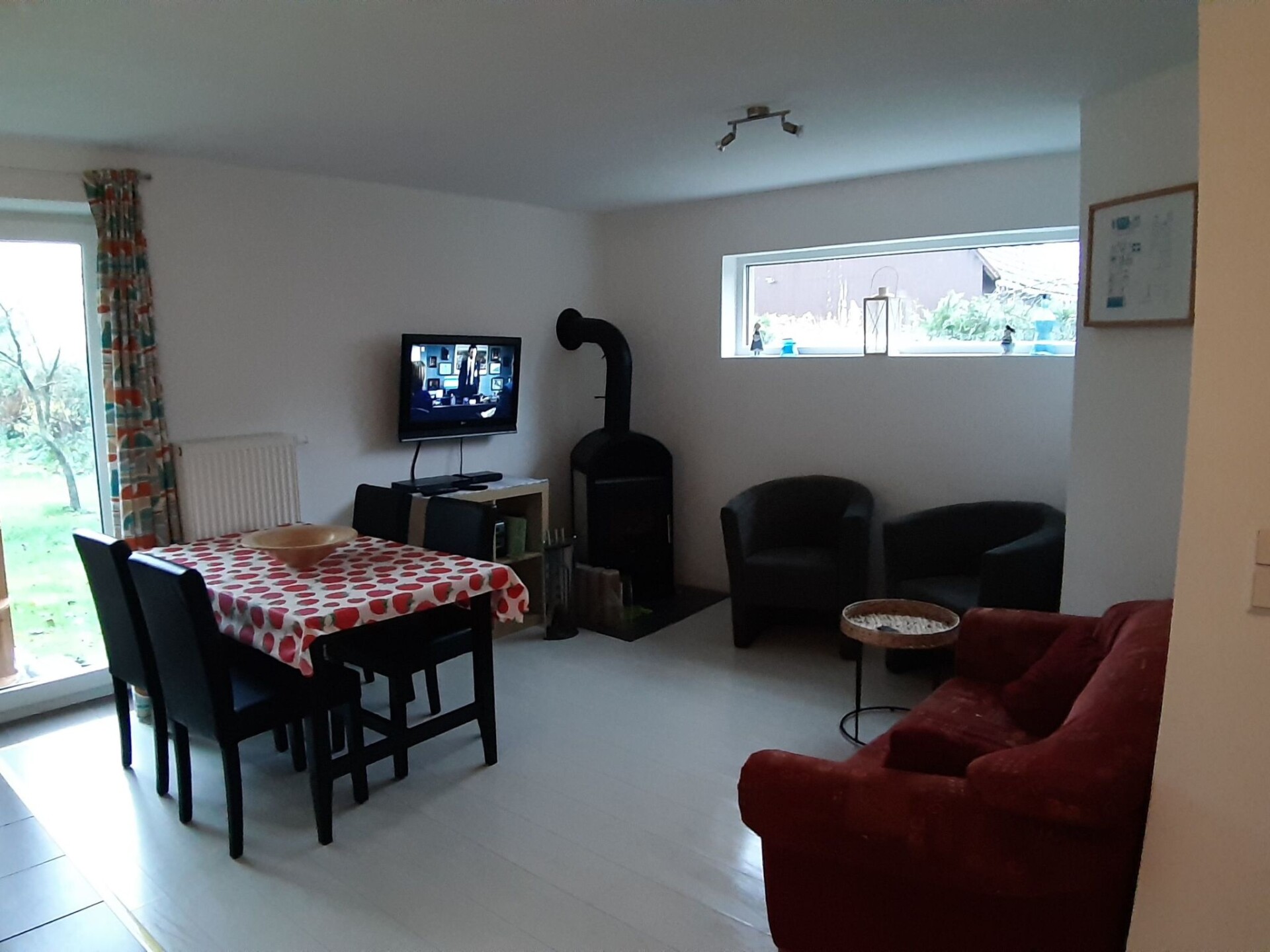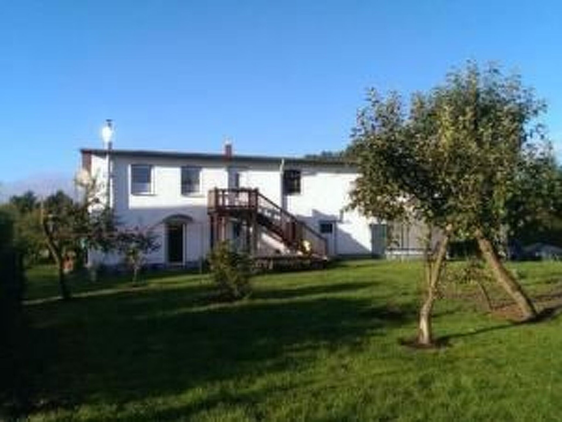 Ferienhaus Michel in the district of Vorpommern-Rügen in the tranquil village of Vorland, offers its guests a 65 square metre flat on the ground floor with three rooms for two adults and two children (up to 14 years). The flat has two bedrooms, one with a double bed (1.60 x 2.00 metres) and one with two single beds (0.90 x 2.00 metres). The eat-in kitchen with a view of the orchard is fully equipped. There is a cooker/oven with extractor bonnet, a dishwasher, microwave, a large fridge, as well as plenty of crockery and pots, toaster, kettle, coffee machine, blender. In the living area there is a 32" LCD TV, DVD player and a stereo system as well as a wood-burning stove, which provides cosiness and pleasant warmth on cold days. There is also a washing machine in the shower room with washbasin and a 1.20 x 0.80 metre shower tray and toilet. Garden furniture and a large trampoline await you in the large orchard.The house is located in the triangle between Stralsund and Greifswald (35 km each) and 40 km from the Darß or the island of Rügen.The immediate proximity to the Baltic Sea coast, the beautiful landscape with extensive forests and cycle paths offer those seeking relaxation plenty of interesting locations, pleasant fresh air and the opportunity to switch off completely.We would be delighted to welcome you as our guests.Short descriptionOther : Non smoking houseShort description 1Number of kitchens : 1Kitchen 1Other kitchen equipment : This is an eat-in kitchen.Garden and outdoor facilitiesLeisure facilities at the property : Outdoor pool for communal use, Swimming poolGarden equipment : Barbecue, Playground equipment