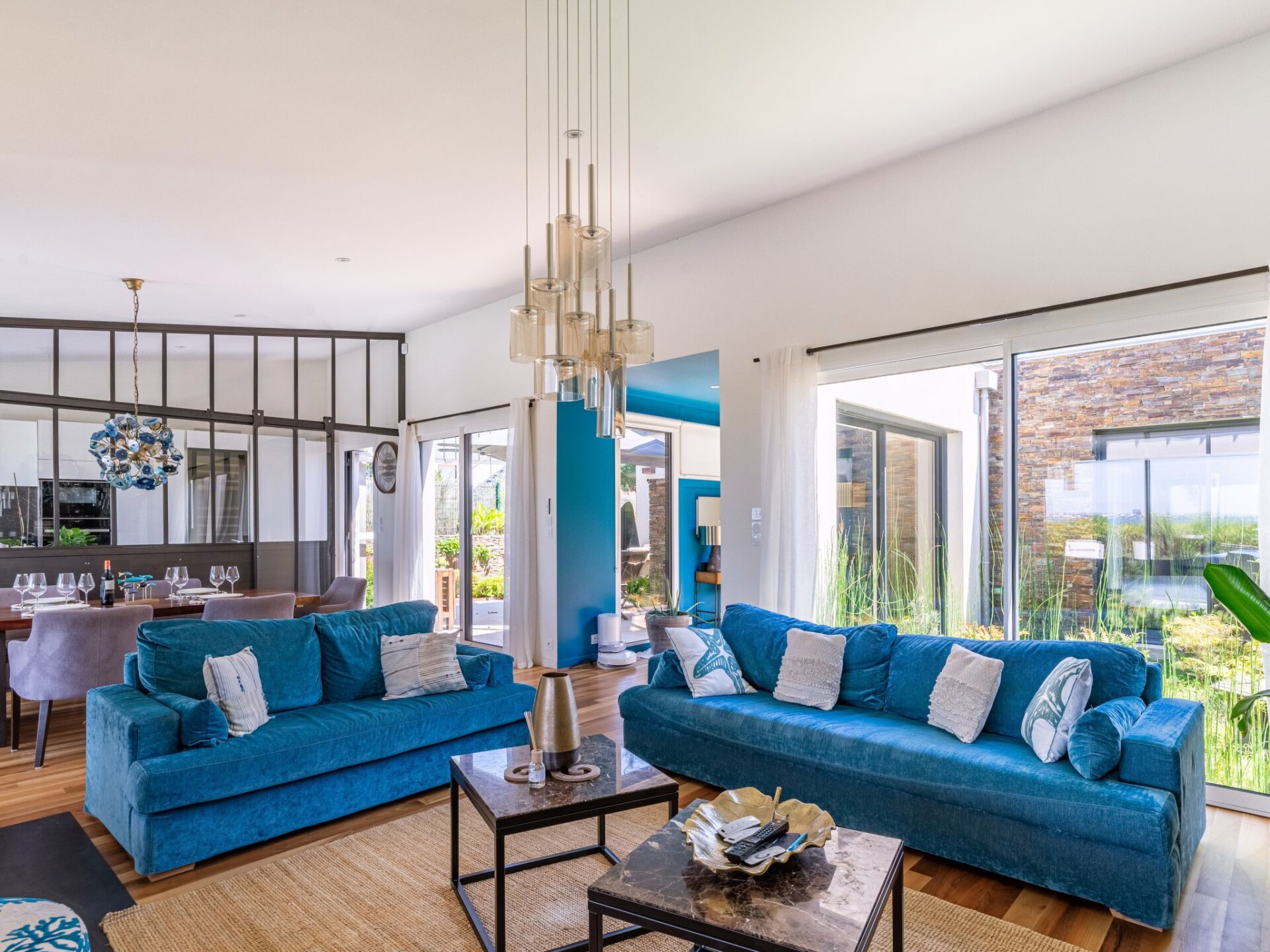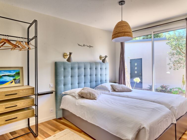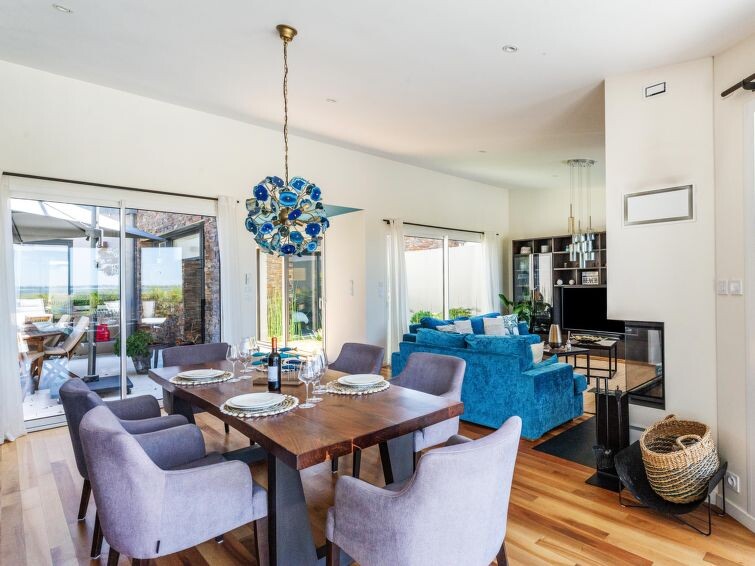 "Indigo-Vue Mer et Piscine chauffée", huis in een rij 4-kamers 136 m2. Comfortabel ingericht: woon-/eetkamer met open haard, eettafel, Sat-TV en internationale TV-zenders. Uitgang naar het terras, naar het zwembad. 1 kamer met 1 2-pers bed (160 cm, lengte 200 cm), bad/douche en dubbele wastafels. Uitgang naar het terras. 1 kamer met 1 2-pers bed (140 cm, lengte 200 cm), bad. Uitgang naar het terras. 1 kamer met 2 bedden (80 cm, lengte 200 cm), douche. Uitgang naar de tuin. Keuken (oven, afwasmachine, 3 kookpitten (vlammen), magnetron, diepvriezer, elektrische koffiemachine) met kleine eettafel. Uitgang naar het terras. 2 aparte WC's. Gas-verwarming, vloerverwarming. Terras. Terrasmeubelen, barbecue (verrijdbaar), ligstoelen (4). Uitzicht op zee. Ter beschikking: wasmachine, droger, kinderstoel, kinderbed. Internet (Internet (WiFi), gratis). Rookvrij huis. Rookmelders.