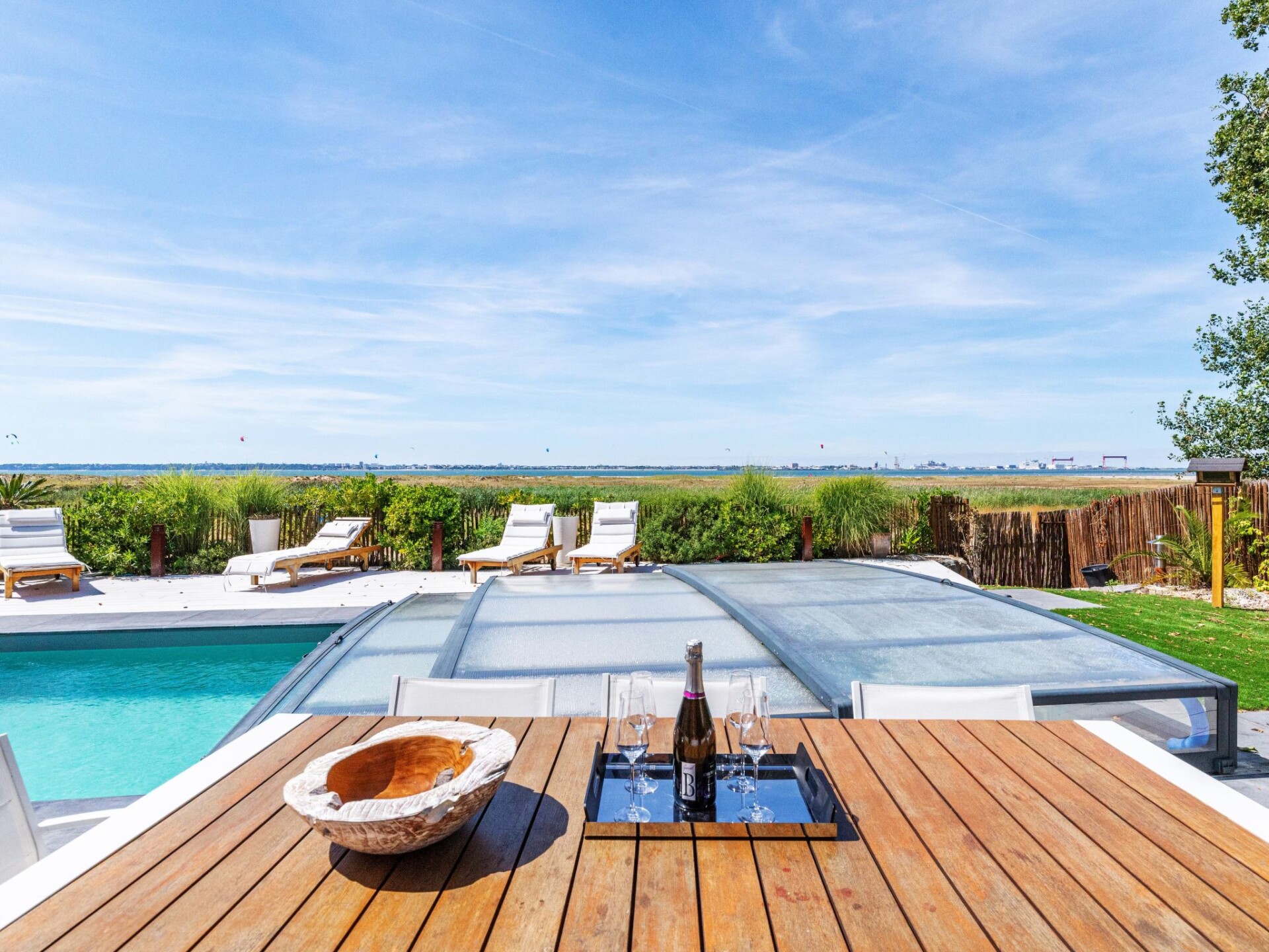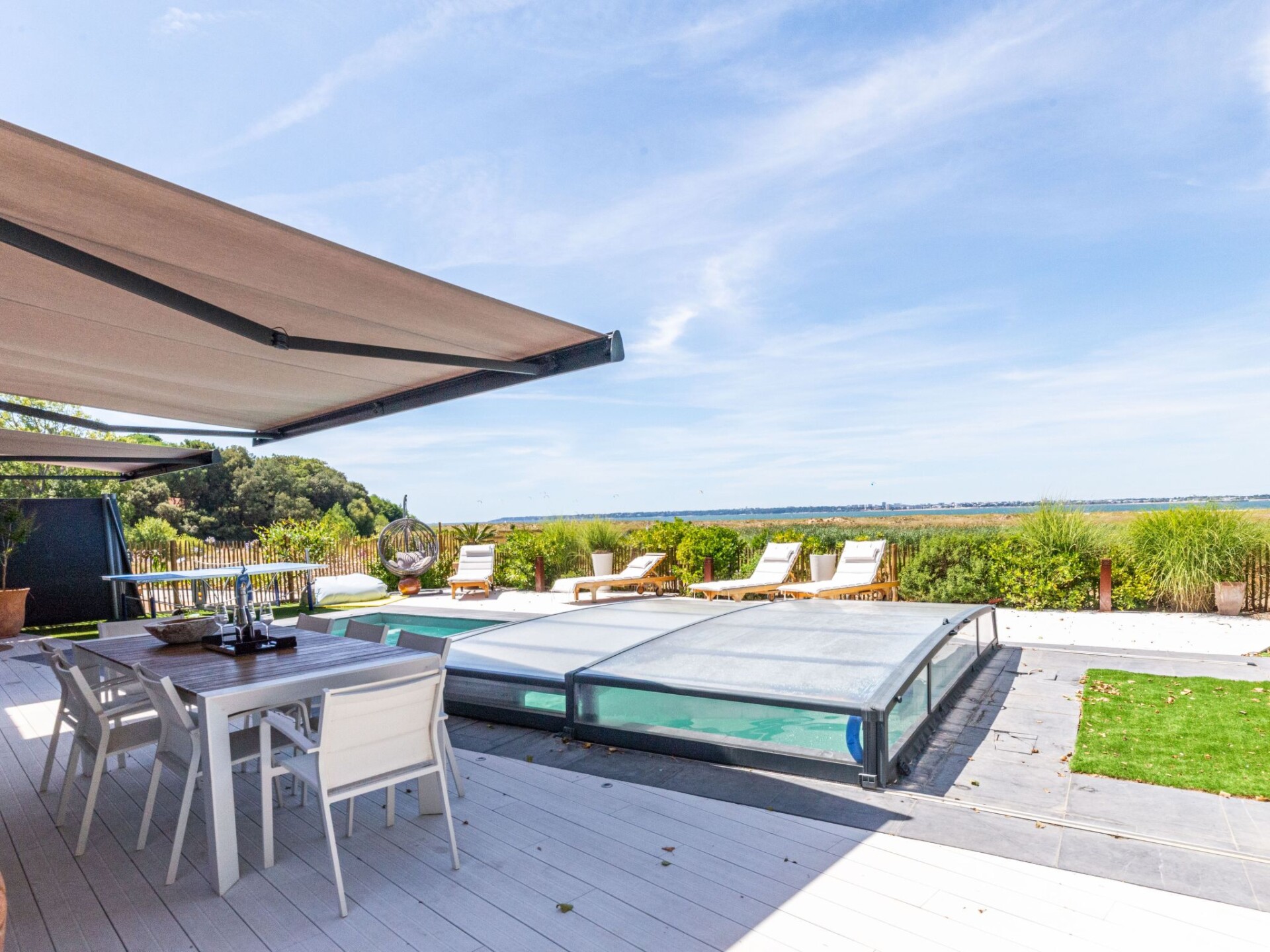 Mooi huis "Indigo-Vue Mer et Piscine chauffée", bouwjaar 2018. 1.6 km van het centrum van Saint-Brévin-les-Pins, 800 m van het centrum van Saint-Brevin-l'Océan, 14 km van het centrum van Saint-Nazaire, in een woonwijk, perfecte locatie: in het centrum en toch rustig gelegen, 100 m van zee, 100 m van het strand, aan een doodlopende weg. Voor alleengebruik: terrein 790 m2 (omheind) met planten, openluchtzwembad verwarmd (8 x 3 m, 150 cm diepte, seizoensgebonden beschikbaarheid: 10.Mei. - 04.Okt.) met oprolbaar afdekscherm. Berging beschikbaar. Parkeerplaats (voor 2 auto's) op het terrein, eigen garage. Supermarkt 800 m, bushalte 1.6 km, zandstrand "Plage de l'Océan" 400 m. Attracties in de buurt: Pornic 17 km, Pornichet-La Baule 24 km, Parc régional naturel de Brière 25 km. De eigenaar accepteert geen groepen.