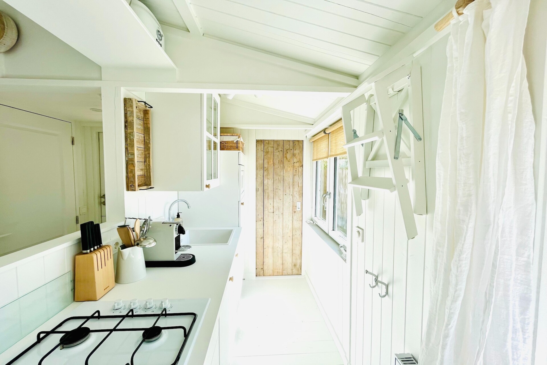 Je betreedt het authentieke strandhuisje via de veranda die toegang biedt tot de lichte woonkamer met comfortabele bank en smart tv met Netflix. Je kunt gezellig tafelen en spelletjes spelen in de open keuken met eethoek en in het gehele verblijf beschik je over snel internet. De comfortabele slaapkamers herbergen bedden met 200 cm lange, zeer luxe M line 6 matrassen. In de omheinde tuin heb je volop rust, privacy en de hele dag zon. In het schuurtje bevindt zich een heren- en damesfiets en bolderkar voor het vervoeren van bagage. Er is parkeergelegenheid op de centrale parkeerplaats bij de ingang van het park.