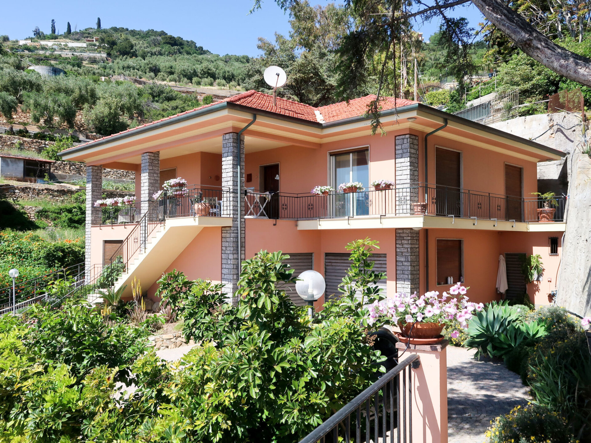 Groot, comfortabele eengezinswoning "Irma". In de wijk Aregai, 2.5 km van het centrum van Santo Stefano al Mare, aan de rand van de plaats, 3.5 km van het centrum van San Lorenzo al Mare, 8 km van het centrum van Imperia, geïsoleerde, zonnige ligging tegen een helling, 500 m van zee, aan een doodlopende weg. Voor alleengebruik: groot, verzorgde tuin op verschillende niveaus, 600 m2 (omheind) met gazon en planten. Buitendouche. Trappenweg naar het huis. Parkeerplaats (voor 3 auto's) op het terrein, eigen garage bij het huis. Winkel 2.5 km, supermarkt 800 m, restaurant 2.5 km, bushalte 100 m, treinstation "Imperia" 7 km, zandstrand "Santo Stefano al Mare" 2.4 km kiezelstrand 500 m, overdekt zwembad 7 km. Jachthaven 1.7 km, golfterrein (18 holes) 18.5 km, fietspad 100 m. De eigenaar accepteert geen jeugdgroepen. De eigenaar woont op hetzelfde terrein. Hoofdstraat 100 m van het huis.