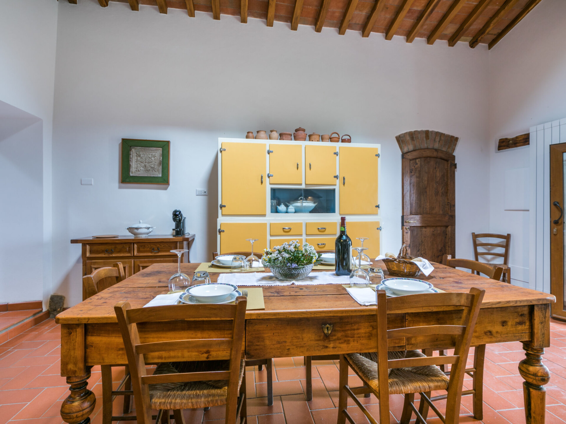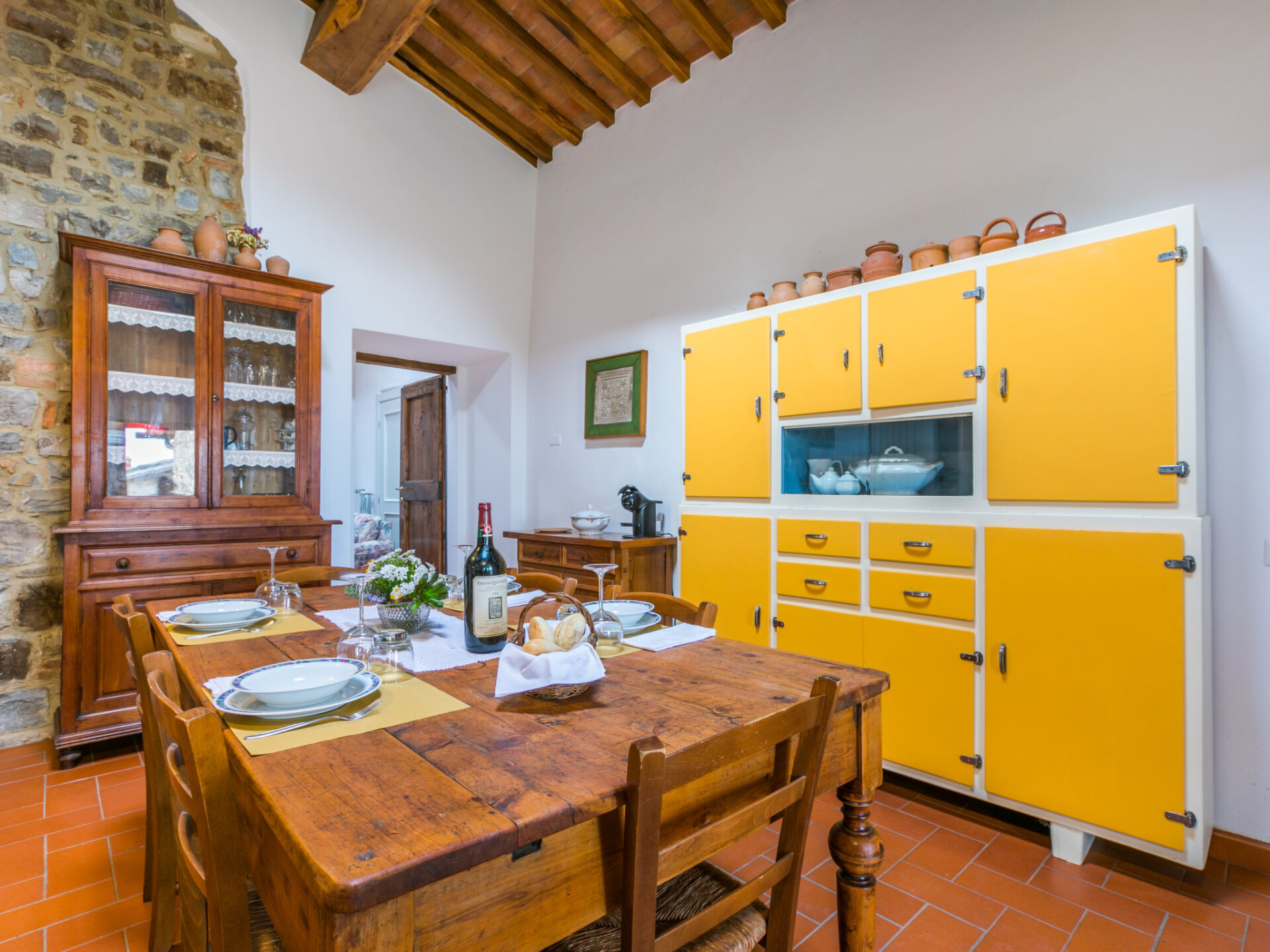 Greve in Chianti: Agriturismo "Le Rondini", gerenoveerd in 2022, omgeven door wijngaarden. Boven Greve in Chianti, 5 km van het centrum van Greve, 5.5 km van het centrum van Panzano in Chianti, geïsoleerde, zonnige ligging op een heuvel, 95 km van zee, te midden van groen. Voor medegebruik: wild terrein, tuin op verschillende niveaus, wilde tuin. In het huis: wasmachine (voor medegebruik, extra). Wissel van linnengoed (extra wissel te betalen). Wissel van handdoeken (extra wissel te betalen). Schoonmaak op verzoek (extra). Ontbijt op verzoek op aanvraag (extra). Parkeerplaats bij het huis op het terrein. Winkel 5 km, levensmiddelenwinkel 5 km, supermarkt 5 km, restaurant 4 km, bushalte "Greve in Chianti" 5 km, zandstrand "Cecina Mare" 95 km, openluchtzwembad 5 km. Golfterrein (18 holes) 20 km, tennis 5 km. Attracties in de buurt: Montefioralle 4 km, Badia Passignano 5 km, Firenze 33 km, San Gimignano 36 km, Siena 45 km. Auto noodzakelijk. Baby uitrusting (incl.). De eigenaar woont in hetzelfde huis. De eigenaar heeft een hond.