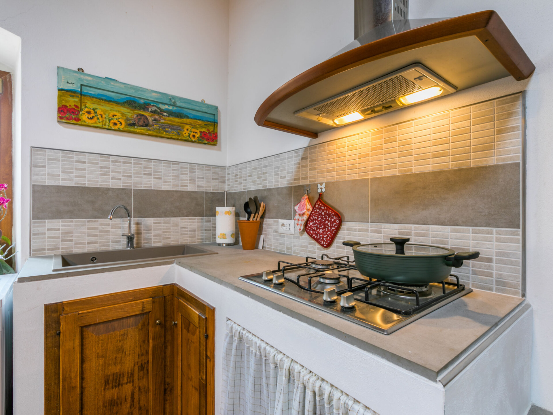 "Agriturismo Le Rondini", appartement 4-kamers 100 m2 op de 1e verdieping. Ruim en licht, volledig gerenoveerd in 2022, mooi en smaakvol ingericht: kleine woonkamer met dakraam. 1 2-pers. kamer met douche/bidet/WC en TV (Flatscreen TV). 1 2-pers. kamer met TV (Flatscreen TV). Groot woonkeuken in de hal 40 m2 (afwasmachine, broodrooster, waterkoker, magnetron, diepvriezer, elektrische koffiemachine, pads voor de koffiemachine (Nespresso) extra) met eettafel. Douche/bidet/WC. Verwarming (extra). Natuurstenen vloeren. Terras, zithoek in de tuin. Terrasmeubelen, barbecue, bergruimte. Zeer mooi panoramazicht op het landschap. Ter beschikking: strijkijzer, klamboe, kinderstoel, kinderbed tot 2 jaar, haardroger. Internet (WiFi, gratis). Parkeerplaats bij het huis. Niet rokers woning. Maximaal 1 huisdier/hond toegestaan. Privé ingang. IT048021B50B9TIF8N