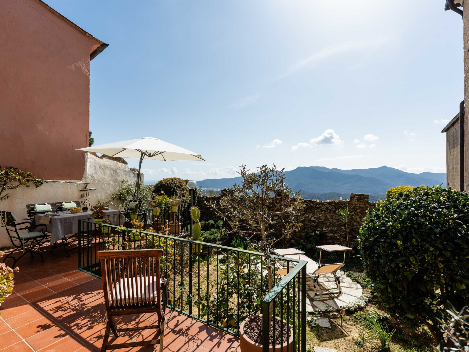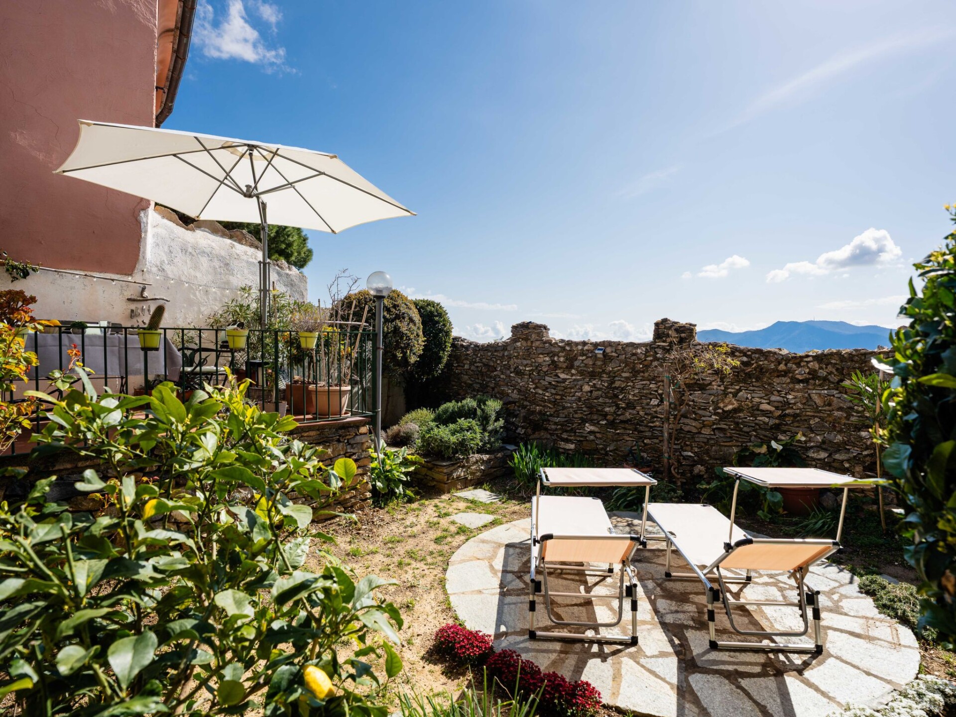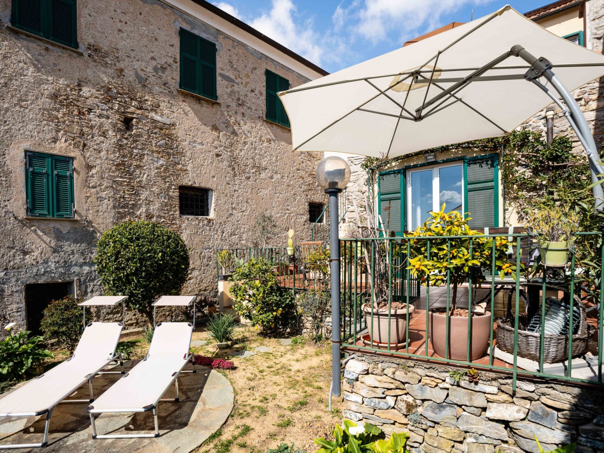 "Al Forte", appartement 2-kamers op de begane grond. Comfortabel en rustiek ingericht: woonkamer, venster naar het binnenplaats met 1 2-pers divanbed en open haard (alleen decoratie), TV en air-conditioning. Uitgang naar de zitplaats in de tuin. 1 2-pers. kamer. Uitgang naar het terras. Keuken (oven, afwasmachine, 2 inductiekookplaten, waterkoker, magnetron, elektrische koffiemachine) met eettafel. Douche/bidet/WC. Gas-verwarming (extra), air-conditioning, heteluchtverwarming. Verwarming alleen beschikbaar van 15.10. tot 15.04. Natuurstenen vloeren. Terras. Terrasmeubelen. Panoramazicht op zee en de bergen. Ter beschikking: kinderbed, haardroger. Internet (WiFi, gratis). Rookmelders, brandblusser. IT009007C2YLLS6MGY