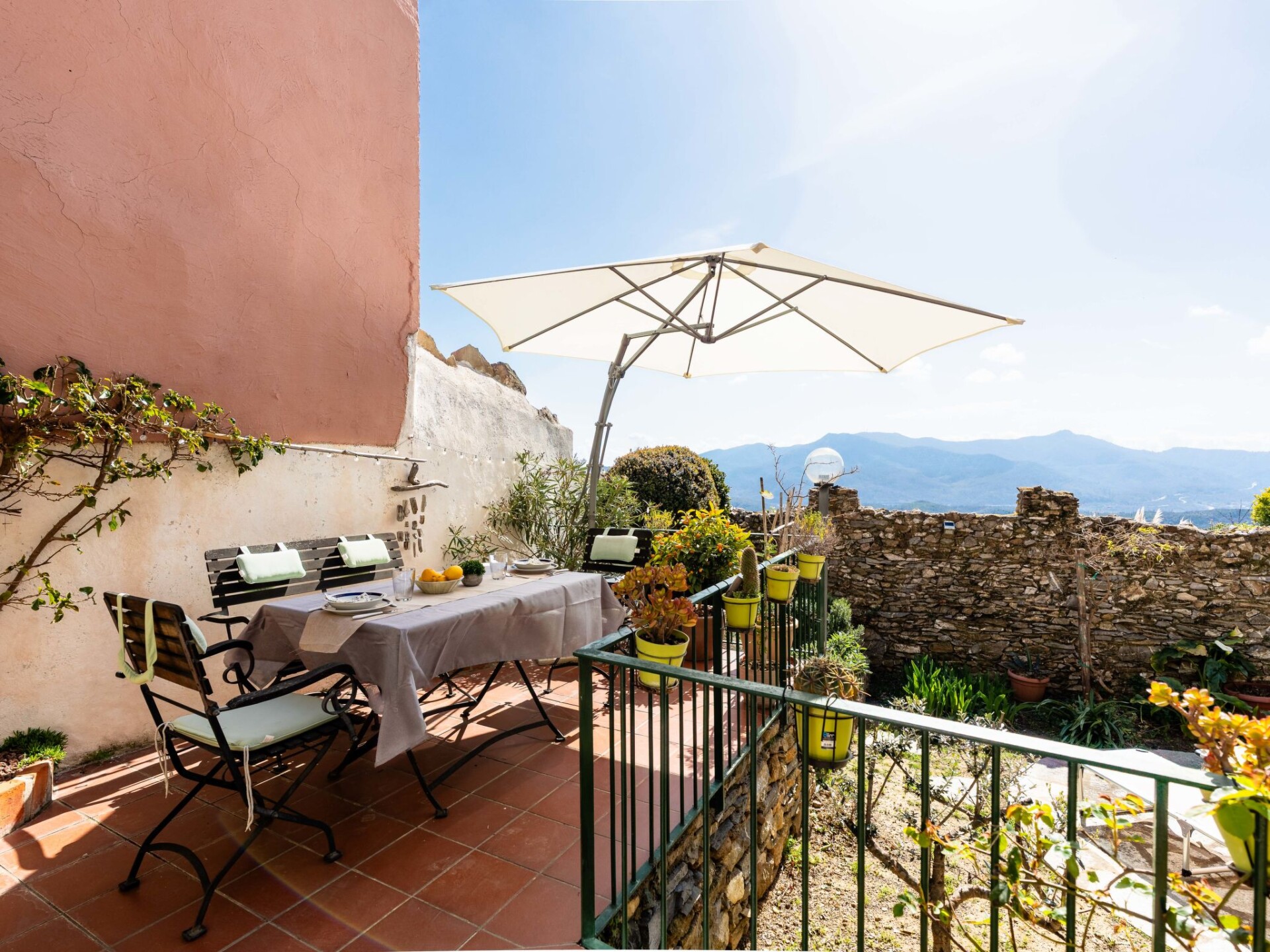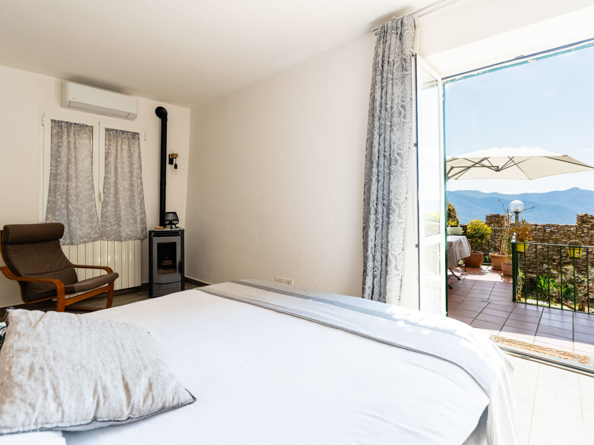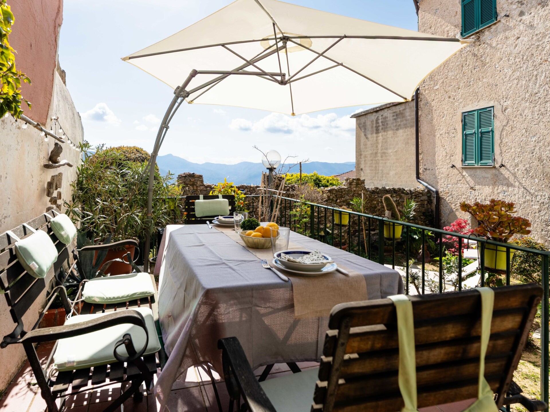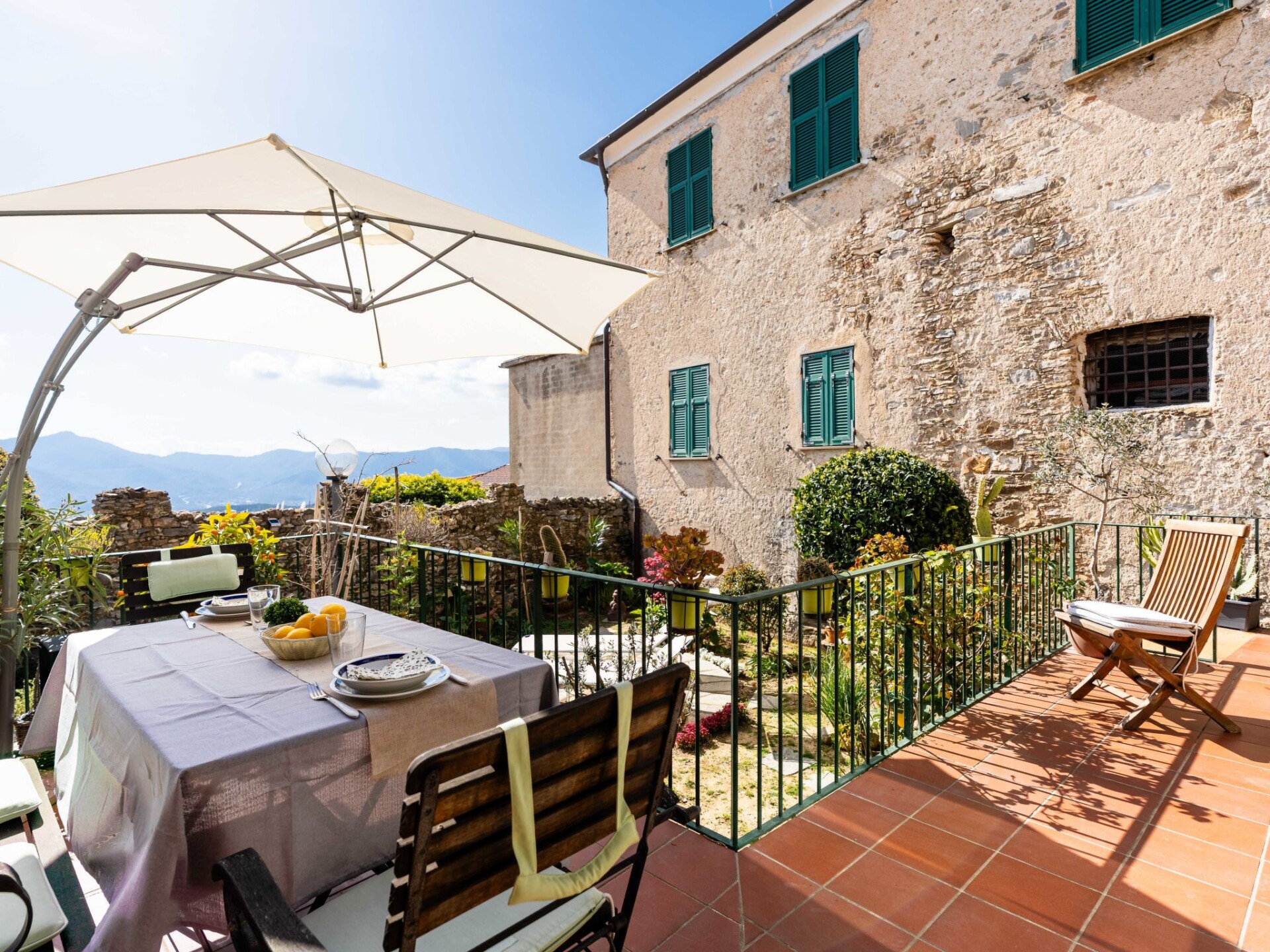 "Al Forte", appartement 2-kamers op de begane grond. Comfortabel en rustiek ingericht: woonkamer, venster naar het binnenplaats met 1 2-pers divanbed en open haard (alleen decoratie), TV en air-conditioning. Uitgang naar de zitplaats in de tuin. 1 2-pers. kamer. Uitgang naar het terras. Keuken (oven, afwasmachine, 2 inductiekookplaten, waterkoker, magnetron, elektrische koffiemachine) met eettafel. Douche/bidet/WC. Gas-verwarming (extra), air-conditioning, heteluchtverwarming. Verwarming alleen beschikbaar van 15.10. tot 15.04. Natuurstenen vloeren. Terras. Terrasmeubelen. Panoramazicht op zee en de bergen. Ter beschikking: kinderbed, haardroger. Internet (WiFi, gratis). Rookmelders, brandblusser. IT009007C2YLLS6MGY