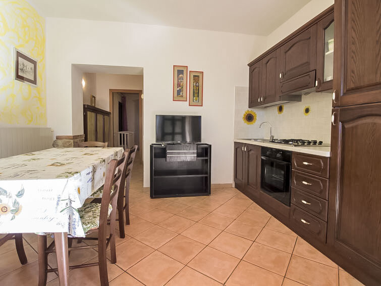 Halfvrijstaand huis 3-kamers 80 m2, op de begane grond. Eenvoudig en comfortabel ingericht: woon-/slaapkamer met 1 divanbed, eettafel, kookhoek en TV (Flatscreen TV). 2 2-pers. kamers. Kookhoek (4-pits kookplaat, oven). 2 douche/bidet/WC's. Verwarming (extra). Zithoek in de tuin gedeeltelijk overdekt. Ter beschikking: Internet (Internet (WiFi), gratis). De woning bestaat uit 2 appartementen die via de ingang aan elkaar verbonden zijn. IT049001C2N4B5QJ79