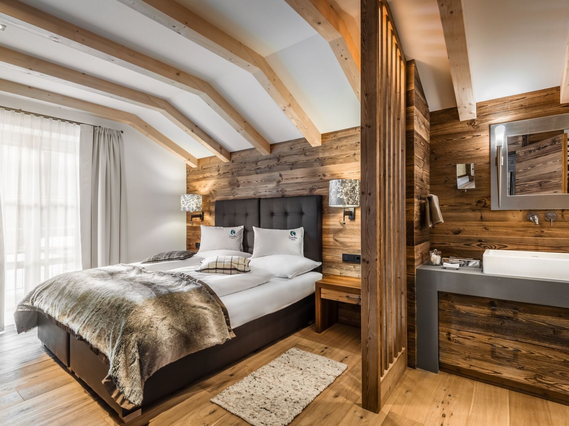 Ey de Net, pure relaxation on 130 m² San Vigilio di Marebbe - the Dolomites within reach San Vigilio di Marebbe - or "Mareo", as the locals call it - is the northernmost municipality in Val Badia. It is made up of the villages of Pfarre, Welschellen, Zwischenwasser and the picturesque main town of St. Vigil at the foot of the Dolomites. Almost 1,300 inhabitants live in this picturesque mountain village at 1,200 metres above sea level. Ladin, an ancient Rhaeto-Romanic language, is spoken here - as everywhere in Val Badia - so tradition and modernity go hand in hand in San Vigilio, with traditional farms and modern infrastructure. And all this in the midst of a magnificent natural landscape, which is linked to the village by countless hiking trails. Almost 11,000 hectares of the Fanes-Sennes-Prags Nature Park lie within the municipal area of Enneberg. The imposing Dolomite giants characterise the landscape. UNESCO rightly declared this magnificent mountain world a World Heritage Site in 2009, making San Vigilio di Marebbe the perfect place for nature lovers to get away from it all at any time of year. In summer for hiking, in winter for skiing on Kronplatz, one of the best ski areas in Europe, which can be reached directly from St. Vigil by lift.In the outdoor area there is a jacuzzi for your exclusive use, which is also available in winter at a pleasant 38 degrees.The 130 square metre chalet has three cosy bedrooms, each with its own bathroom. The large living and dining area invites you to linger. Or you can enjoy the evening on the cosy couch and enjoy the large selection of TV channels. A treat for body and soul: relax in the private spa with Finnish sauna, rain and steam shower and fresh air relaxation area with Jacuzzi. In the snowy winter months, the underfloor heating heats the chalet to a pleasant room temperature. A fully equipped kitchen with electric cooker, fridge, coffee machine, kitchen utensils and crockery is available for cooking. A washing machine and tumble dryer are available for your private laundry.Dolomites - breathtaking mountain world above San Vigilio di Marebbe In 2009, UNESCO declared the Dolomites a World Heritage Site - the world's highest recognition for a natural site. One of the designated Dolomite areas is the Fanes-Sennes-Braies Nature Park, most of which is located in the municipality of Marebbe, and can be reached from San Vigilio in just a few minutes. The main town of Enneberg is also home to the Nature Park House, where visitors can find fascinating information on the formation of the Dolomites, fossils, Alpine pastures and the Conturines cave bears. From San Vigilio di Marebbe, the legendary mountain world of the Dolomites is close enough to touch - and what's more, you are right in the middle of it. The striking peaks tower proudly over the picturesque village. An excursion is always worthwhile, as nature is under special protection here. This is proven not least by the intact flora and fauna that can still be observed here. Healthy nature, pure air ... Everyone should take a deep breath and a beautiful memory home with them.Enjoy your holiday in a luxurious ambience in one of the most beautiful spots on earth: There could be no better place for this than the exclusive Liondes chalets with direct access to the Kronplatz ski and hiking area. Cosy rooms furnished in Alpine style, an open-plan living room with fireplace and a fully equipped kitchen ... comfort wherever you look. Each of our chalets also has a private spa area with sauna, sunbathing lawn and whirlpool. IT021047B4IYMVVEYQ
