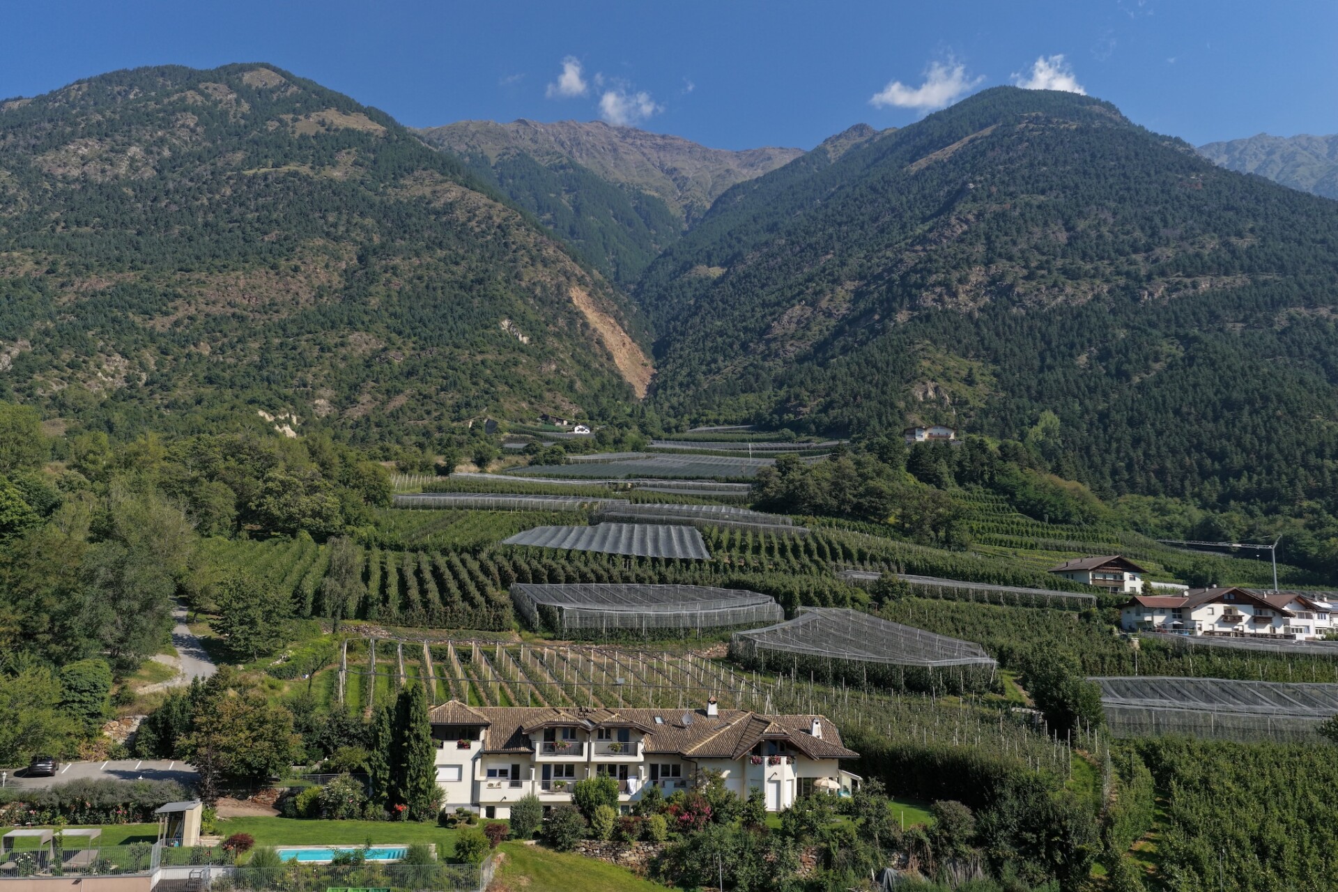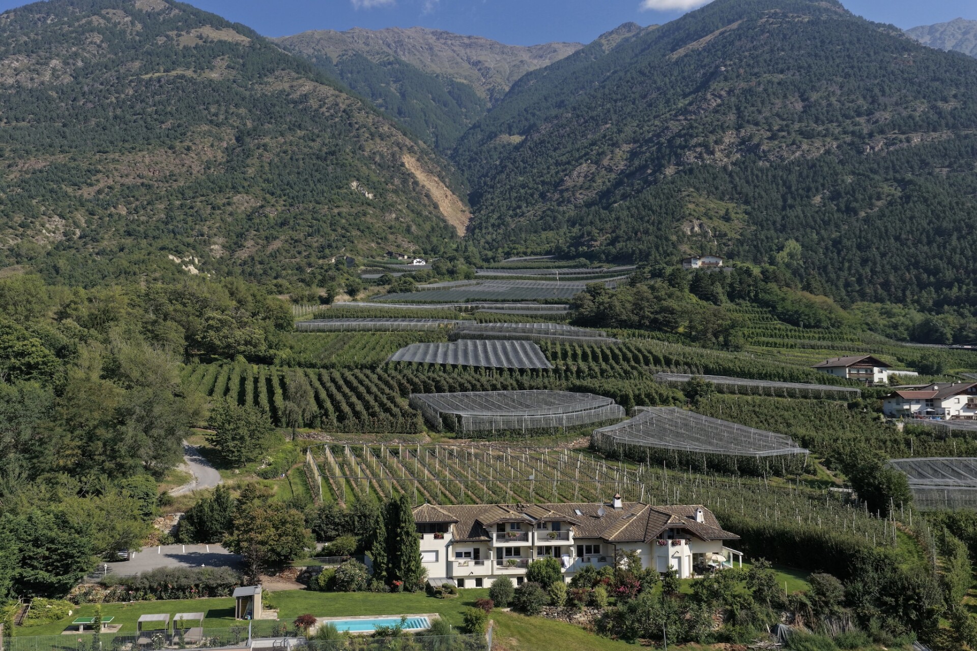 Charmant appartementengebouw met een uitnodigend zwembad omgeven door talrijke boomgaarden en groen. U bevindt zich op een rustige, zonnige locatie direct bij de ingang van Goldrain, een wijk van Latsch in Vinschgau op 650 meter boven de zeespiegel. Omringd door een uniek berglandschap, kunt u ontspannen in het zwembad en tegelijkertijd genieten van het adembenemende uitzicht over de vallei. De avontuurlijke douches en de relaxruimte zorgen voor ontspanning. Terwijl de kleine gasten ravotten op de speelplaats, ontspan jij in de sauna (tegen betaling) of op een van de ligstoelen met een spannend boek. De Residence Lahnhof heeft een geregistreerd helikopterplatform, waar het op verzoek mogelijk is om uw eigen helikopter te laten landen.