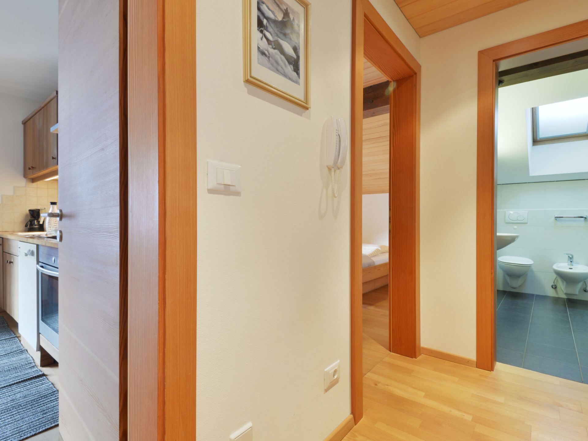 Appartement 2-kamers 50 m2 op de 2e verdieping. Gezellig en met veel hout ingericht: woon-/slaapkamer met 1 2-pers divanbed, eettafel en TV. Uitgang naar het balkon. 1 2-pers. kamer met TV. Open keuken (oven, afwasmachine, 4 keramische glas kookplaten, waterkoker, elektrische koffiemachine). Douche/bidet/WC. Verwarming. Parketvloeren. Balkon. Balkonmeubilair, ligstoelen (2). Ter beschikking: kinderstoel, kinderbed, haardroger. Internet (Internet (WiFi), gratis). Parkeerplaats (overdekt, 1 Auto). Niet rokers woning. Brandblusser. IT021061A19JZKBI67