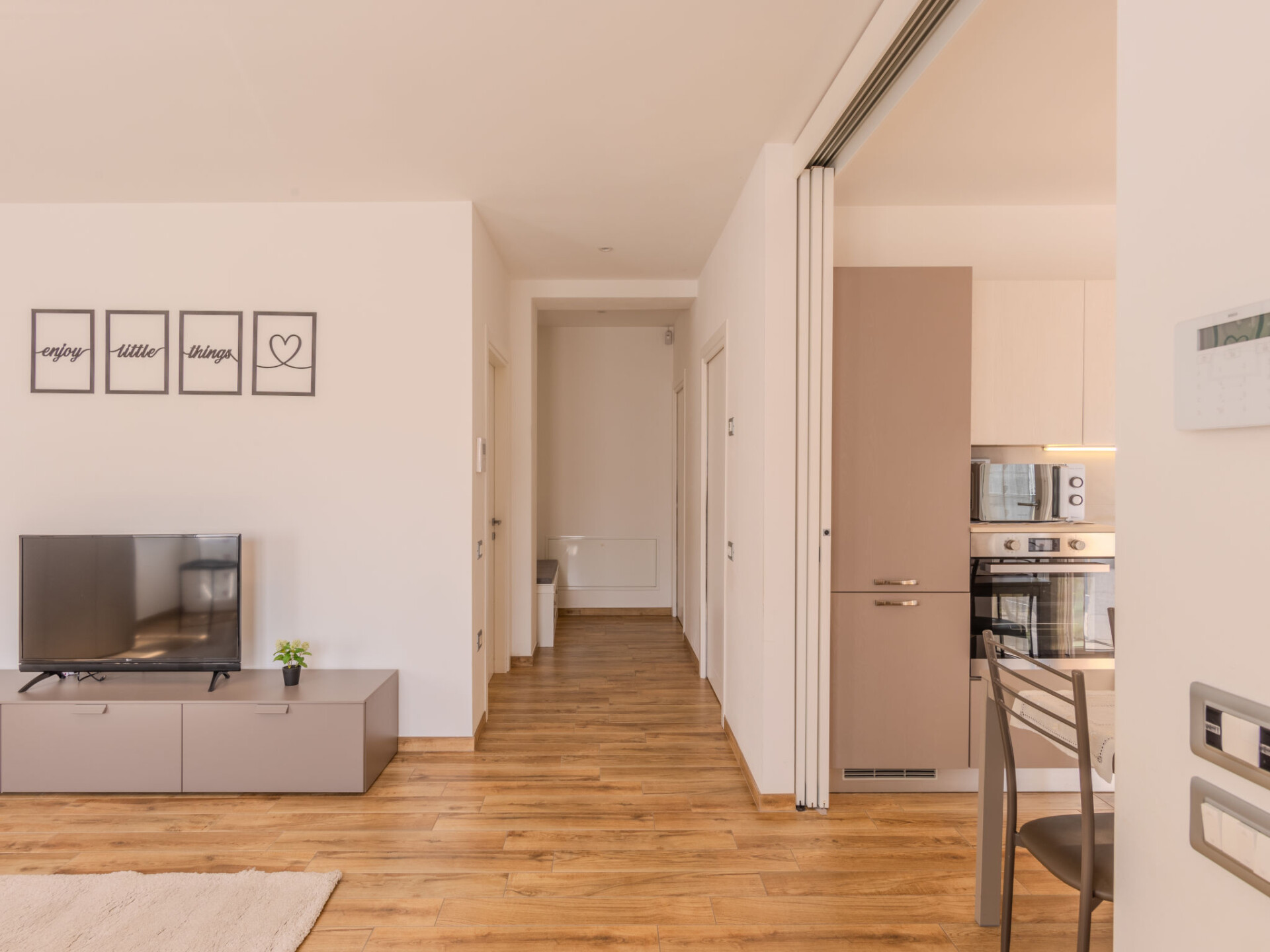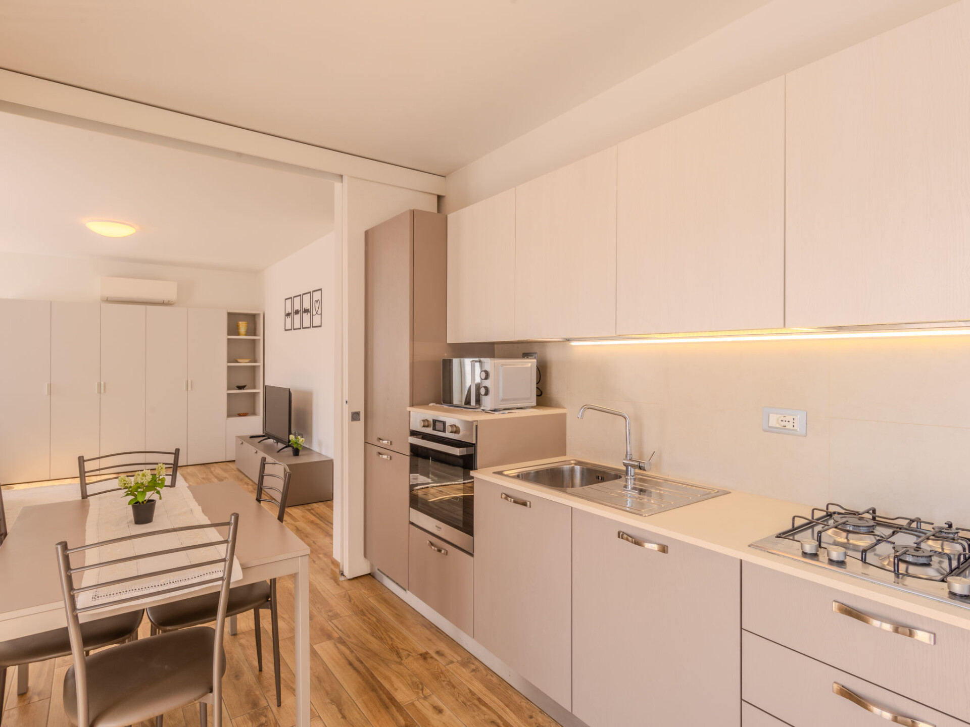 "Calicantus", appartement 2-kamers 71 m2, op verhoogde begane grond. Ruim en licht, gerenoveerd in 2025, modern en gezellig ingericht: woonkamer met 1 2-pers divanbed en TV. 1 2-pers. kamer. Keuken (oven, afwasmachine, 4 kookpitten (vlammen), broodrooster, waterkoker, magnetron, diepvriezer, elektrische koffiemachine) met eettafel. Uitgang naar het terras. Bad/bidet/WC. Air-conditioning, vloerverwarming. Verwarming alleen beschikbaar van 15.11. tot 30.04. Groot terras. Ligstoelen, zitgelegenheid. Mooi uitzicht op het landschap. Ter beschikking: wasmachine, droger, strijkijzer, kinderbed tot 2 jaar, haardroger. Internet (WiFi, gratis). Parkeerplaats (omheind, 1 Auto). Niet rokers woning. Privé ingang, rookmelders, brandblusser, geen lift. IT022079C24KPLASQY