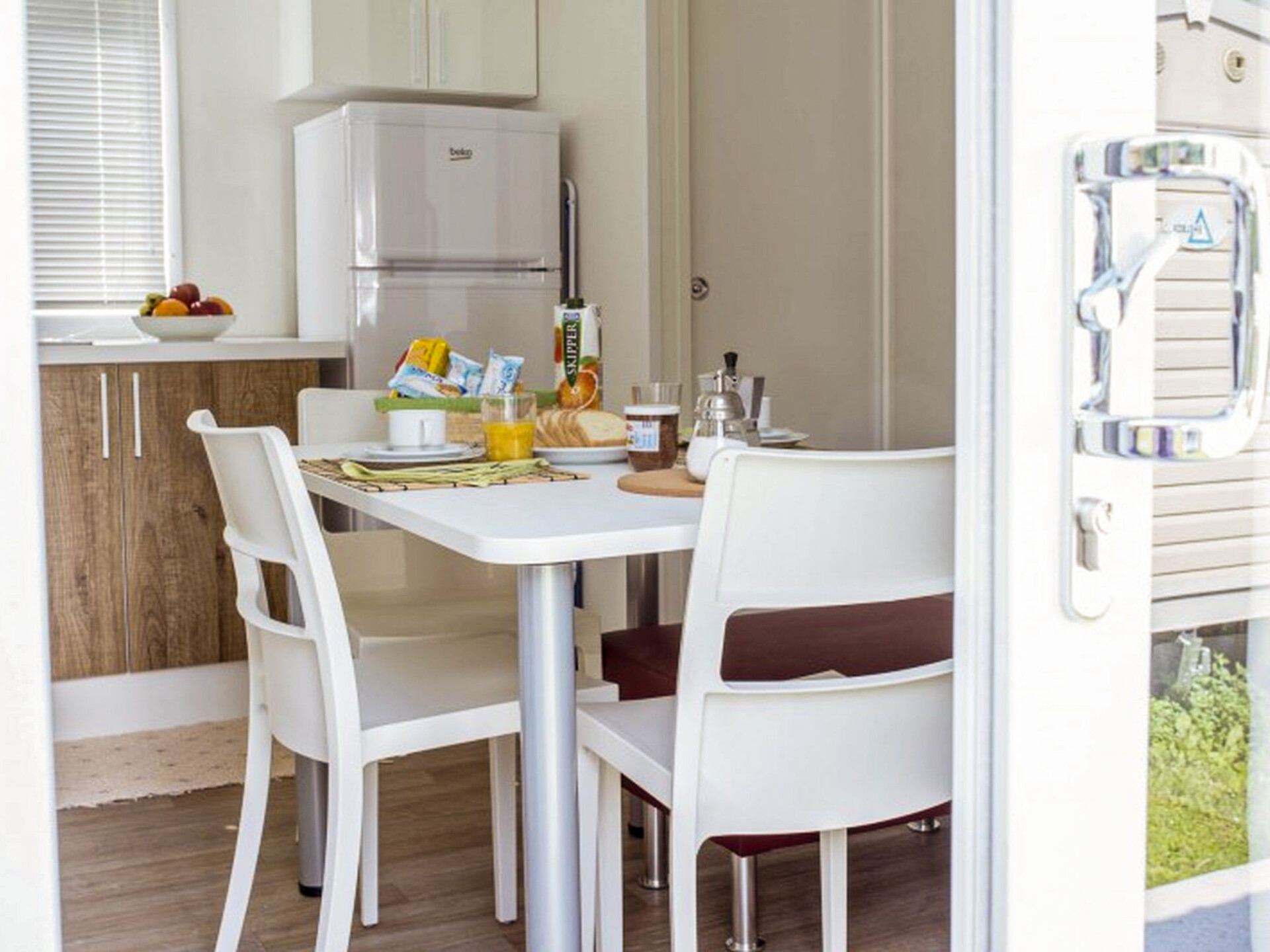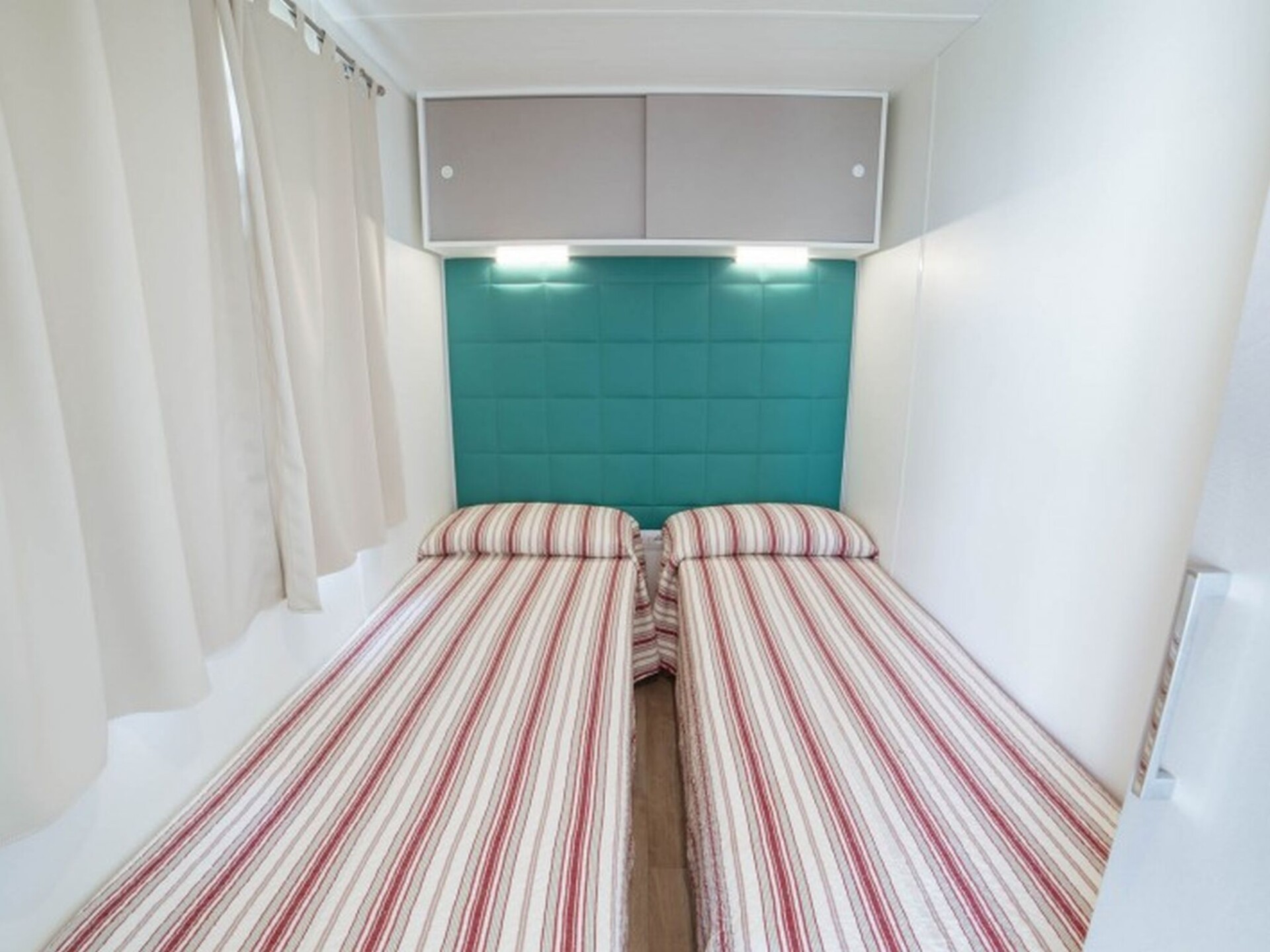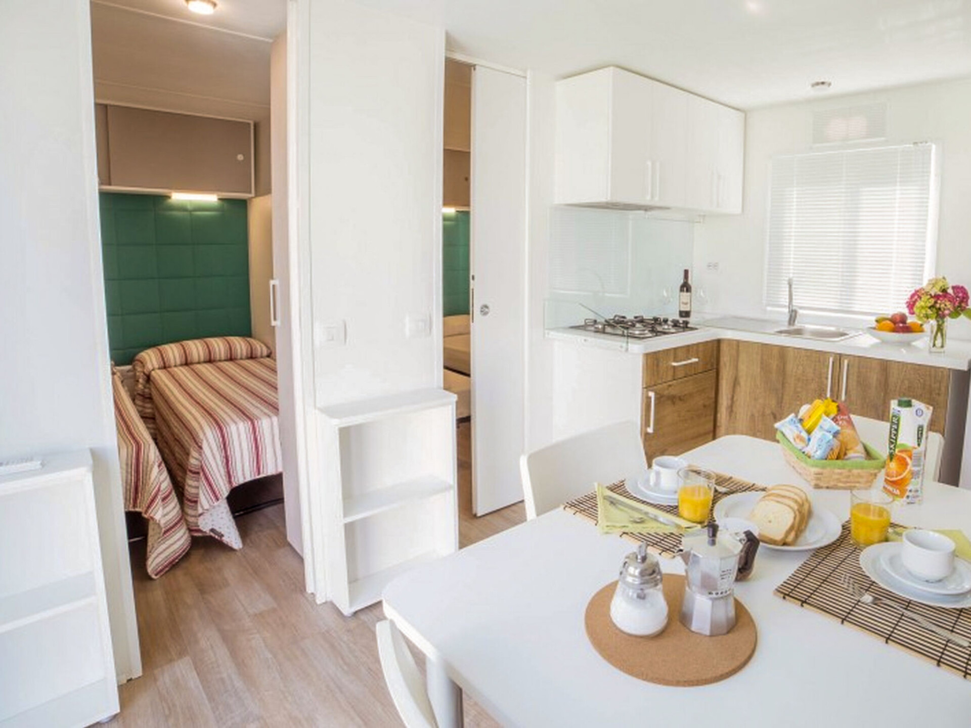 3-kamers mobilhome 24 m2. Comfortabel ingericht: woon-/eetkamer met eethoek. 1 kamer met 1 2-pers bed (140 cm). 1 kamer met 2 bedden (70 cm). Open keuken (4 kookpitten (vlammen), diepvriezer). Douche/WC. Heteluchtverwarming. Verwarming niet in alle ruimtes. Zithoek in de tuin. Terrasmeubelen. Parkeerplaats (1 Auto). Niet rokers woning. Privé ingang. IT023059B1JGSJFXVS