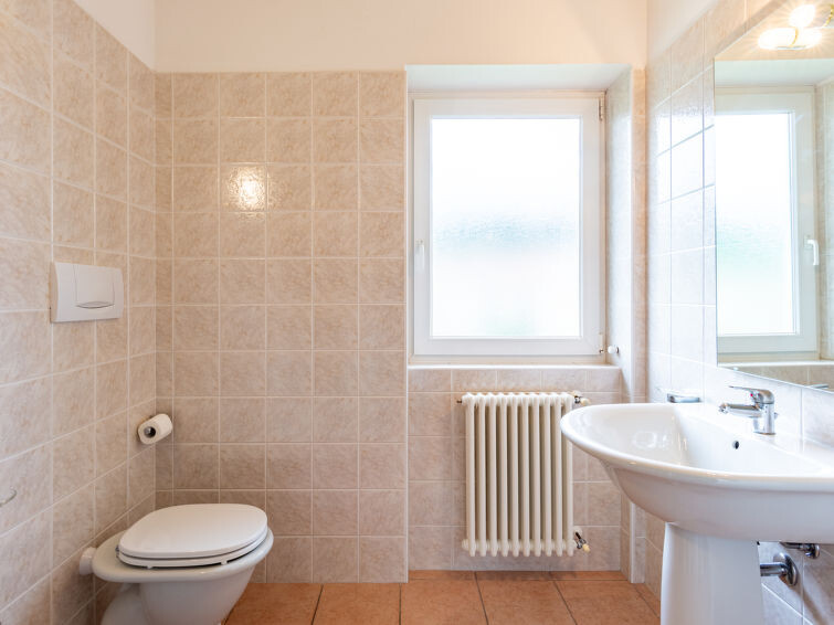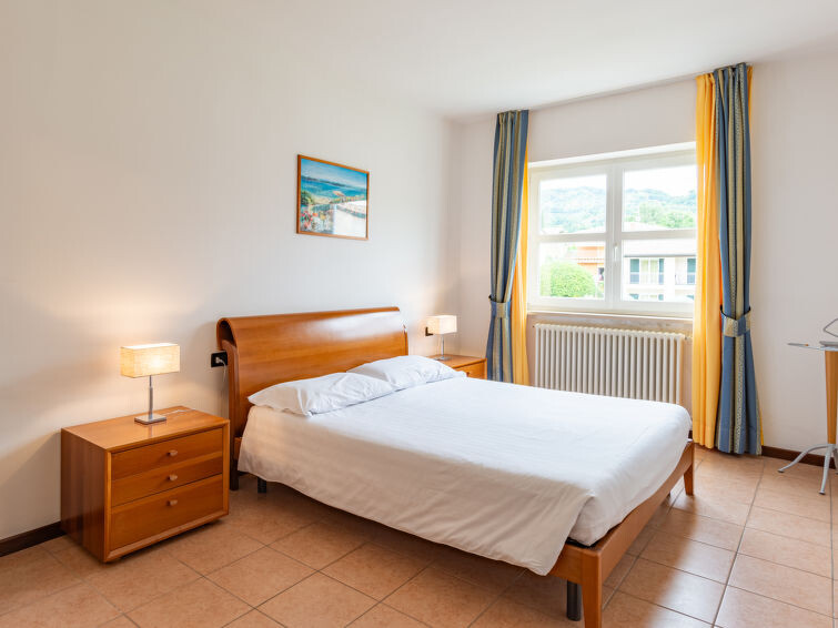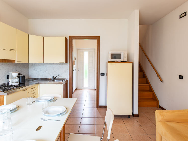 Appartement 3-kamers 65 m2 op 2 verdiepingen. Comfortabel ingericht: woon-/slaapkamer met 1 2-pers divanbed, eettafel en Sat-TV. Uitgang naar het terras, naar het zwembad. Open keuken (Gasfornuis, 4 kookpitten (vlammen), broodrooster, magnetron, elektrische koffiemachine). Aparte WC. Bovenverdieping: 1 2-pers. kamer met air-conditioning. Uitgang naar het balkon. 1 kamer met 2 bedden en air-conditioning. Douche/bidet/WC. Gas-verwarming, air-conditioning (extra). Balkon, terras overdekt. Terrasmeubelen, bergruimte. Uitzicht op het zwembad en de tuin. Ter beschikking: kluis. Internet (WiFi, gratis). Parkeerplaats (1 Auto). Niet rokers woning. Privé ingang. IT023036B4NWSUJ3XS