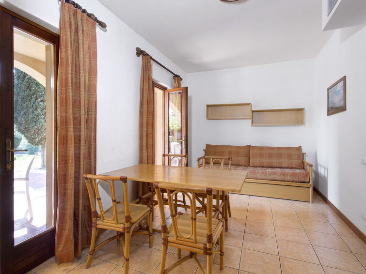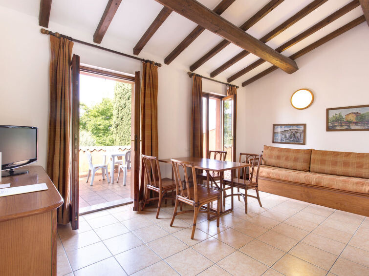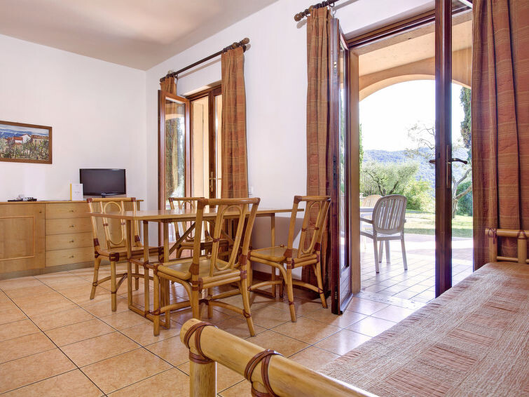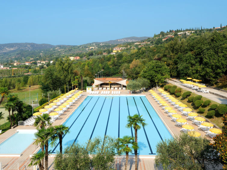 Zeer groot vakantiecomplex "Poiano Resort Appartamenti", van 2 verdiepingen. 160 appartementen in de woning. Boven Garda, aan de rand van de plaats, 3 km van het centrum van Garda, verhoogde ligging op een heuvel, 3 km van het meer. Voor medegebruik: terrein 60 ha, tuin op verschillende niveaus met gazon en bomen, openluchtzwembad (50 x 25 m, 140 cm diepte, seizoensgebonden beschikbaarheid: 15.Mrt. - 15.Nov.). WC bij het zwembad, kinderzwembad, buitendouche, tennisbaan (4 x gravel), verlichte tennisbaan (extra), tafeltennis, volleybalveld, beachvolleybal, kinderspeelplaats. In het complex: receptie, restaurant, bar, ontbijtruimte, Internet (WiFi), fitnessruimte, spa centrum voor gezamenlijk gebruik (extra), winkel, centrale verwarming, air-conditioning, wasmachine (extra), droger (extra), fietsverhuur. Wissel van handdoeken 1 maal per week (extra wissel te betalen). Schoonmaak op verzoek (extra). Ontbijt en half pension op verzoek op aanvraag (extra). Parkeerplaats op het terrein. Oplaadstation. Bushalte "Free Shuttle Bus Poiano - Garda" 100 m, kiezelstrand 3 km. Golfterrein (2 holes) 50 m. Attracties in de buurt: Golf Club Ca' degli Ulivi (18 holes) 4 km, Peschiera del Garda 17 km, Verona 38 km. Animatie in het hoogseizoen. Geschikt voor families, geschikt voor senioren baby uitrusting op aanvraag (extra), in het hoogseizoen. Wellness: toegang alleen voor volwassenen.