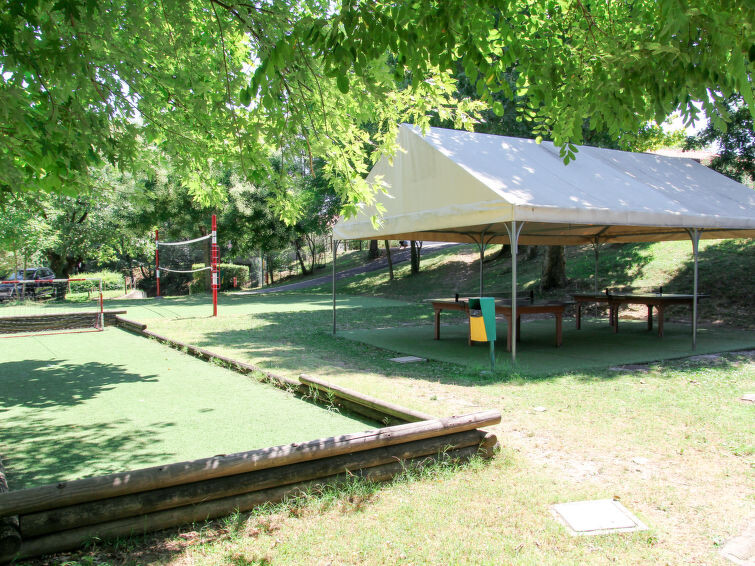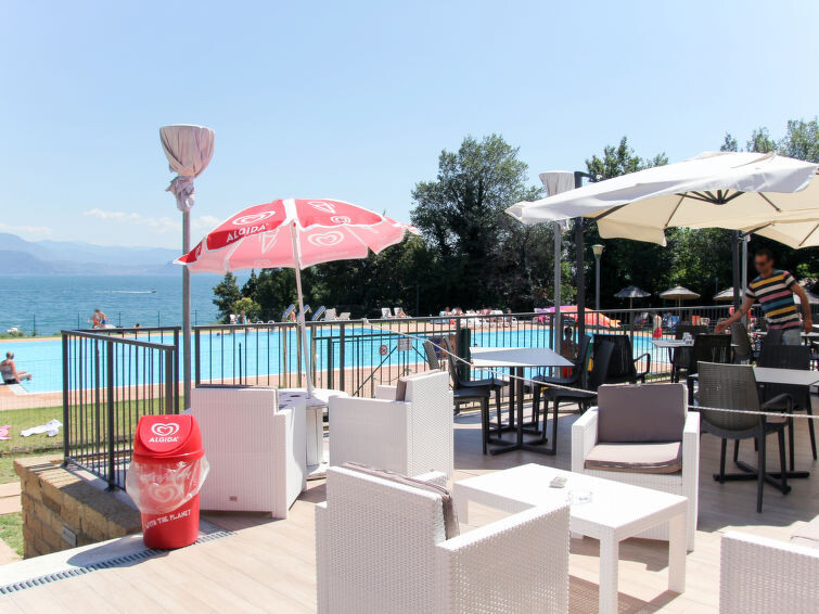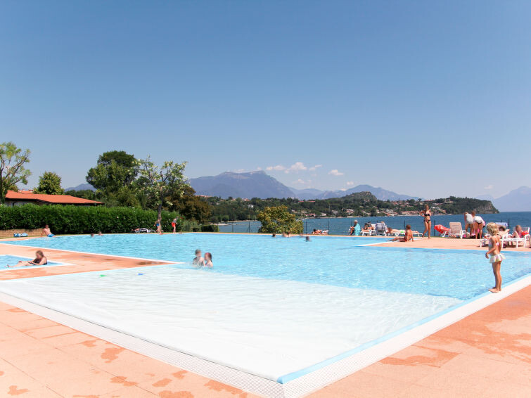 Kindvriendelijk vakantiedorp "San Giorgio Vacanze". 69 appartementen in de woning. In het gehucht San Sivino, buiten de plaats, 5 km van het centrum van Moniga del Garda, tegen een helling, 200 m van het meer, 200 m van het strand, directe toegang tot het strand, aan een doodlopende weg, te midden van groen. Voor medegebruik: terrein 32.000 m2, gazon en bomen, openluchtzwembad (31 x 15 m, seizoensgebonden beschikbaarheid: 18.Apr. - 22.Sep. openingstijden zwembad: 10:00-13:00 en 15:00-19:00). WC bij het zwembad, kinderzwembad, buitendouche, tennisbaan (extra), tafeltennis, jeu de boules, volleybalveld, kinderspeelplaats. In het complex: receptie, restaurant, bar, Internet (WiFi), winkel, wasmachine (extra), droger (voor medegebruik, extra). Broodjesservice. Parkeerplaats op het terrein. Winkel 2 km, bushalte 1.4 km. Golfterrein (27 holes) 6 km. Attracties in de buurt: Manerba del Garda 5 km, Desenzano 12 km, Salò 14 km. Baby uitrusting op aanvraag (extra). De eigenaar accepteert geen jeugdgroepen.
