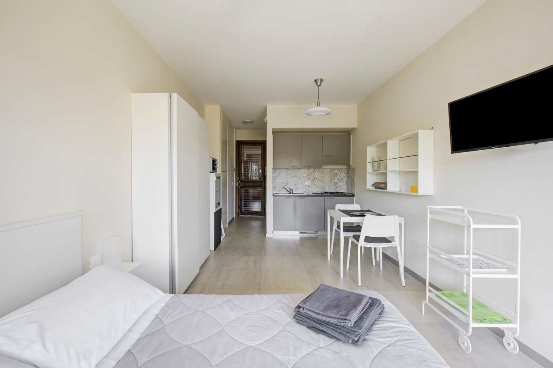 Ideaal voor een romantisch uitje of een solo-uitje: dit huisdiervriendelijke appartement voor 2 gasten biedt comfort en gemak op slechts 100 meter van het Gardameer in Sirmione. Het appartement bevindt zich op de eerste verdieping en beschikt over een gecombineerde woon-/slaapkamer met een tweepersoonsbed en satelliet-tv, een goed uitgeruste open keuken met een koffiezetapparaat en magnetron, en een moderne badkamer met een douche, bidet en airconditioning.